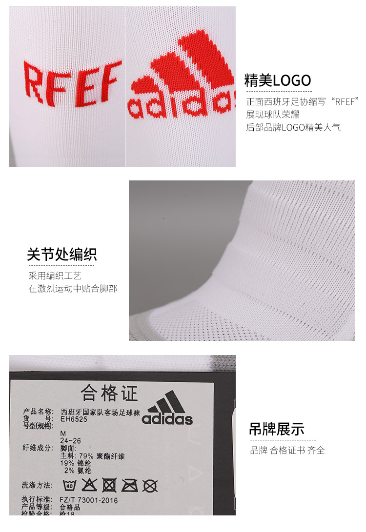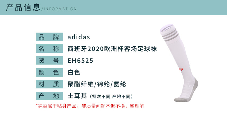 ADIDAS阿迪达斯欧洲杯西班牙国家队客场长款足球袜 EH6525