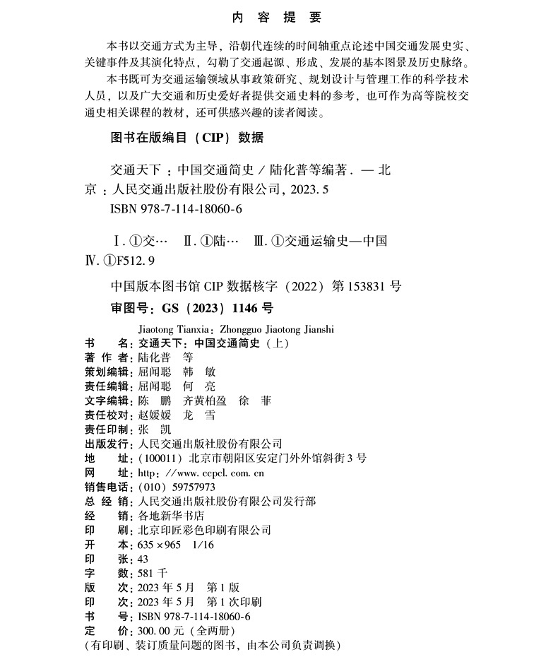 交通天下:中国交通简史 陆化普 人民交通出版社旗舰店