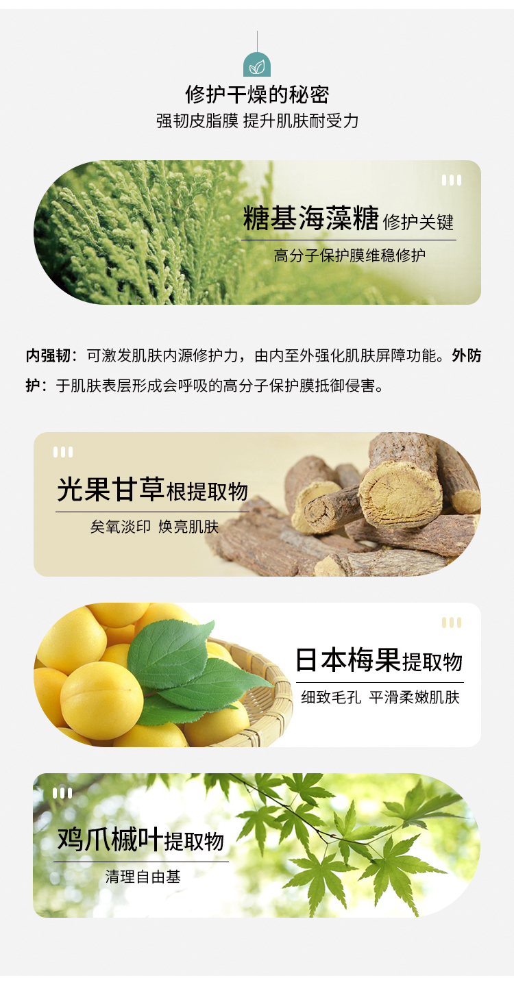 2.天然大地植萃,成分高端亲肤,吸收性强,无任何特殊添加,安全指数5颗心