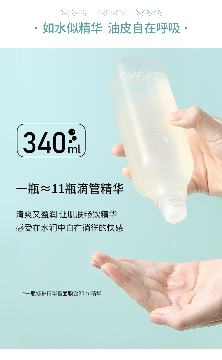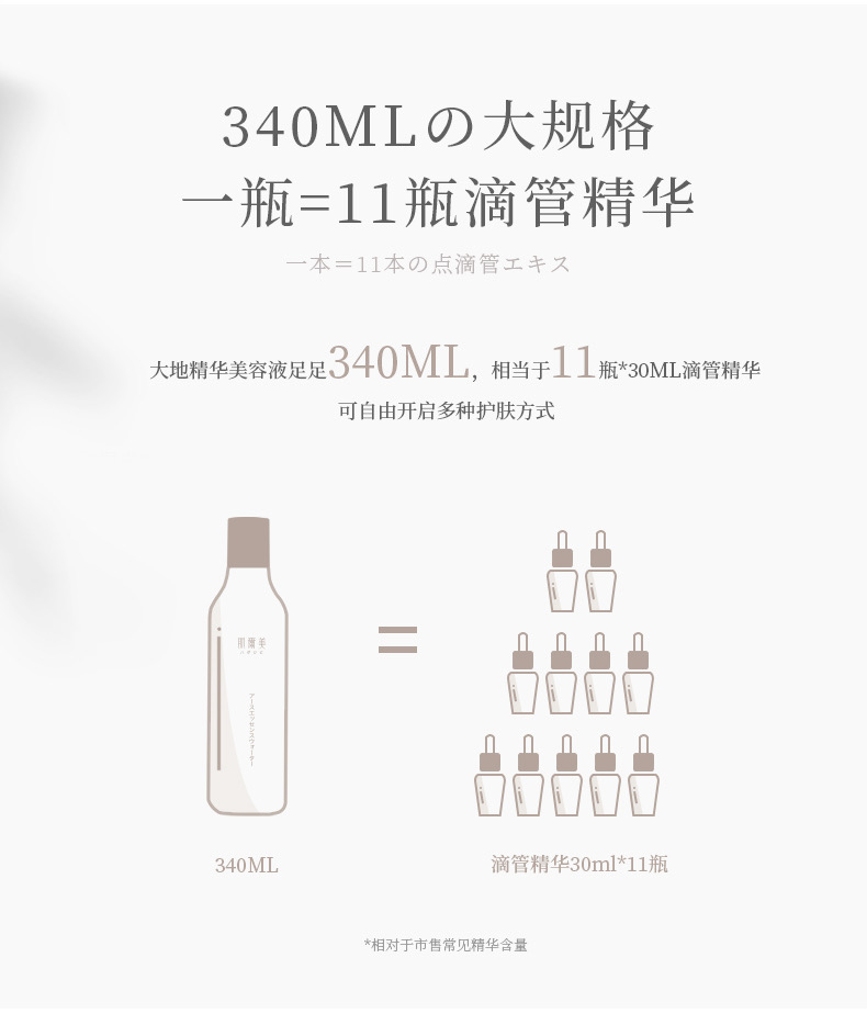 3.容量足足340ml,大碗平价,一瓶相当于11瓶普通滴管精华液