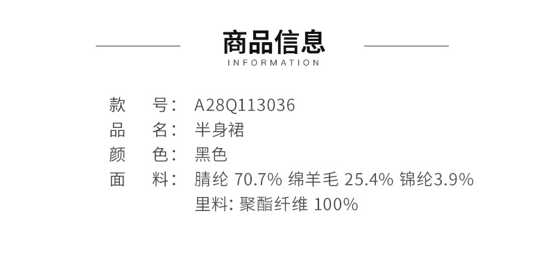 【商场同款】阿菁娜肌理感微A廓形时尚半身裙A28Q113036