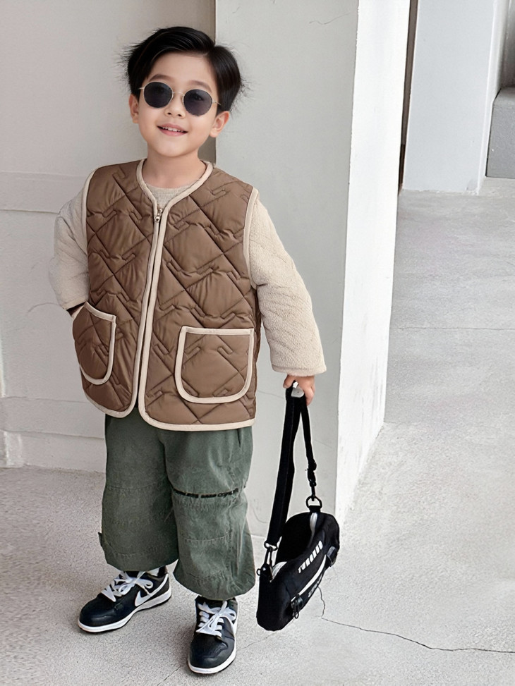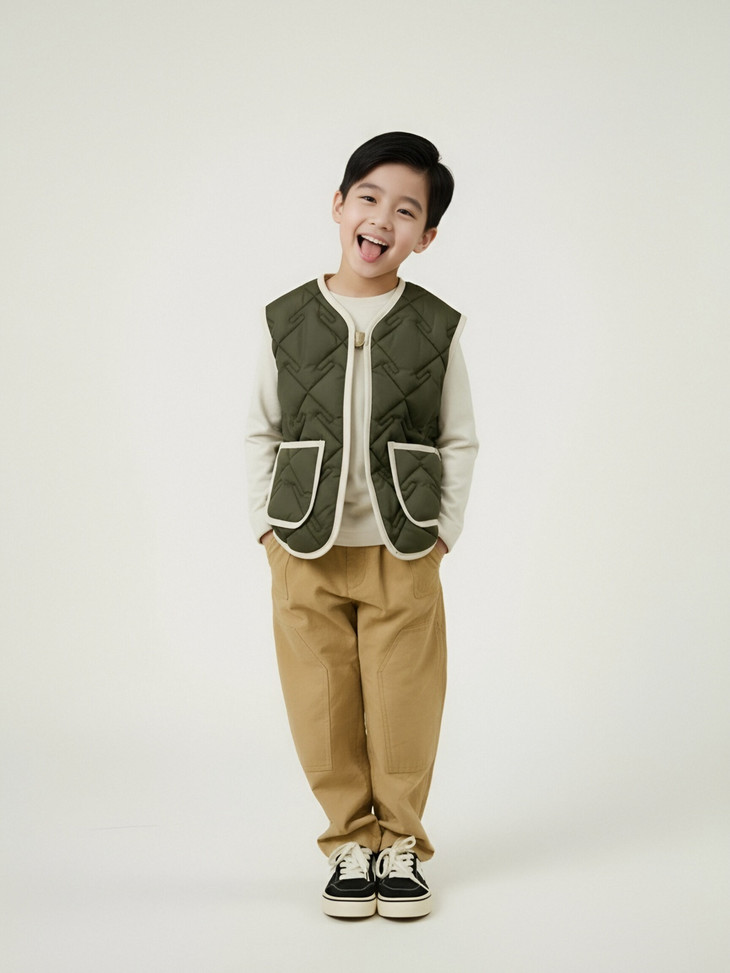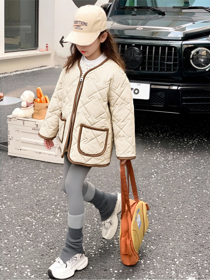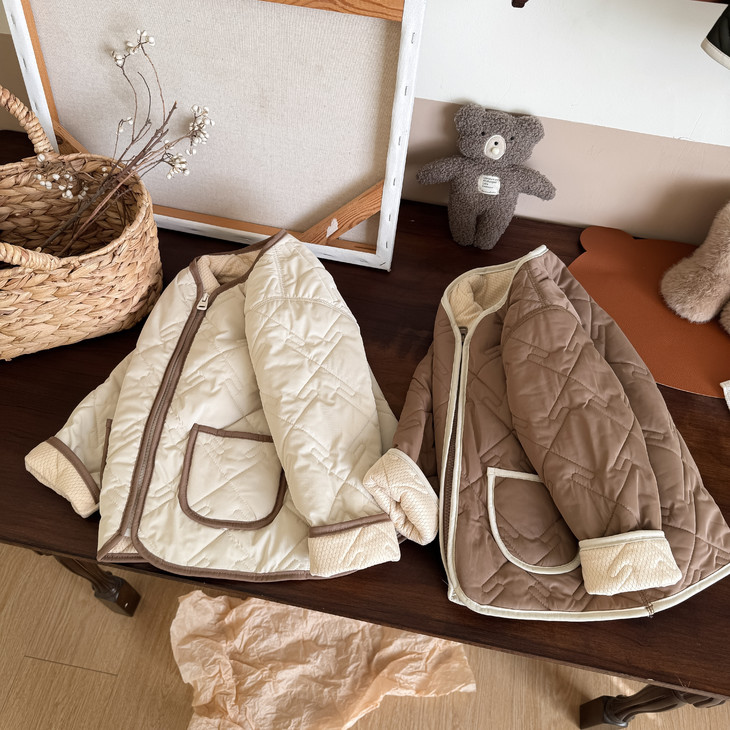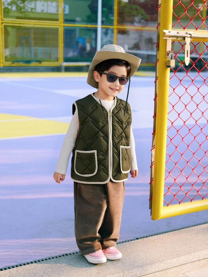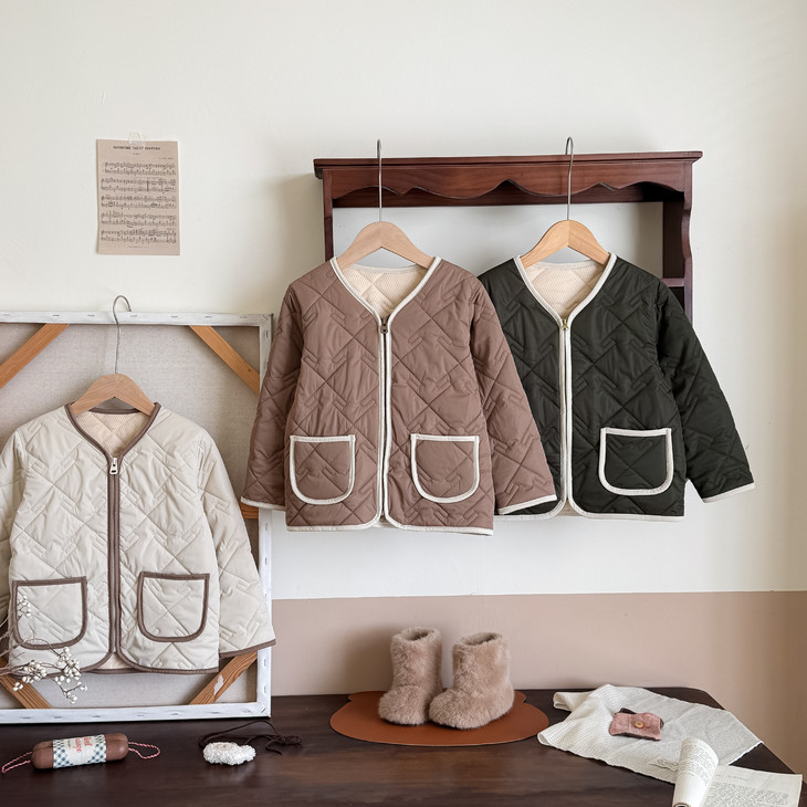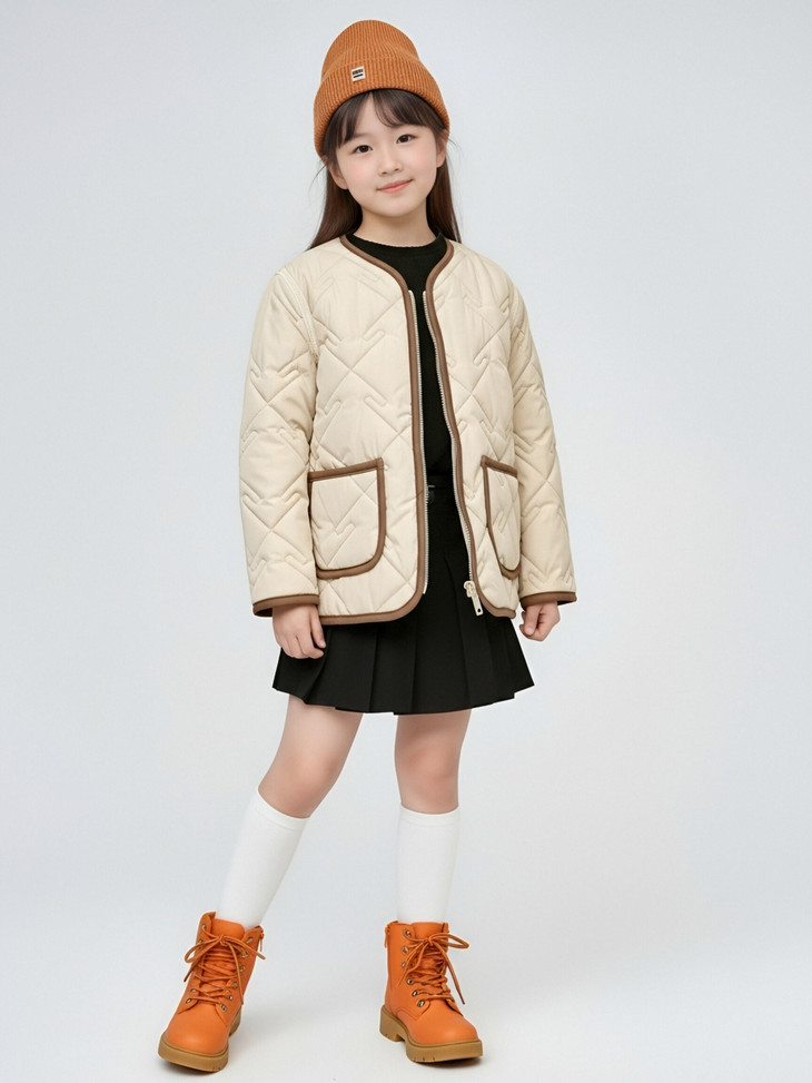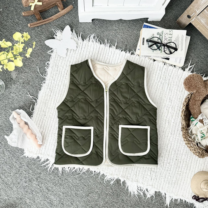 款式①撞色边外套 款式②撞色边马甲 衣领和口袋用反差色包边 细致到连拉链和拉链头都是反差色撞色 独特又时尚 小桃心领口,修饰脸型 灵活叠穿,保暖不臃肿