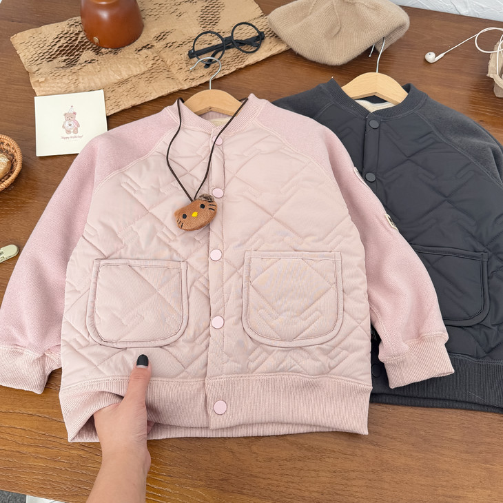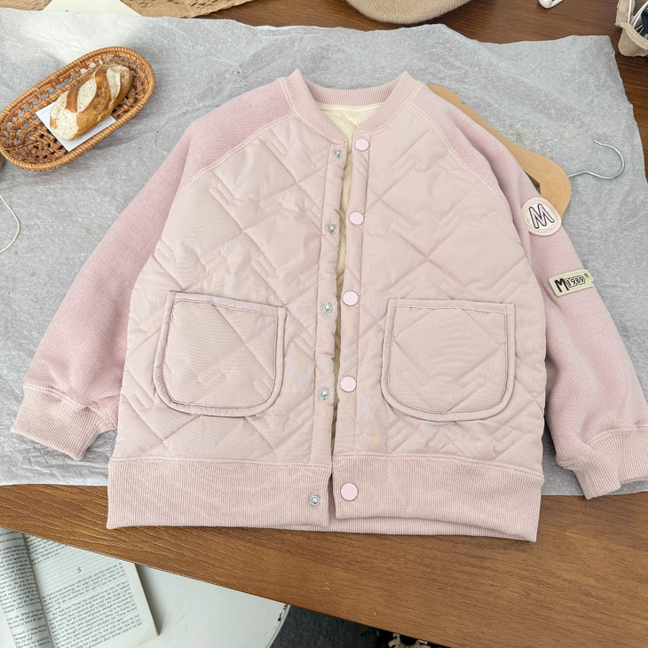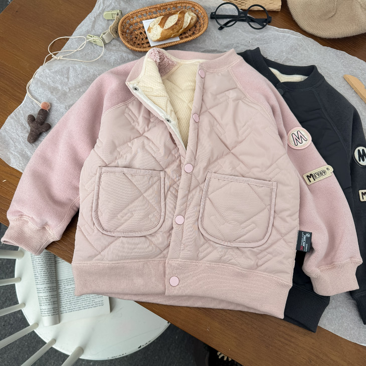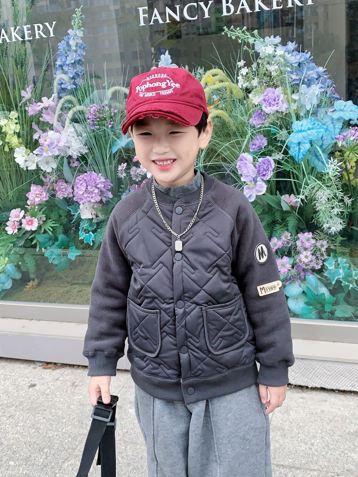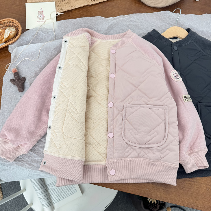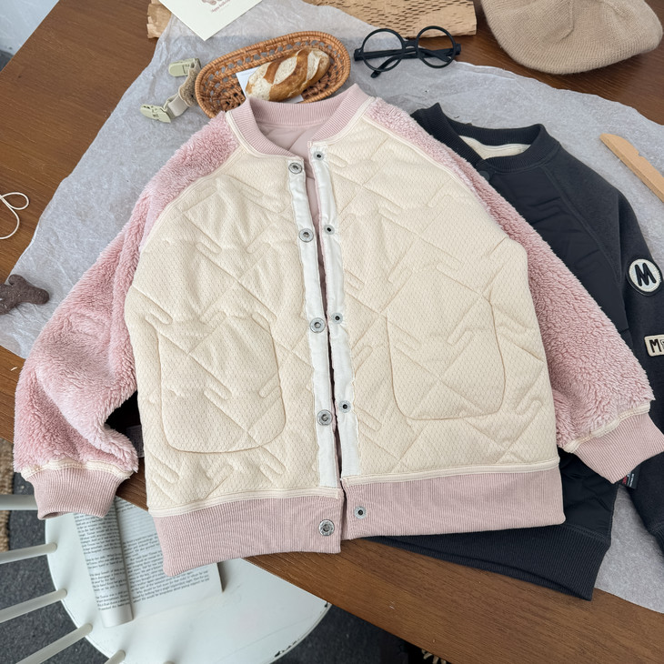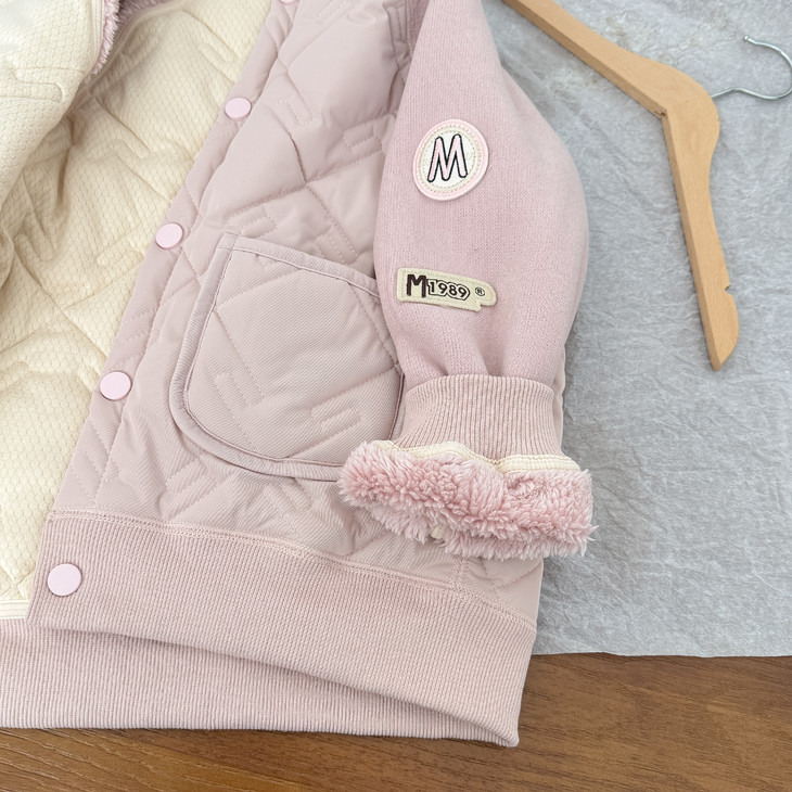 外套袖子是针织面料,超柔软贴合 袖子里加了绒绒内里,舒适包裹 左边袖子还有两个小袖章 螺纹袖口和下摆,防风防寒 同色系按扣设计,方便穿脱