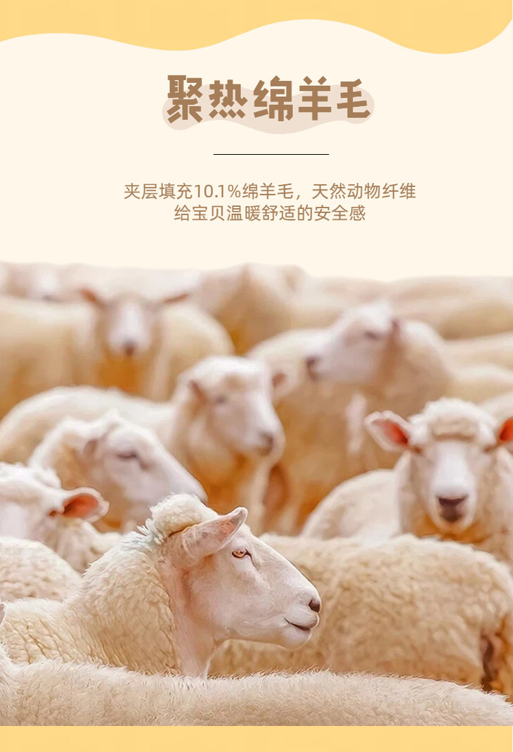 添加绵羊毛填充 众所周知,绵羊毛在保暖界占有重要一席之位 高达10.1%的填充量,是极其下重本的! 也让保暖性能锦上添花