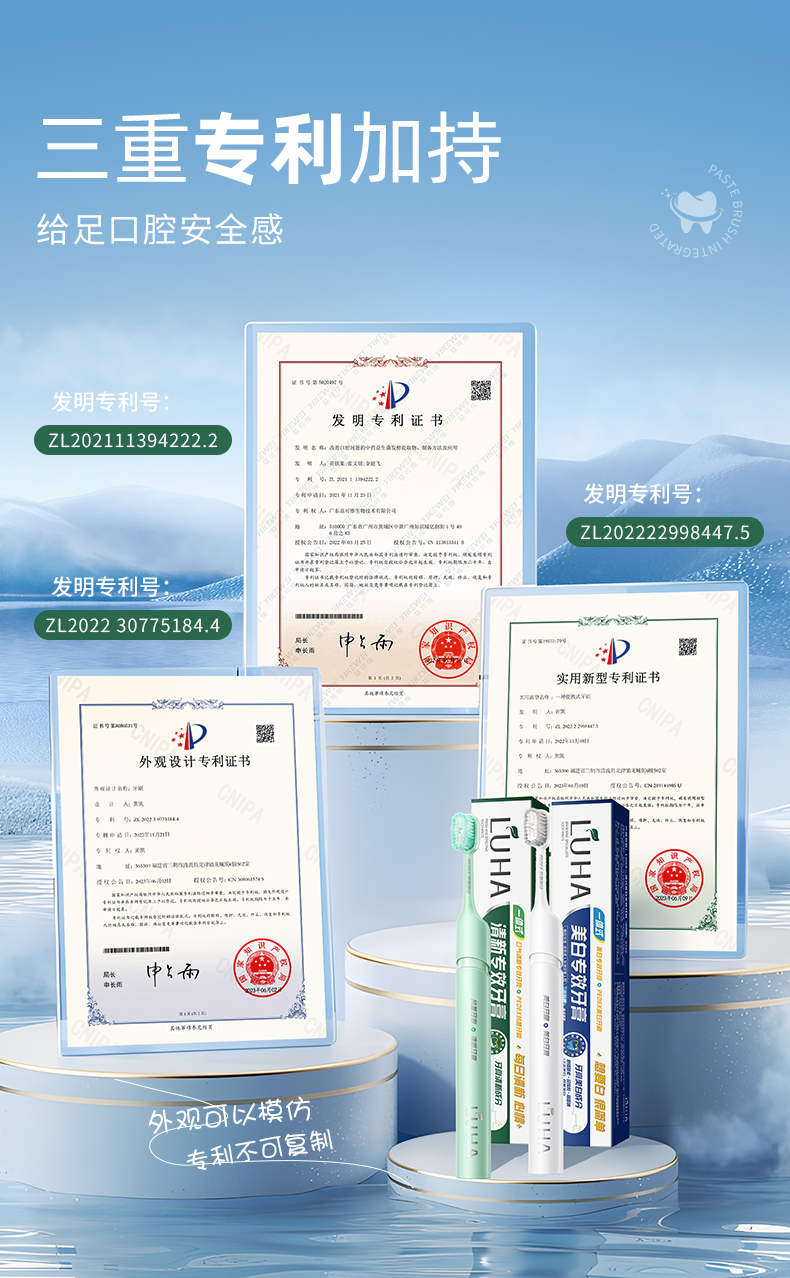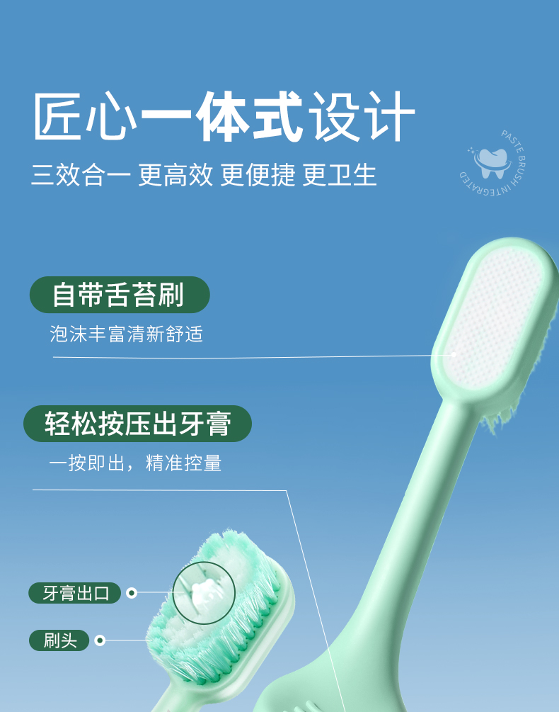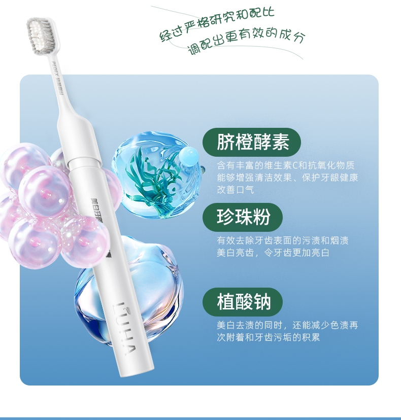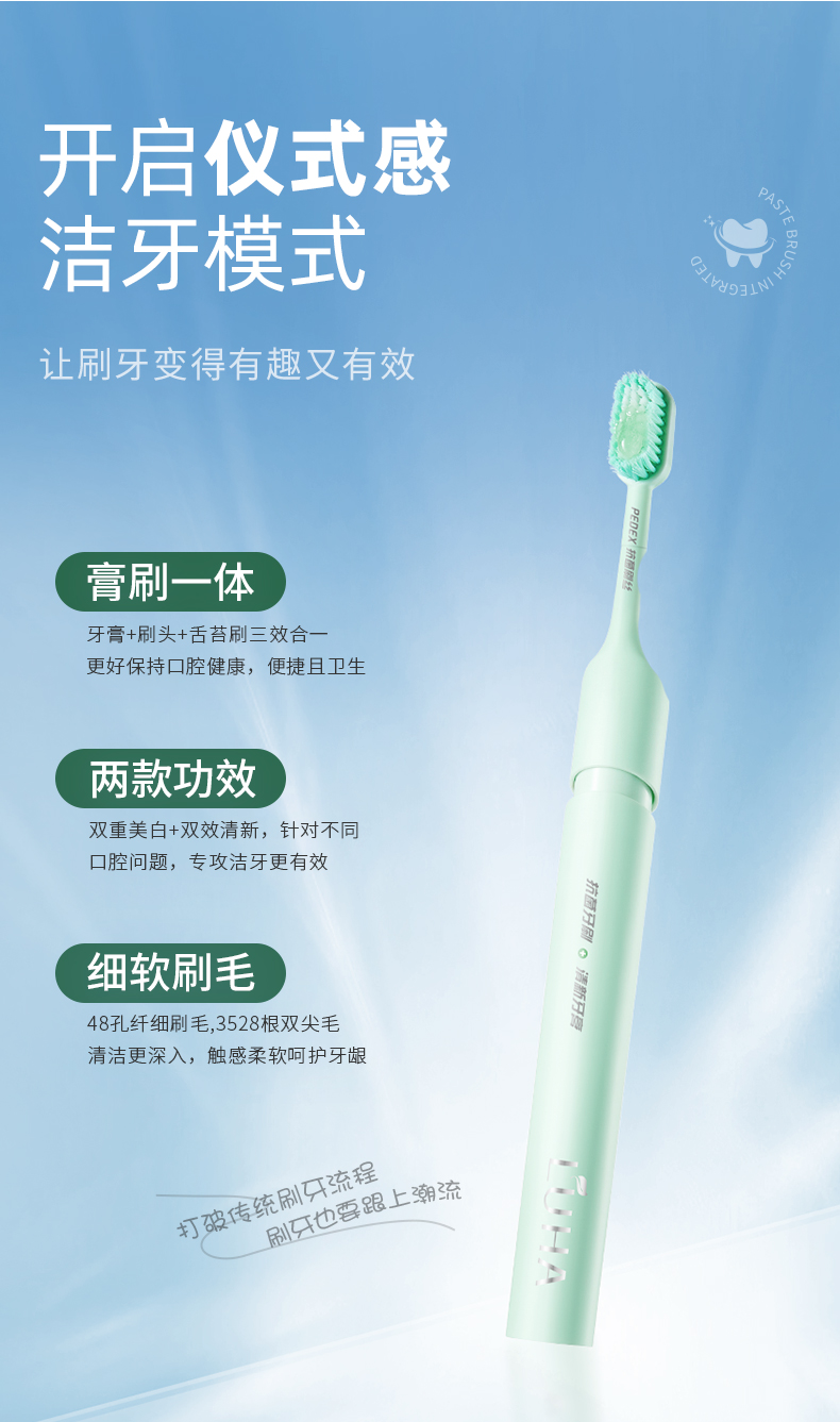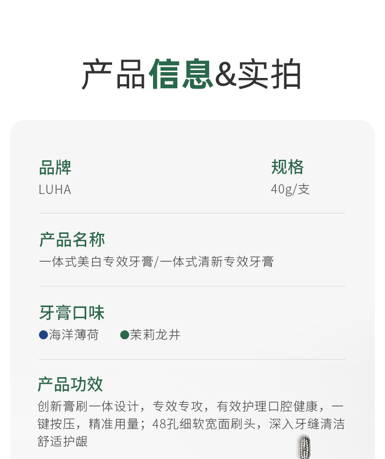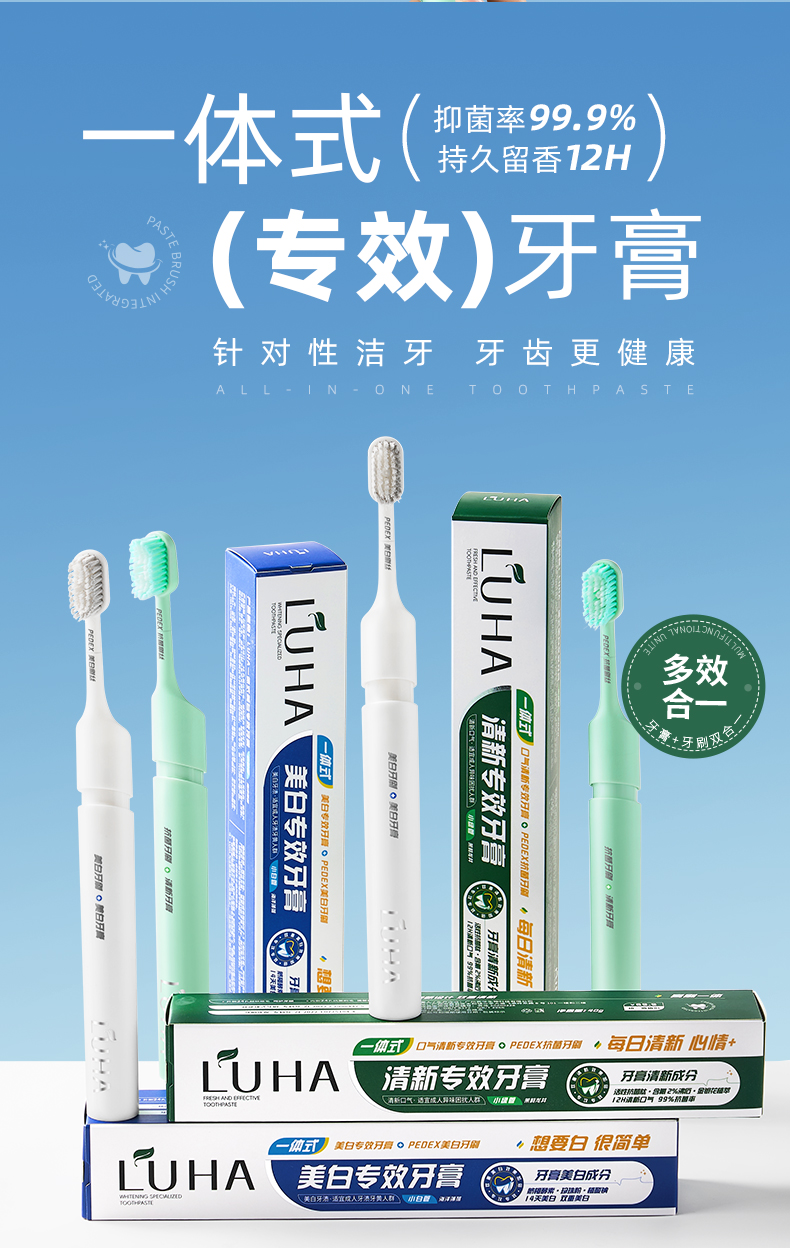 【牙膏+牙刷+舌苔刷三效合一】LUHA一体式专效牙膏 | 双重美白+双效清新 细软刷毛 清洁更深入 持久清新口气 有效护理口腔健康 40g/支