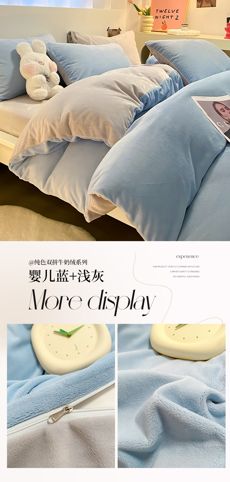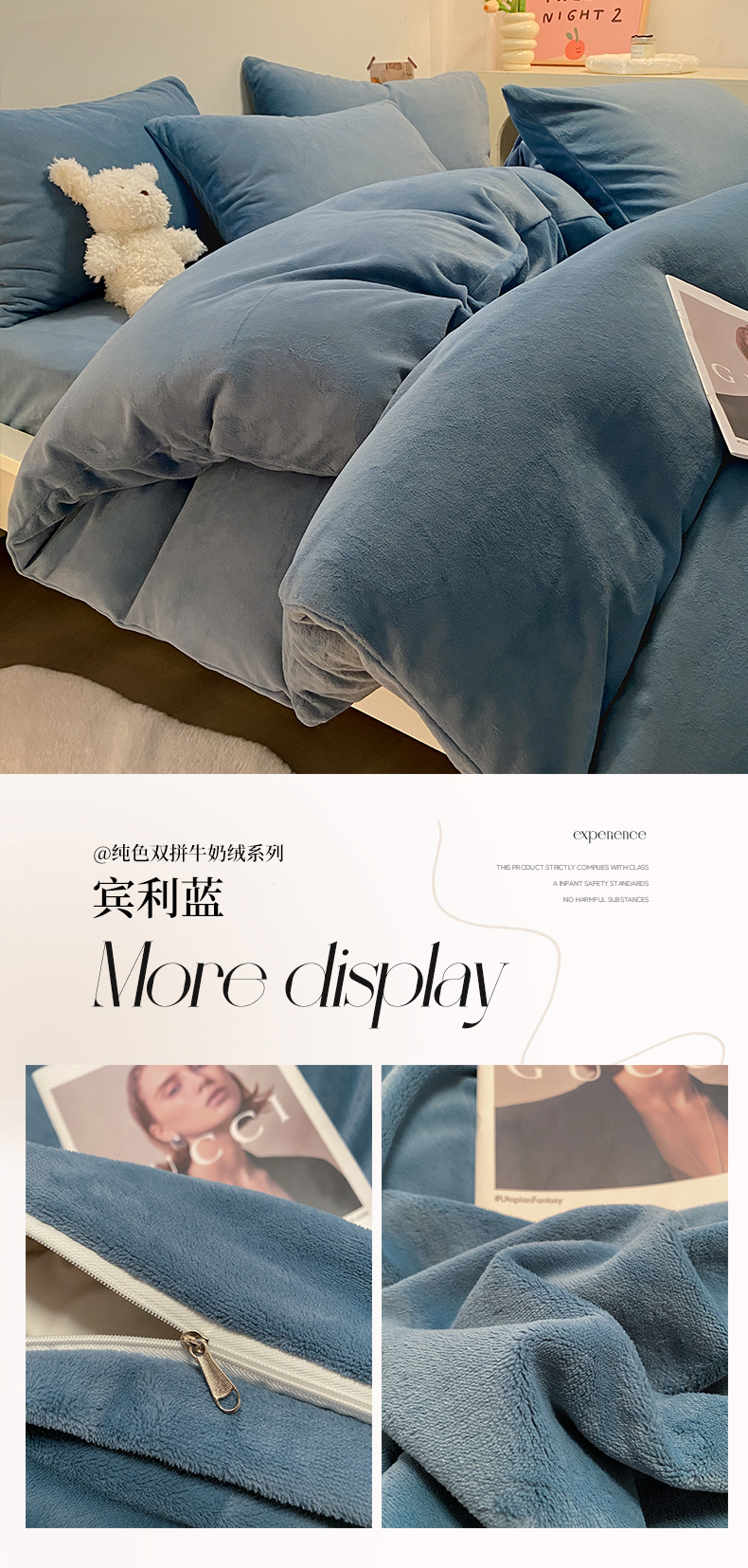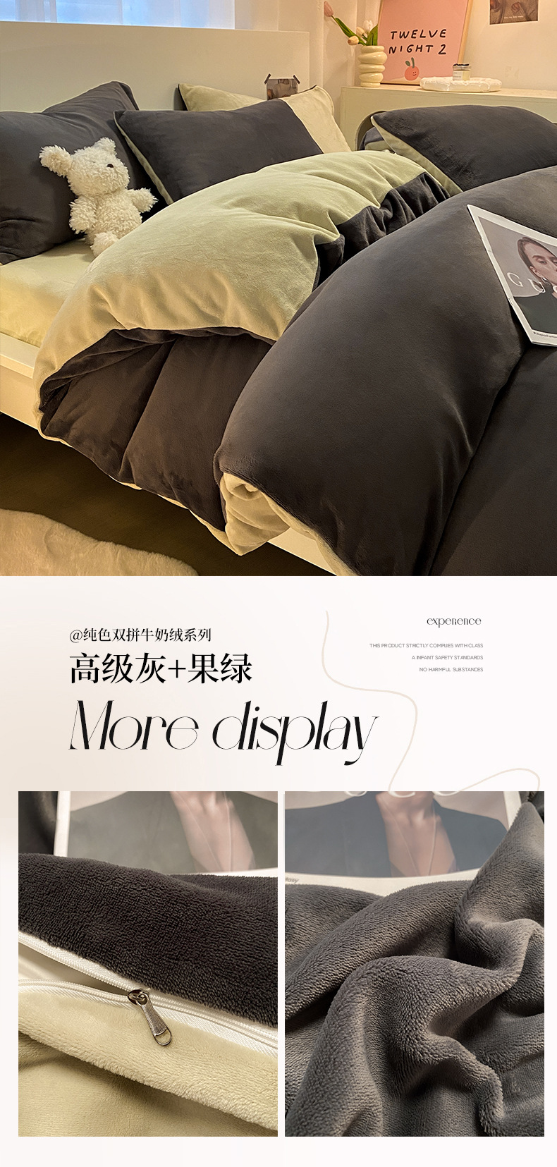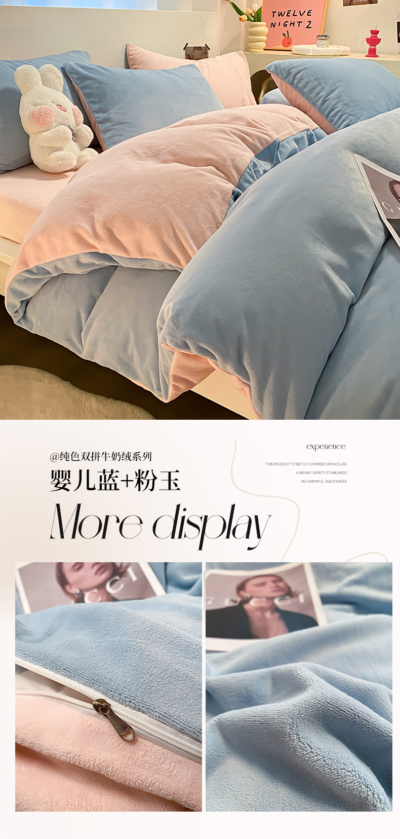 【纯色双拼牛奶绒系列】四件套双面绒加厚保暖宿舍三件套法莱绒床单被套床笠床上用品。rb