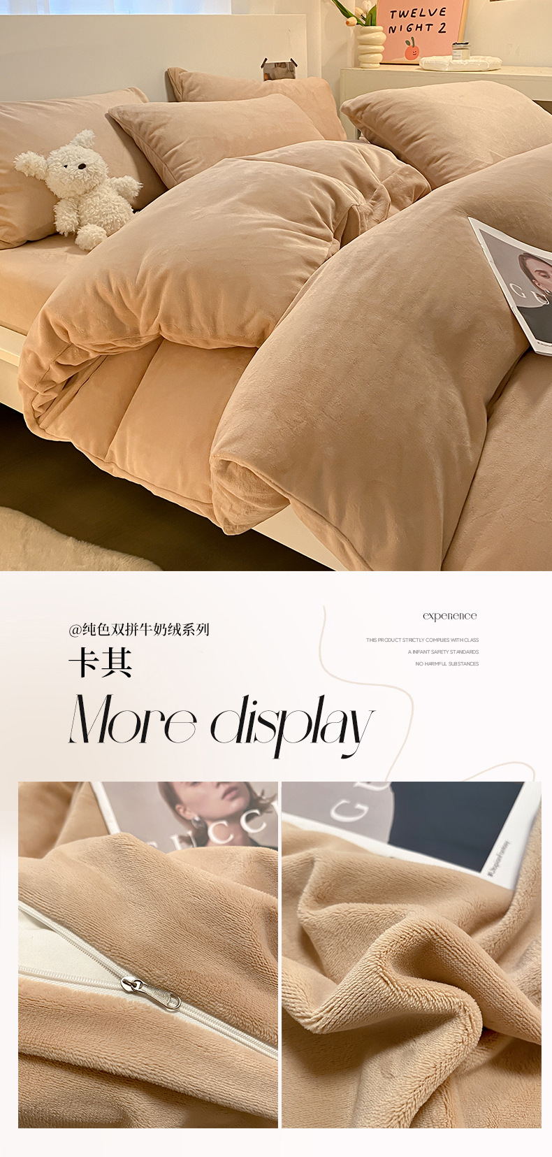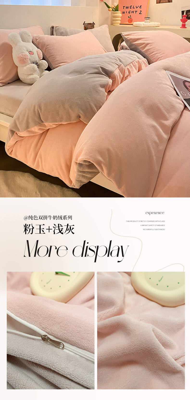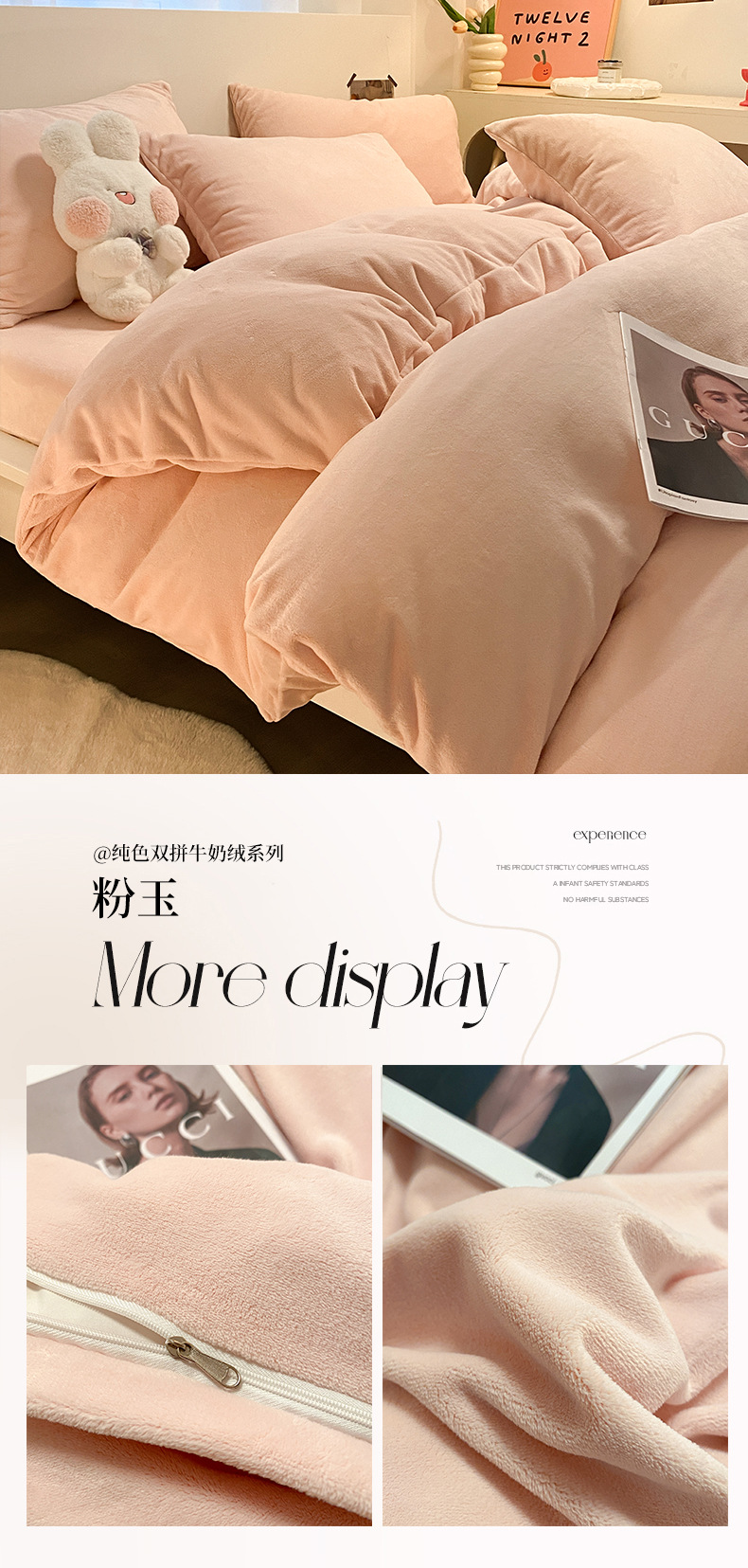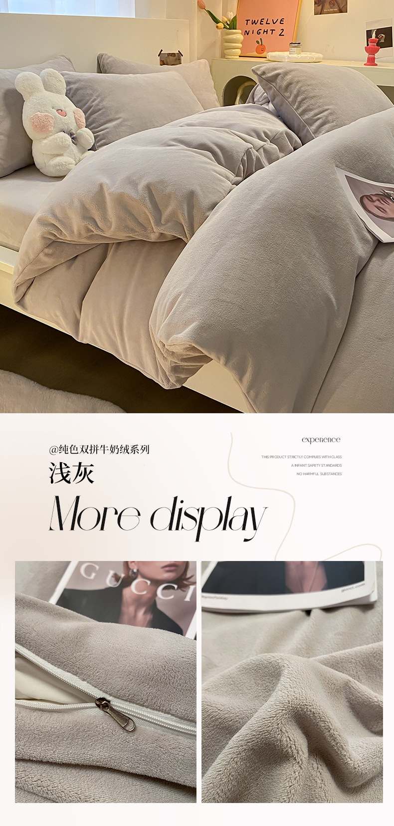 【纯色双拼牛奶绒系列】四件套双面绒加厚保暖宿舍三件套法莱绒床单被套床笠床上用品。rb