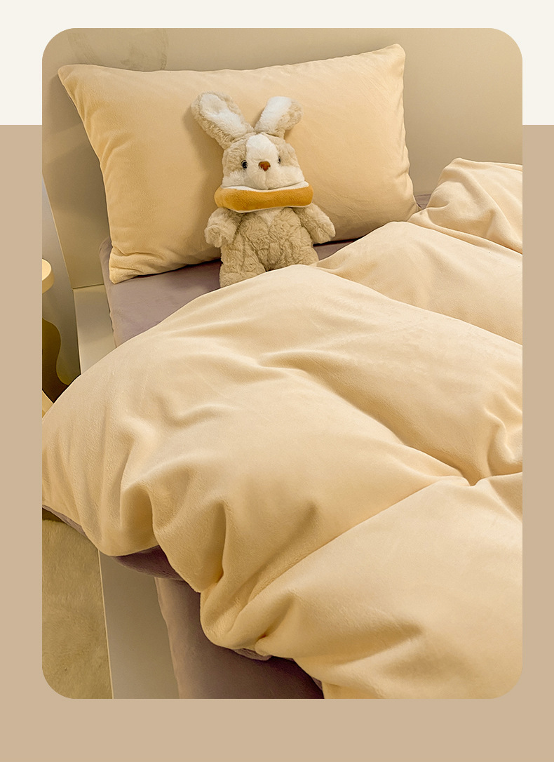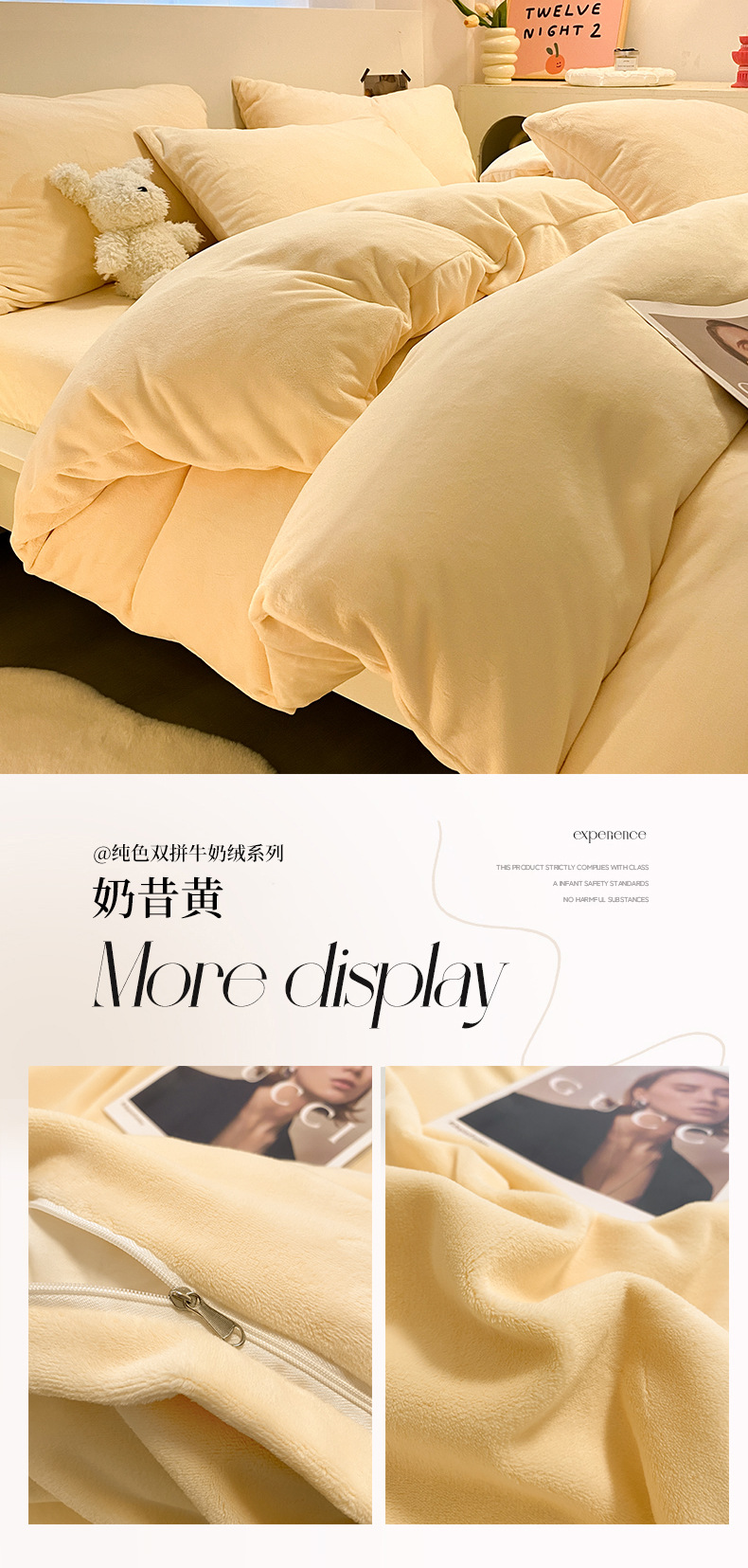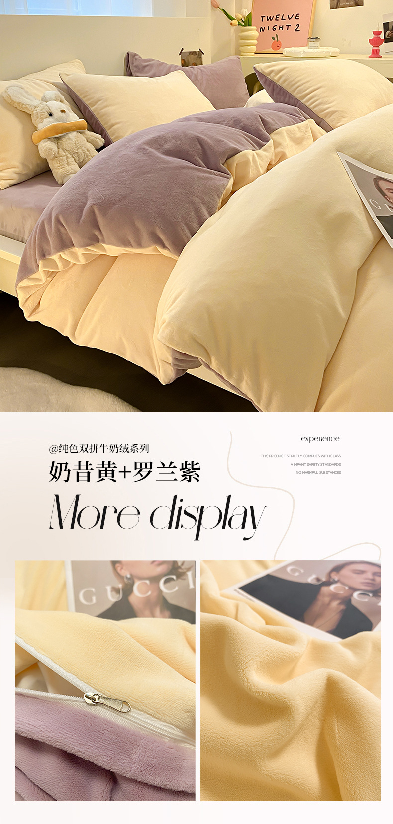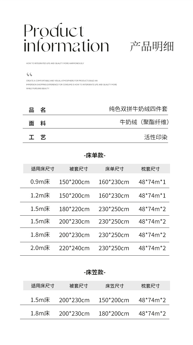 【纯色双拼牛奶绒系列】四件套双面绒加厚保暖宿舍三件套法莱绒床单被套床笠床上用品。rb