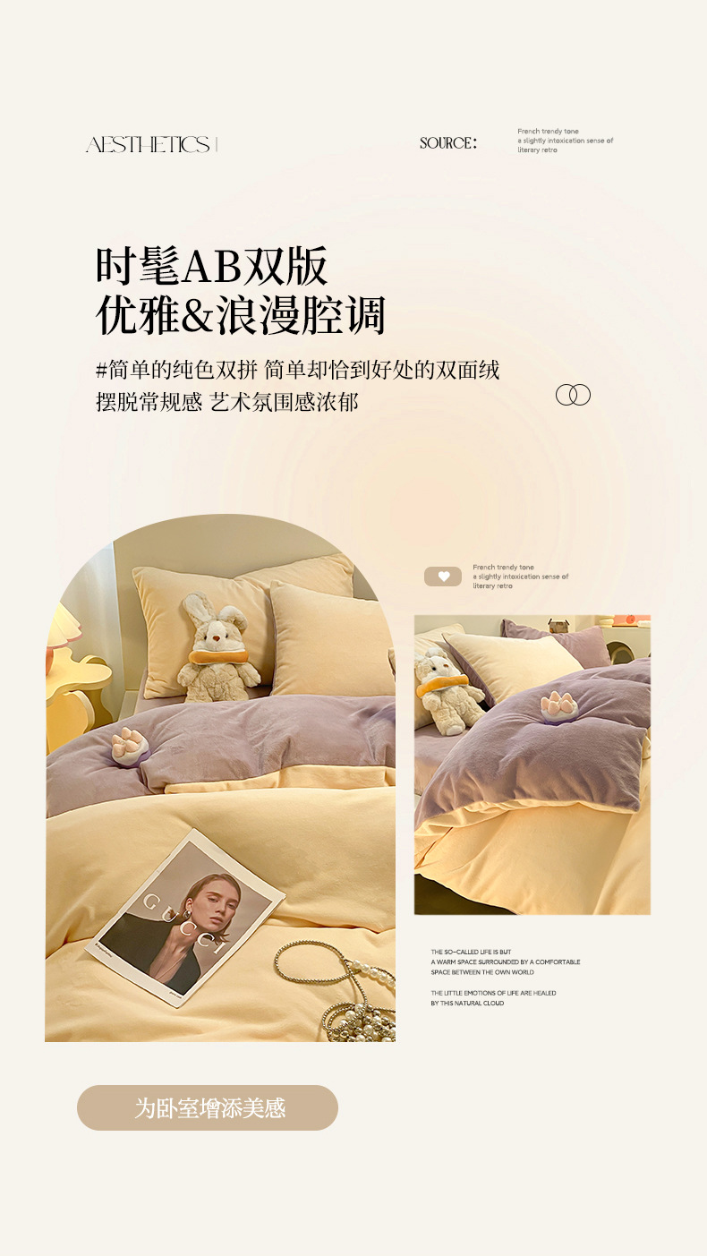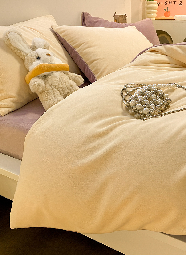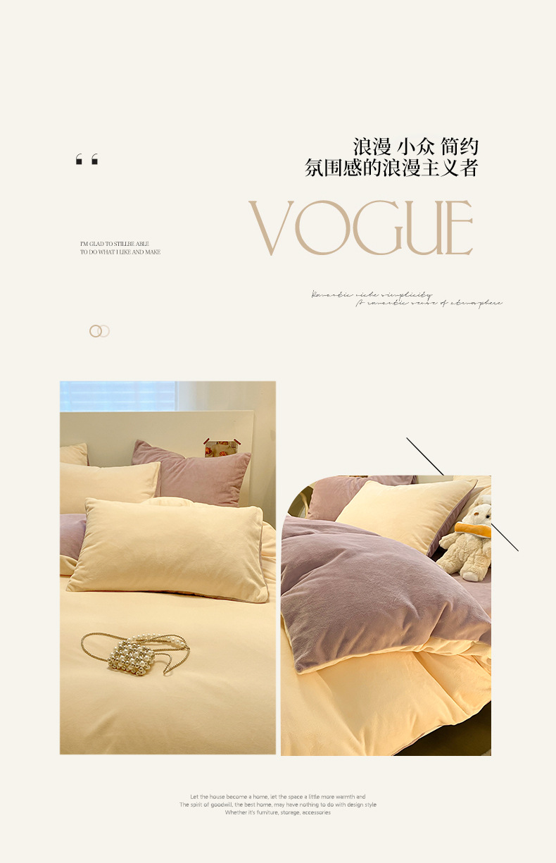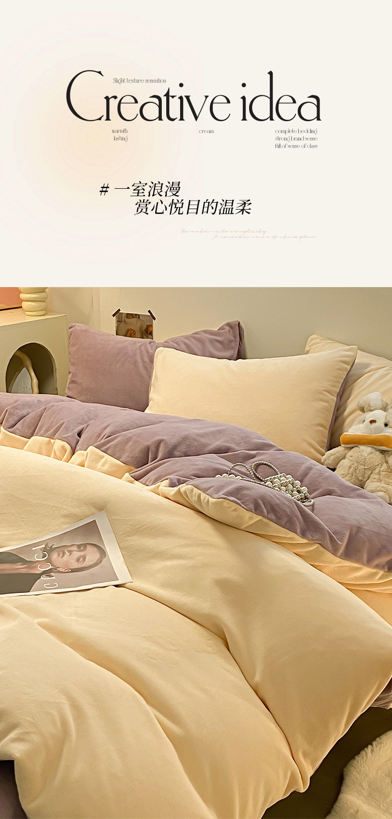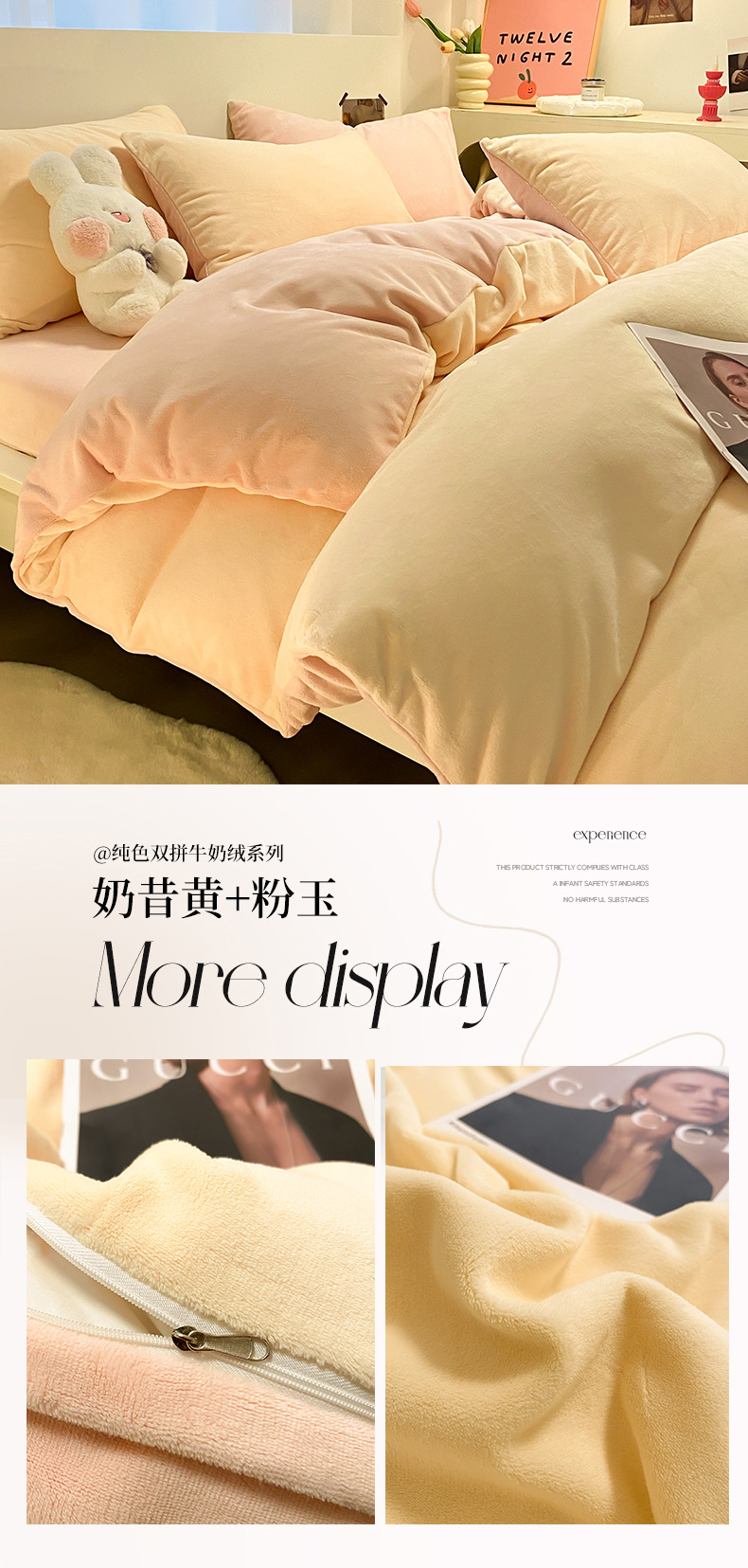 【纯色双拼牛奶绒系列】四件套双面绒加厚保暖宿舍三件套法莱绒床单被套床笠床上用品。rb