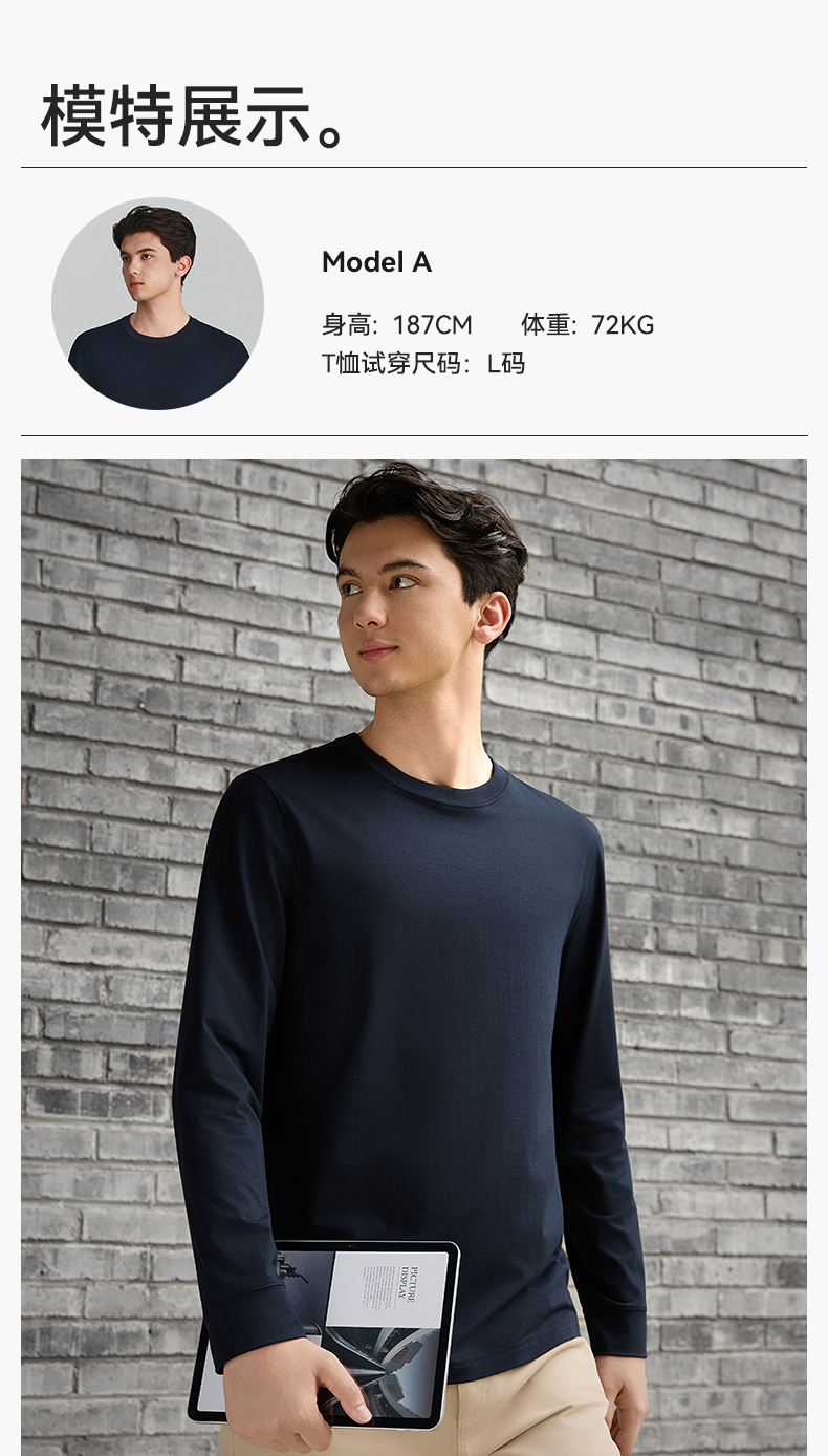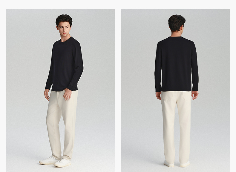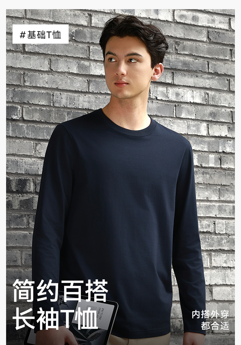 秋冬针织圆领平纹亲肤长袖T恤-T06-C1