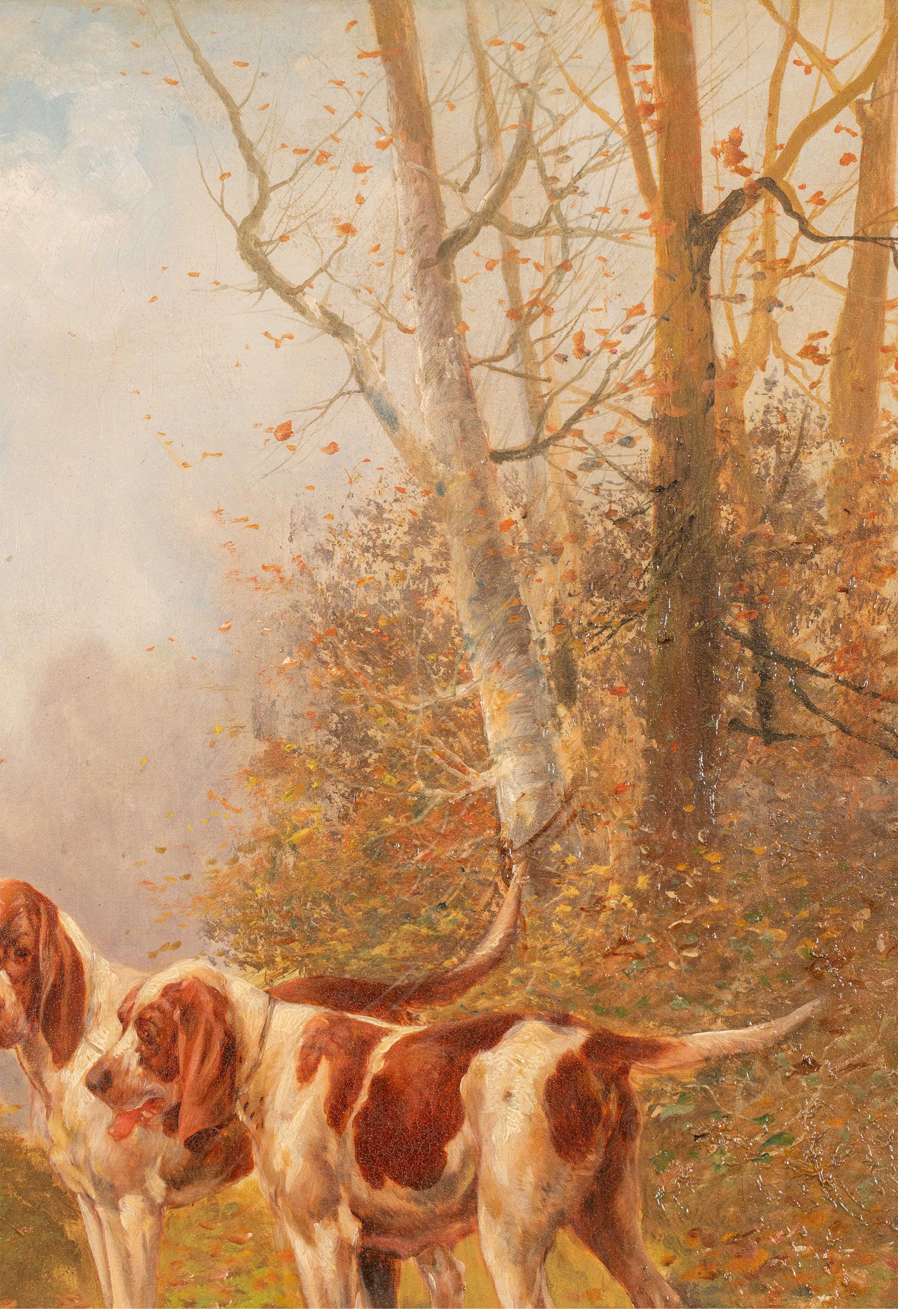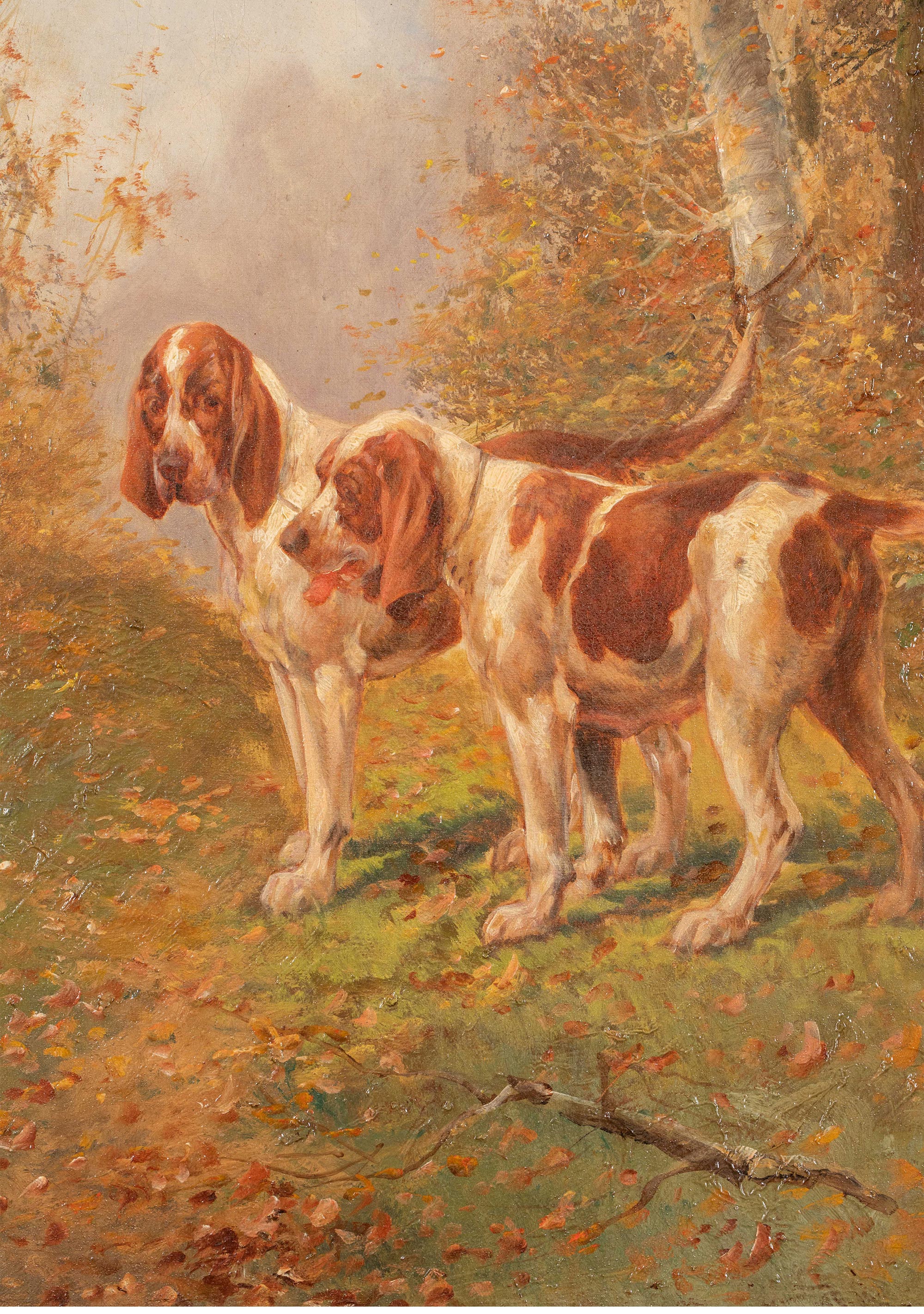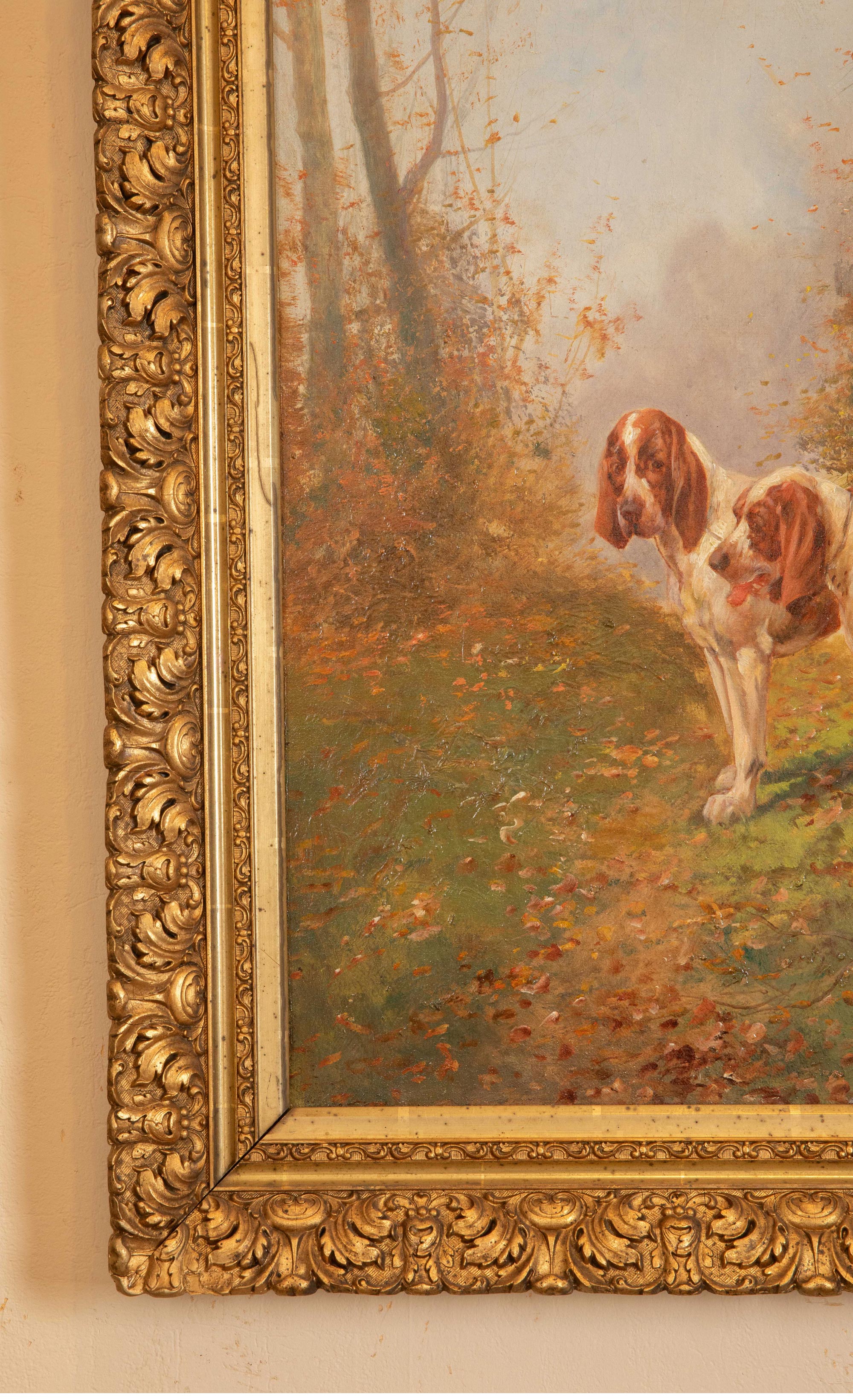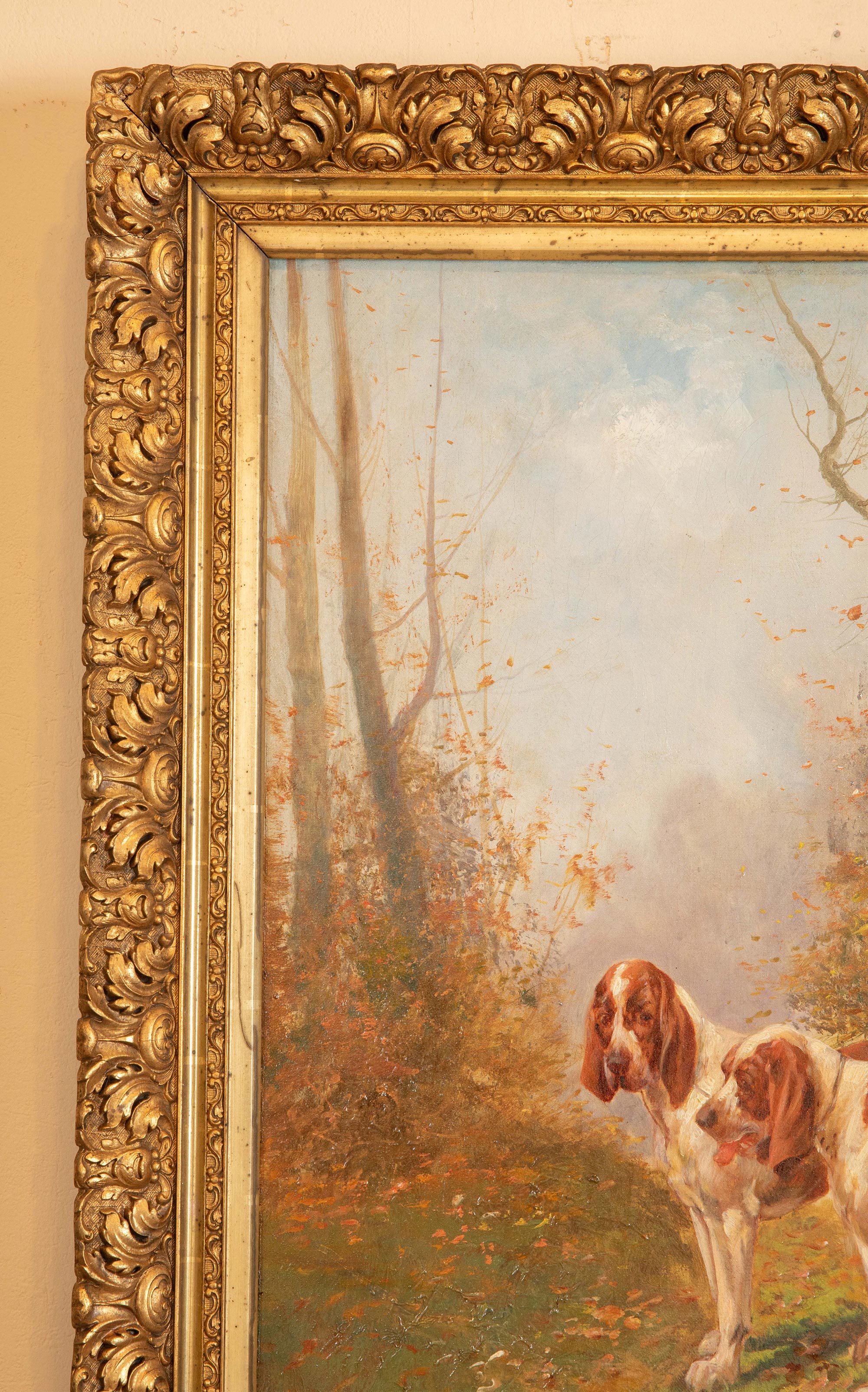 19世纪法国画家Eugène Petit签名创作动物主题布面油画《猎犬》