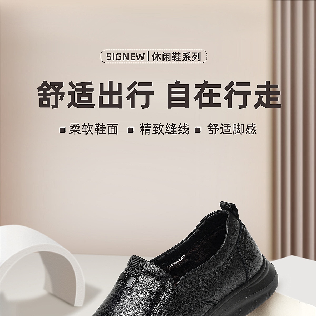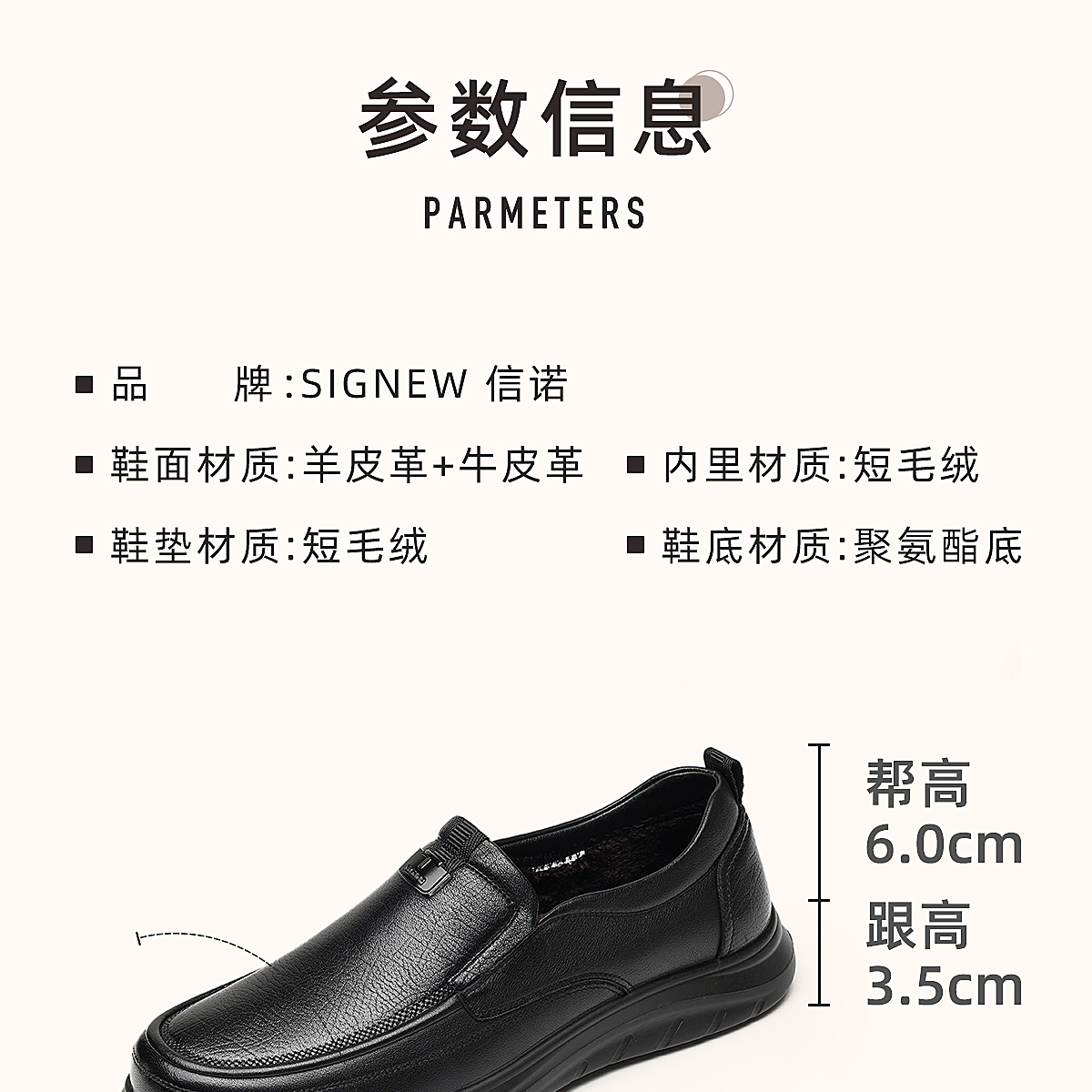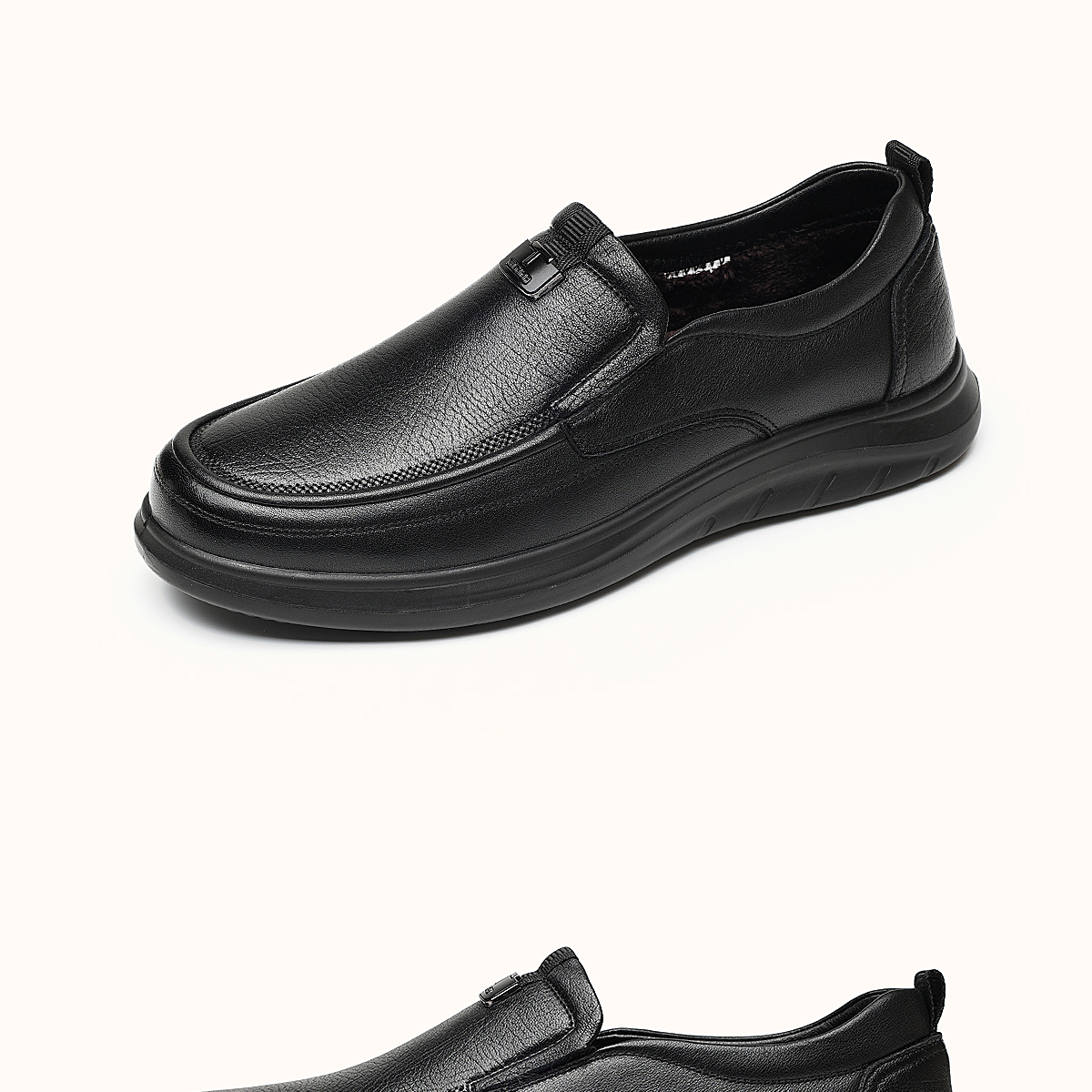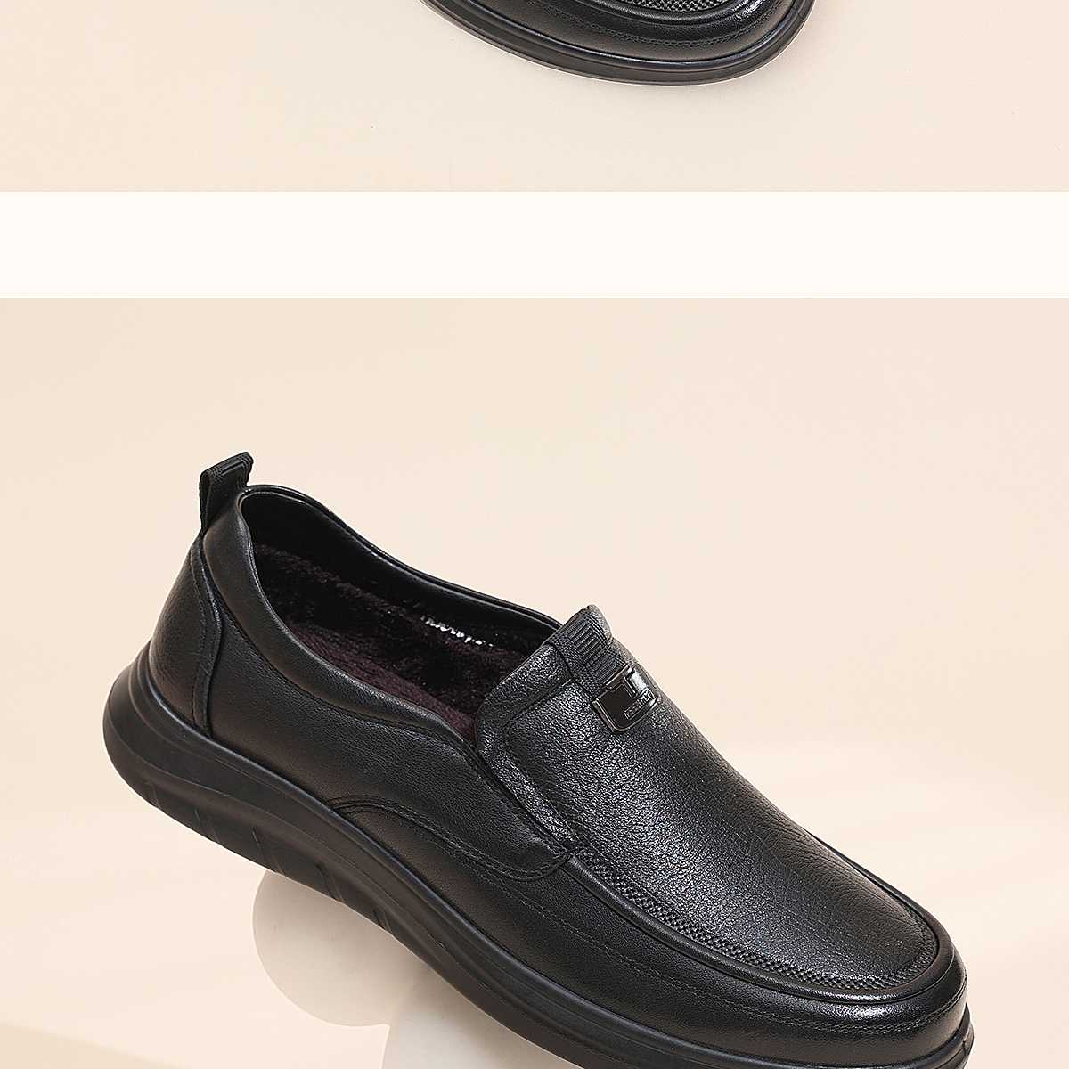 真皮男士商务休闲鞋软底舒适加绒保暖棉鞋中老年皮鞋2025冬季新款N5M115-233