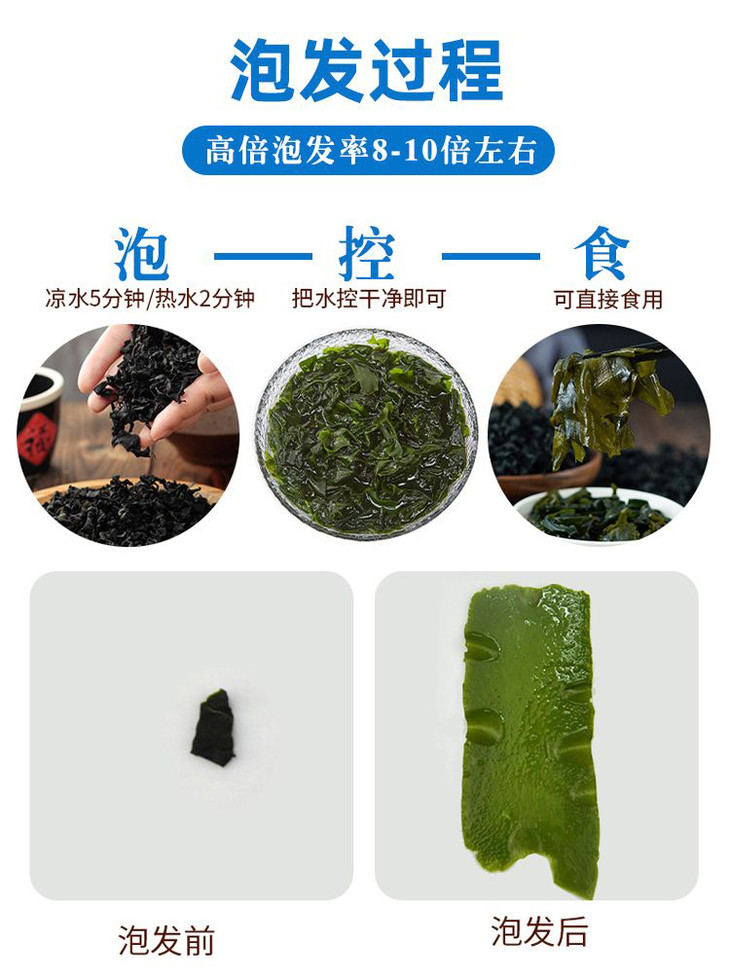 1、裙带菜2袋 +海带结2袋 /组 (裙带菜80克/袋 海带结30克/袋);拍几份发几个包裹,不一定同时到达,请耐心等待。