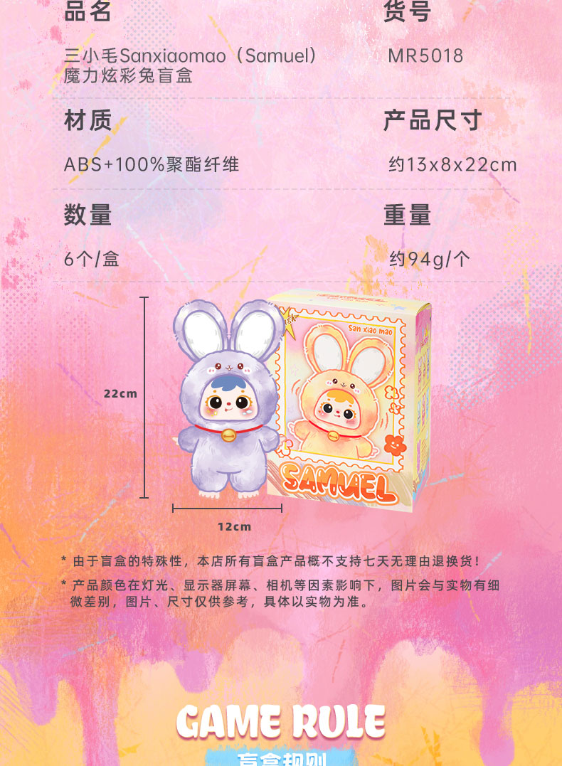 三小毛魔力炫彩兔盲盒-纪念日百货门店同款166548885