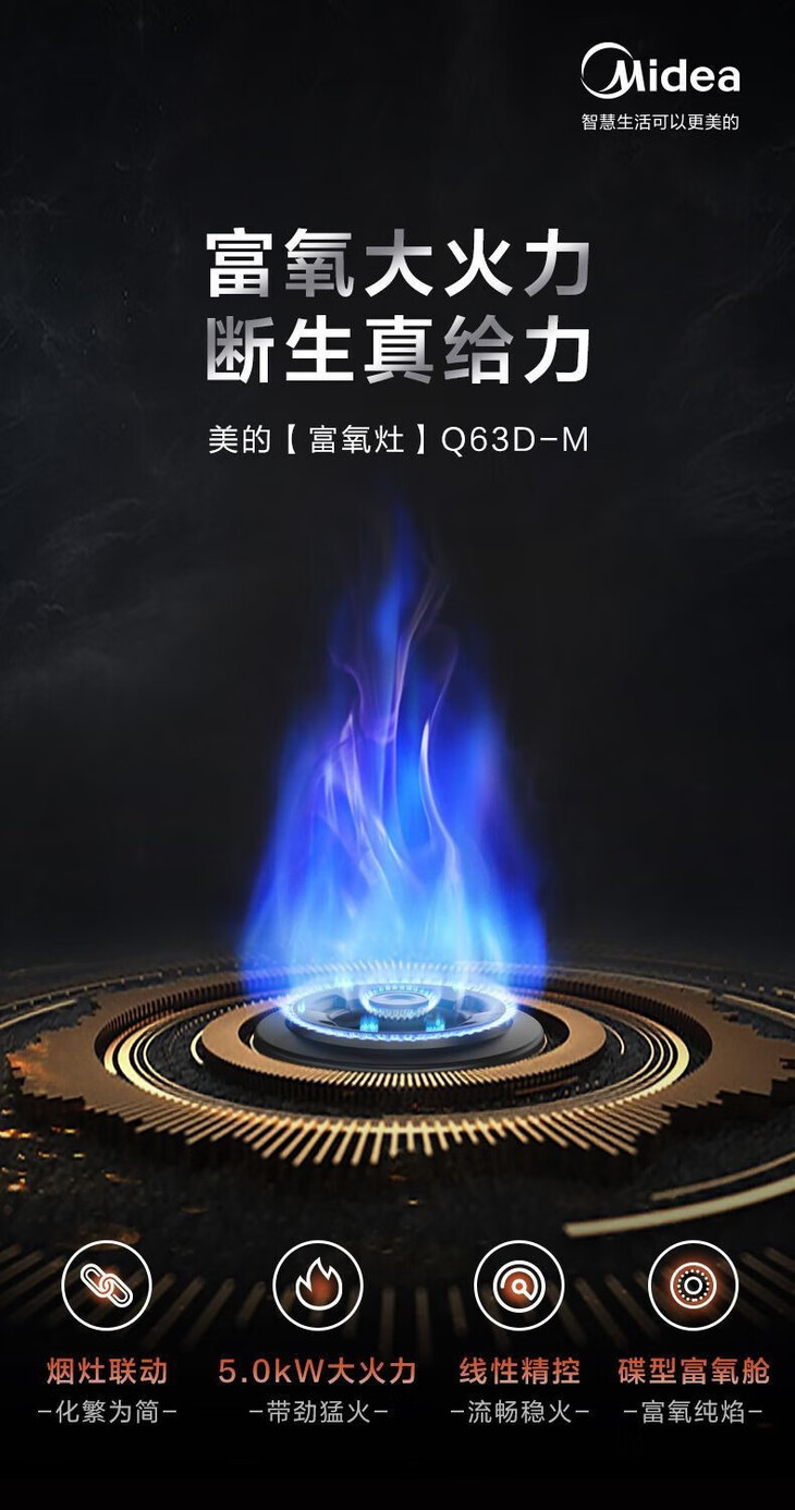 美的(Midea)(510006 )JZT-Q63D-M燃气灶天然气双灶具家用5.0kW猛火灶台嵌两用钢玻面板