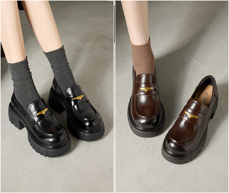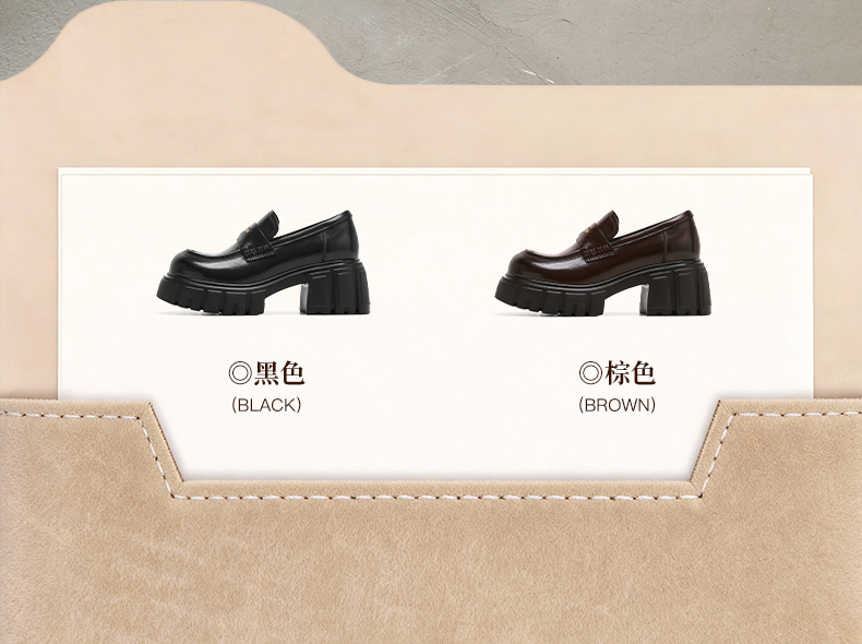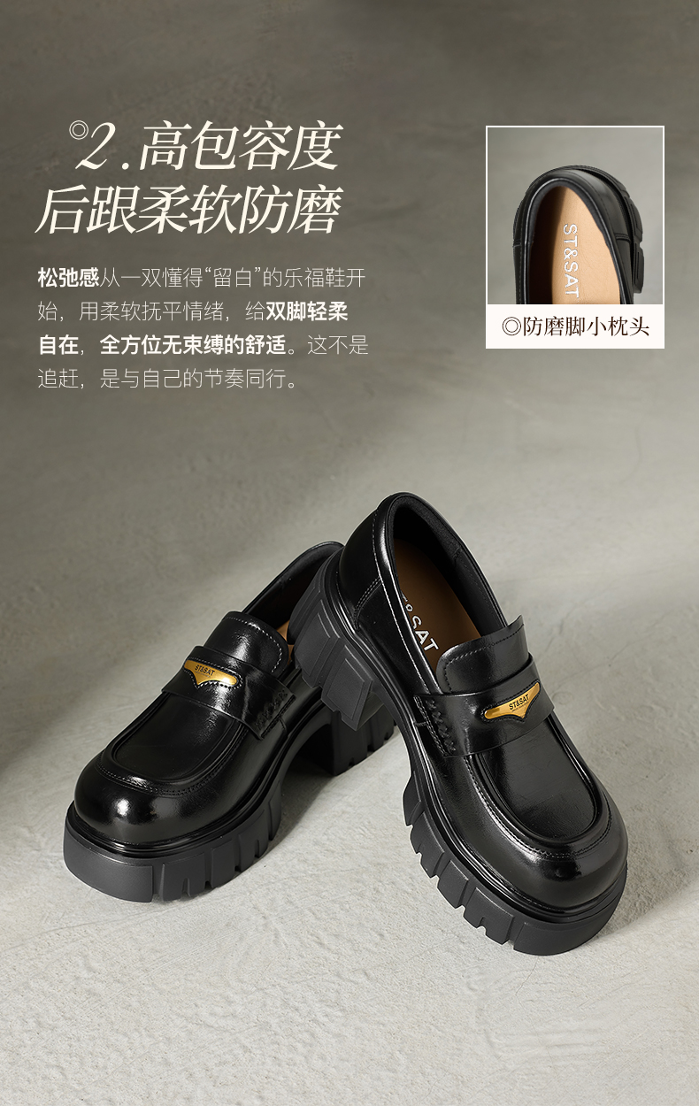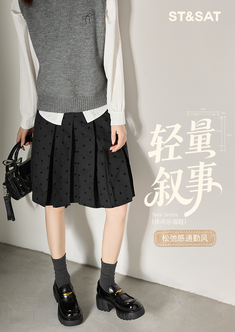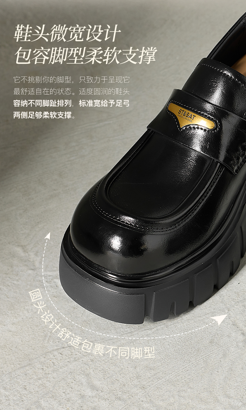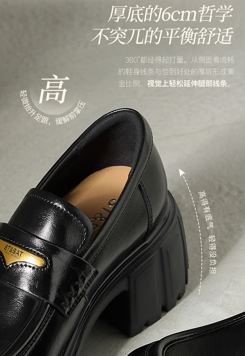 星期六26春新款学院风减龄厚底粗跟乐福鞋SSE1112CF8