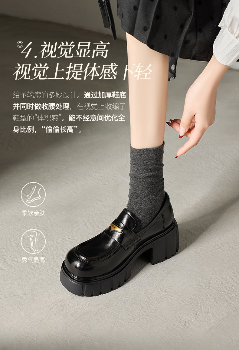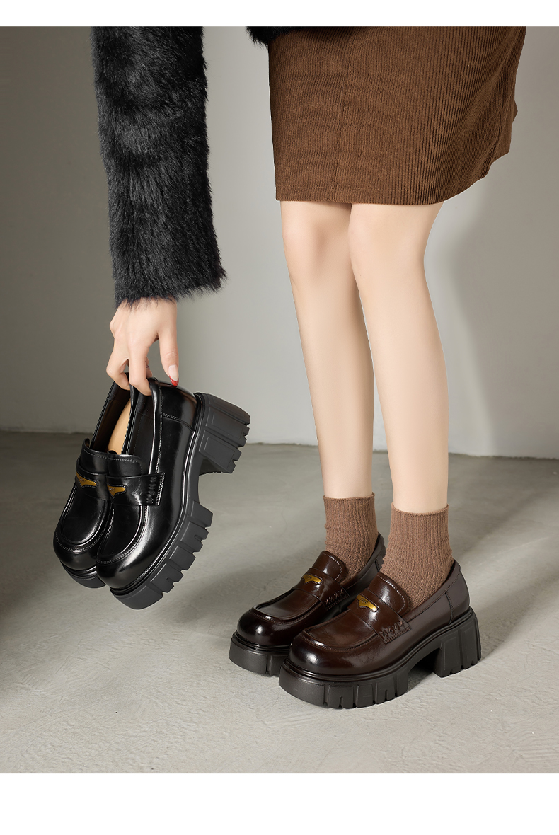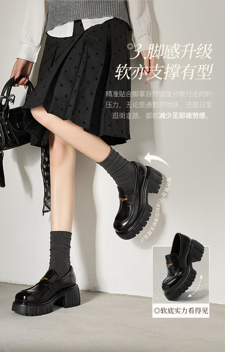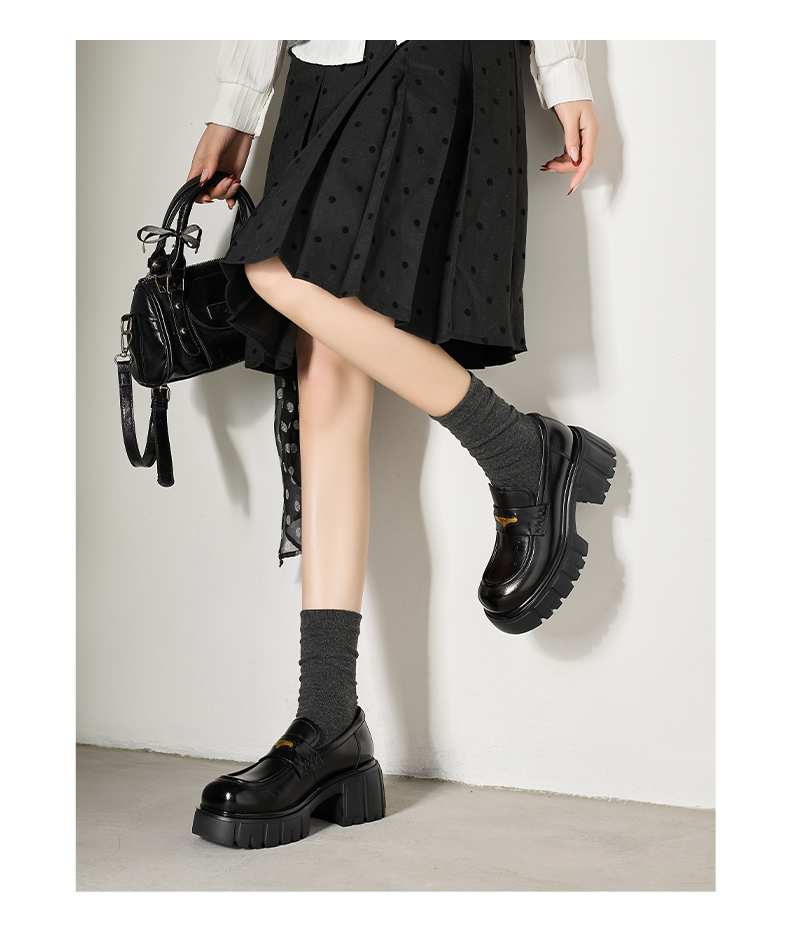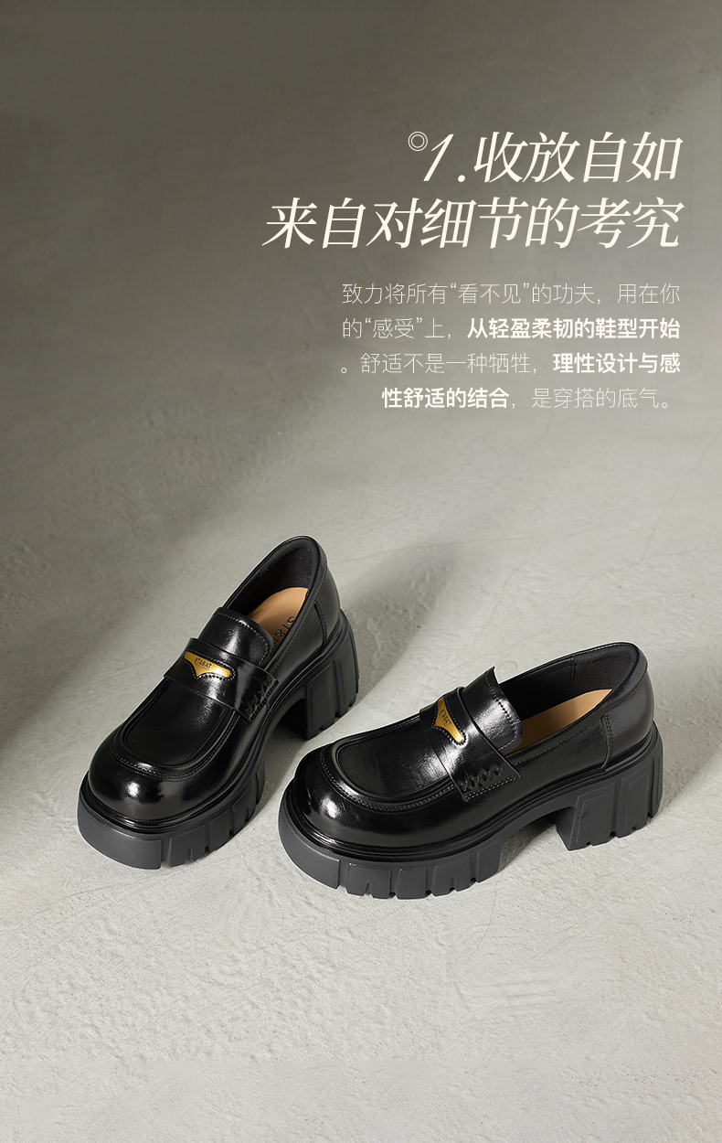 星期六26春新款学院风减龄厚底粗跟乐福鞋SSE1112CF8