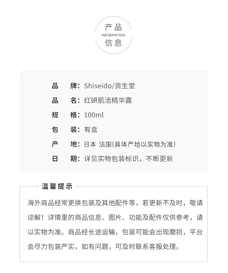 资生堂红腰子精华100ml 26年下半年 介意勿拍