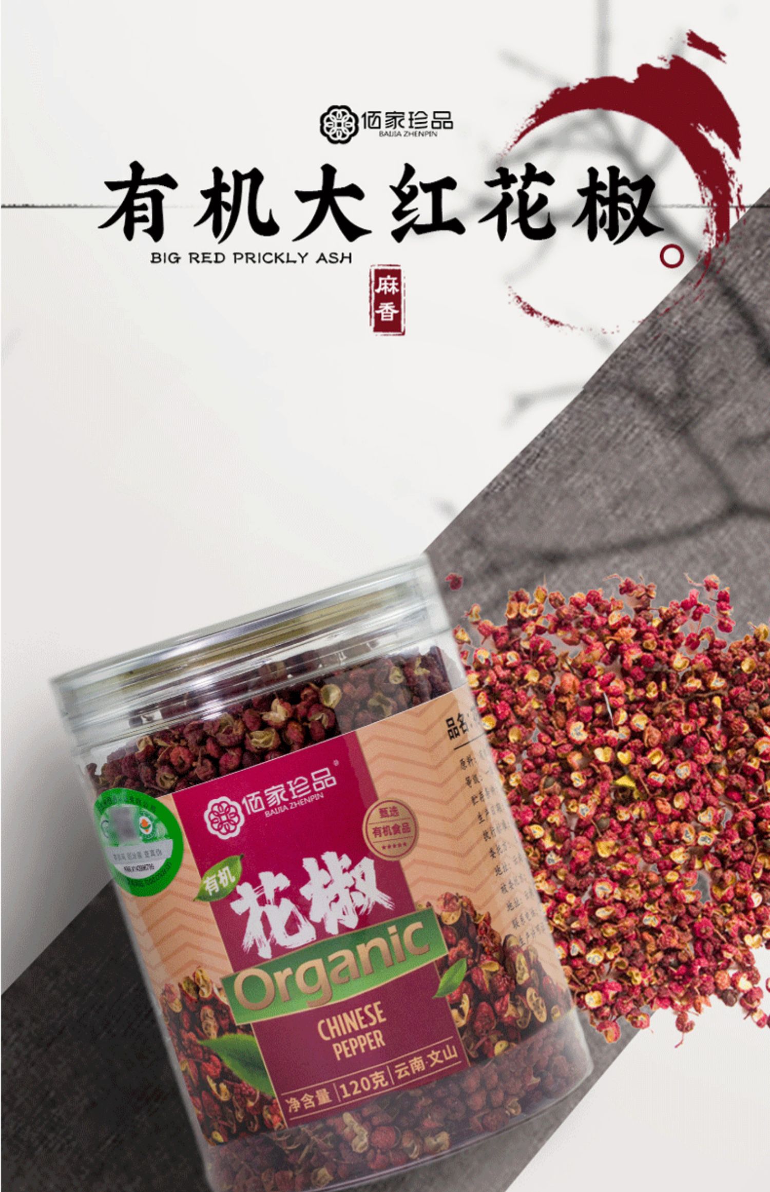 云南文山有机花椒120g|有机种植 纯手工采摘 香味浓郁 酥麻爽口