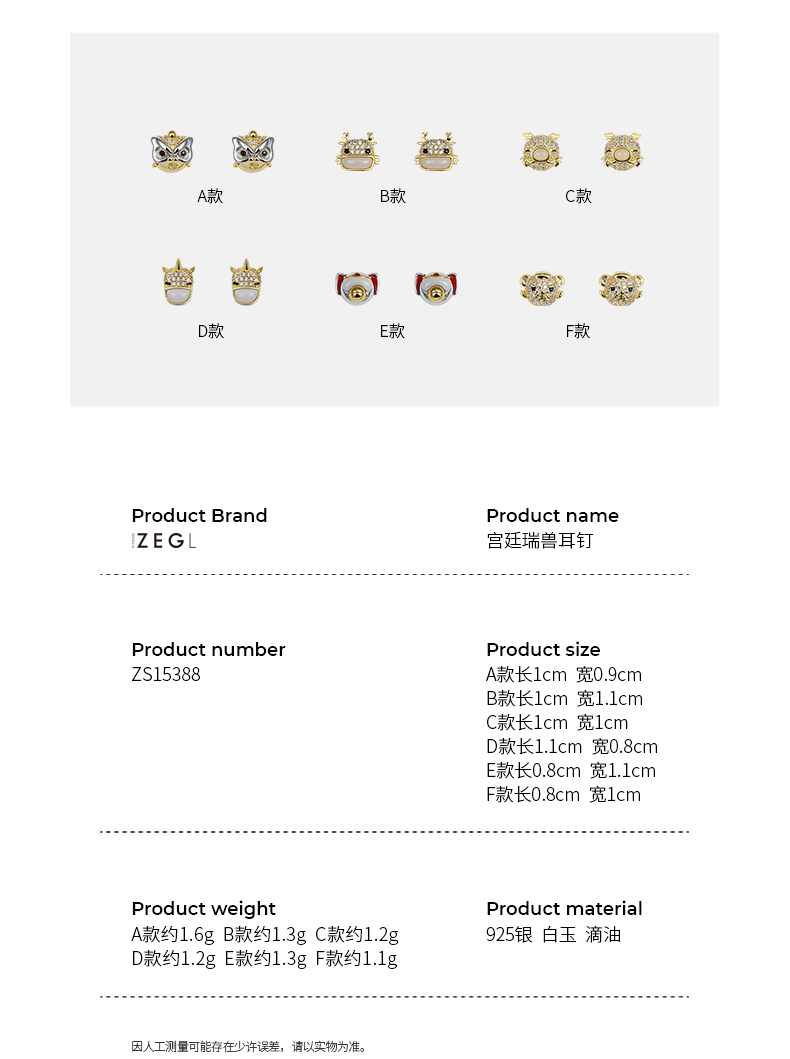 ZEGL 故宫宫廷文化系列IP十殿下合作款上新925银瑞兽耳钉女潮耳环