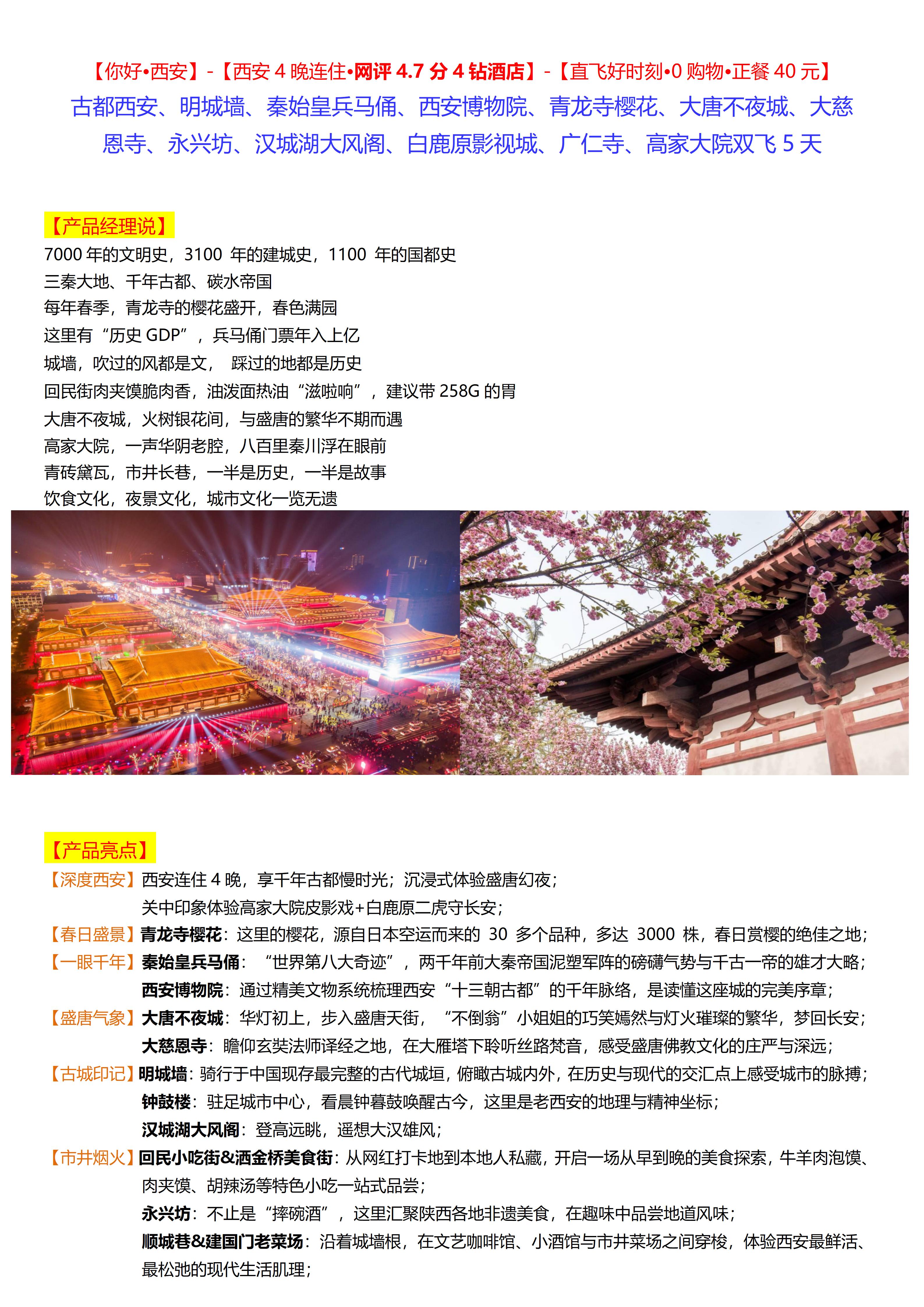 【节后特价】<西安5天双飞>明城墙、秦始皇兵马俑、西安博物院、青龙寺樱花、大唐不夜城、大慈恩寺、永兴坊、汉城湖大风阁、白鹿原影视城、广仁寺、高家大院