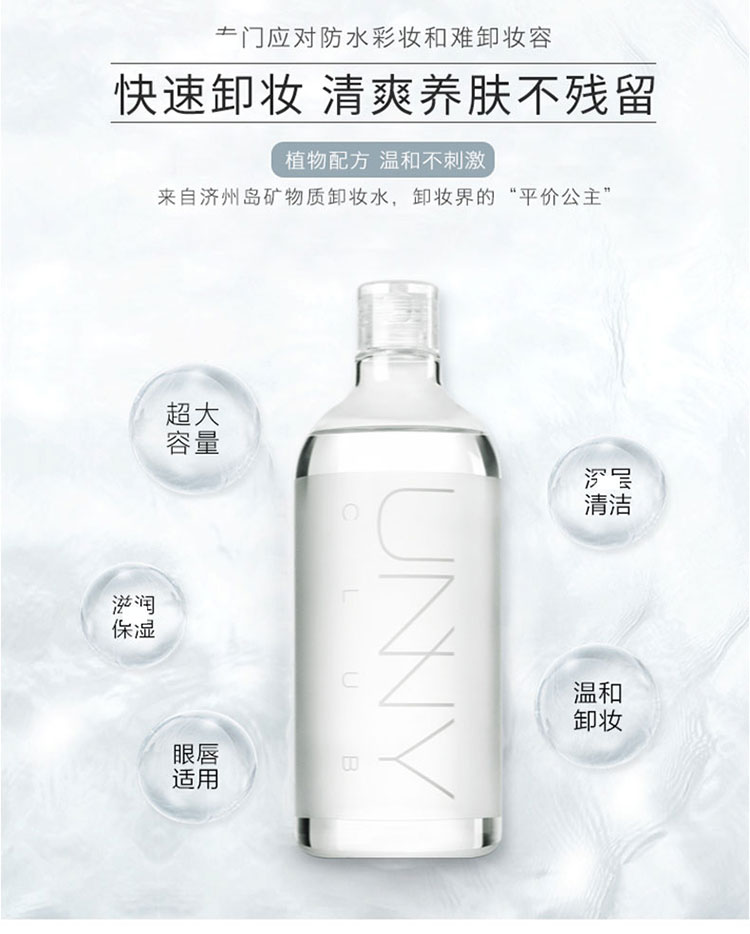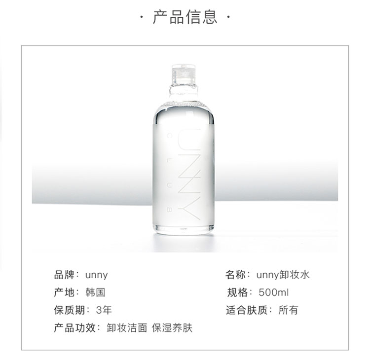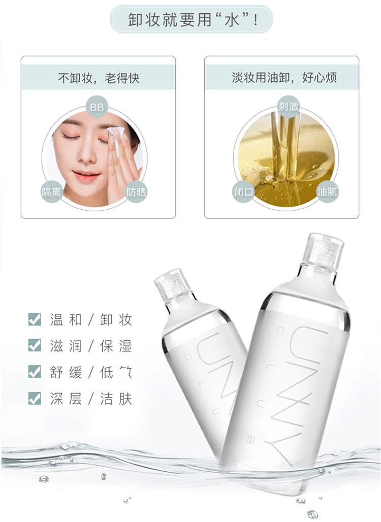【1秒卸妆】眼唇脸三合一卸卸妆水!韩国UNNY温和清洁矿物质清洁卸妆水500ml-泓新仓发
