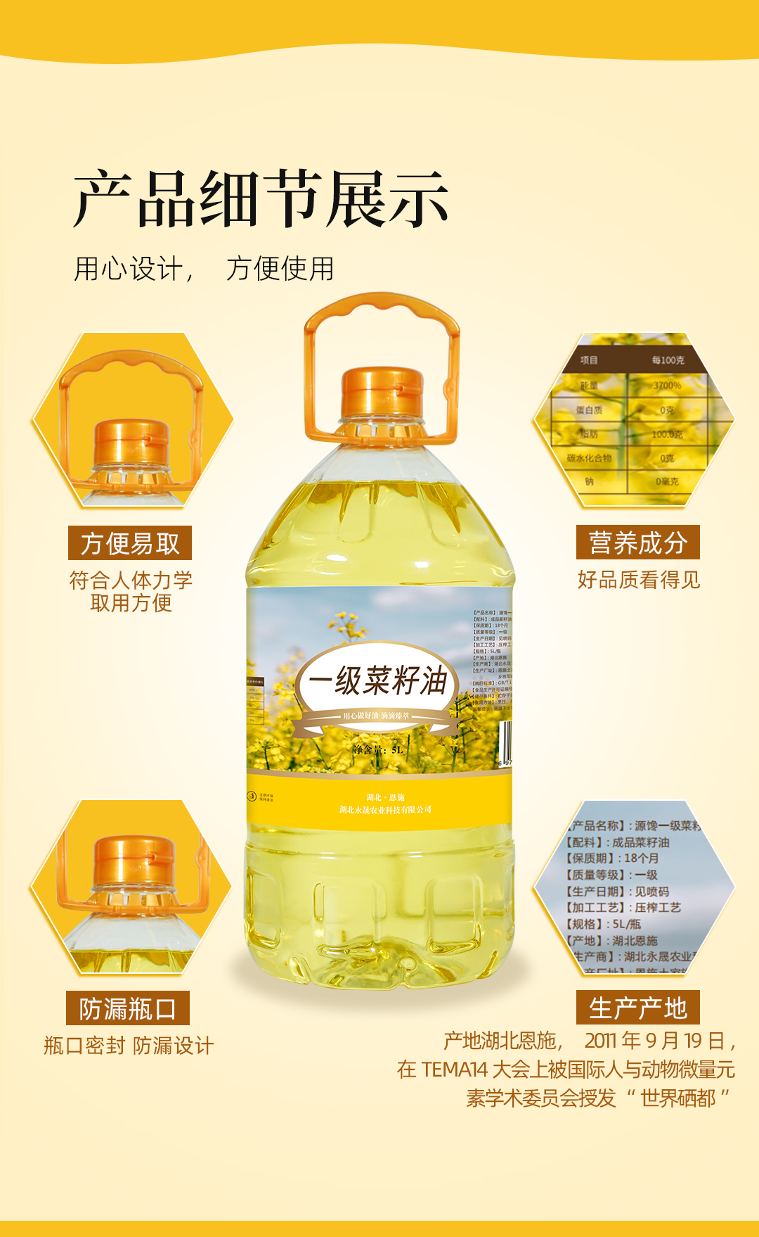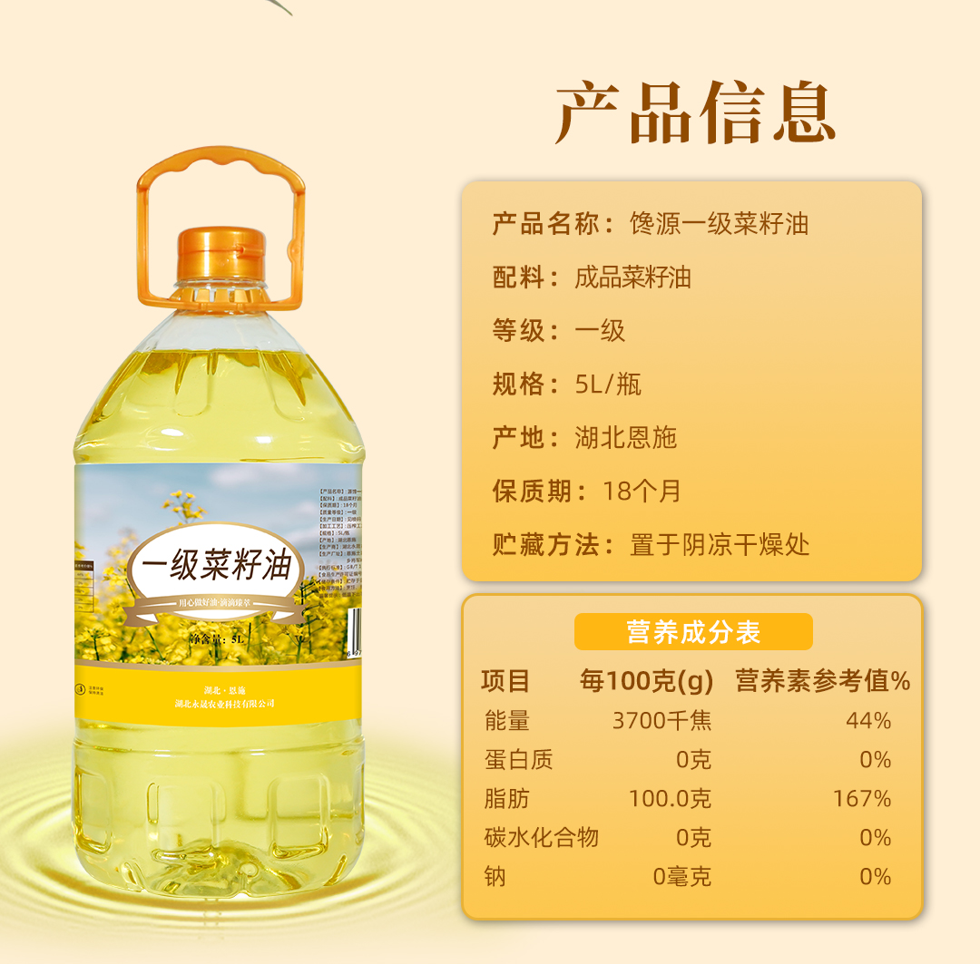 巴东县源馋一级菜籽油5L/桶