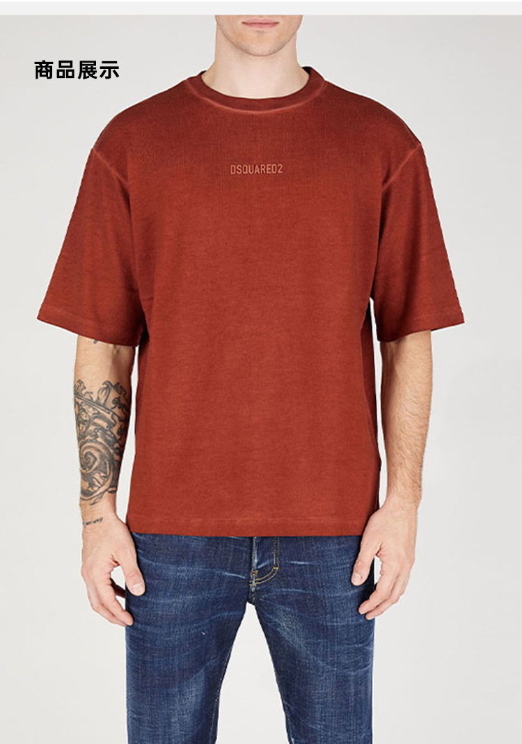 【一】DSQUARED2 男士字母徽标刺绣棉质平纹针织圆领短袖T恤 棕色 S74GD1331 S24661 255