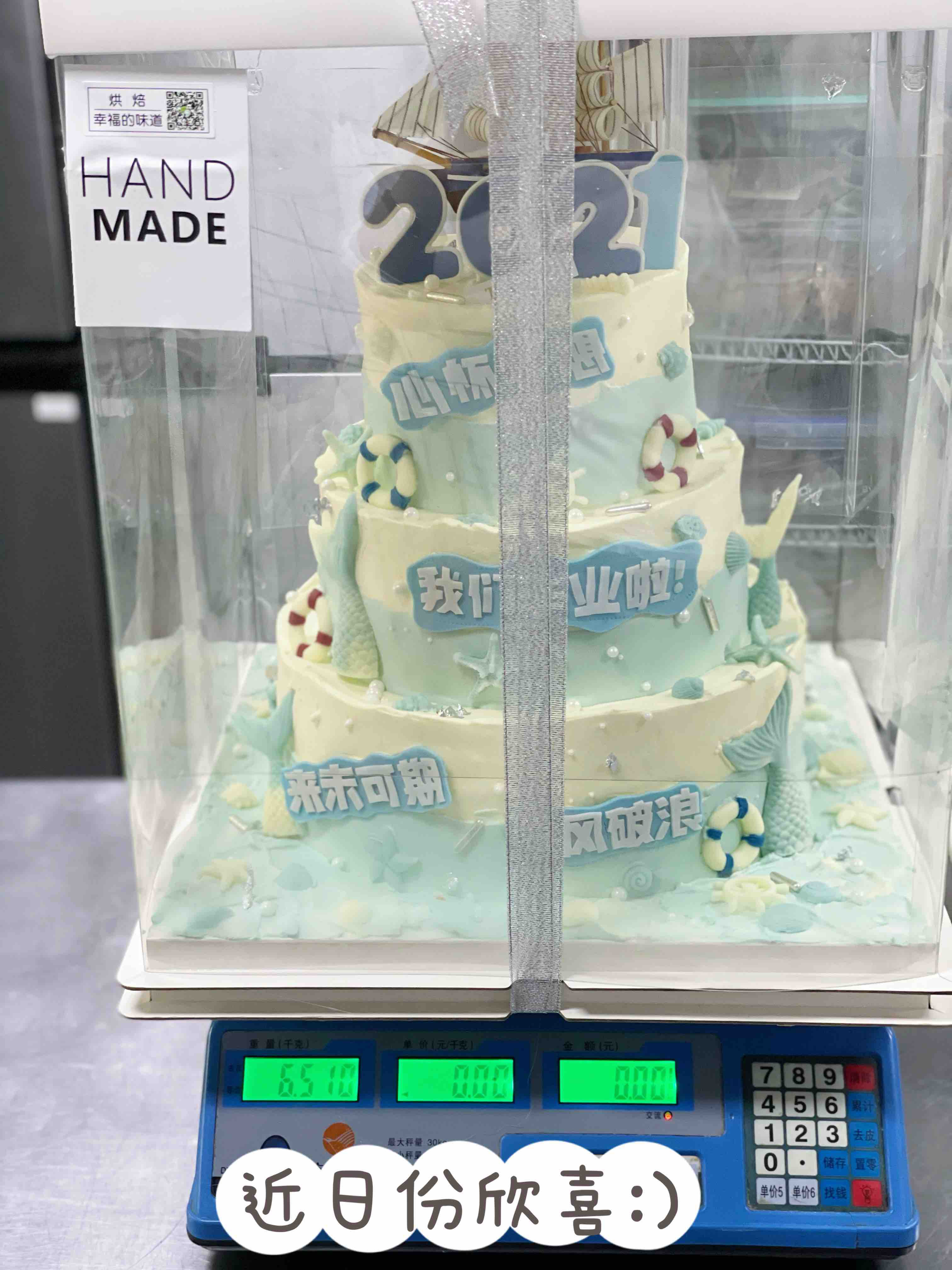 名字款三层毕业蛋糕。乘风破浪主题,如果我们不能一路同行,那就各自努力,顶峰相见,翻糖及巧克力装饰全部可食用,需提前48小时预订