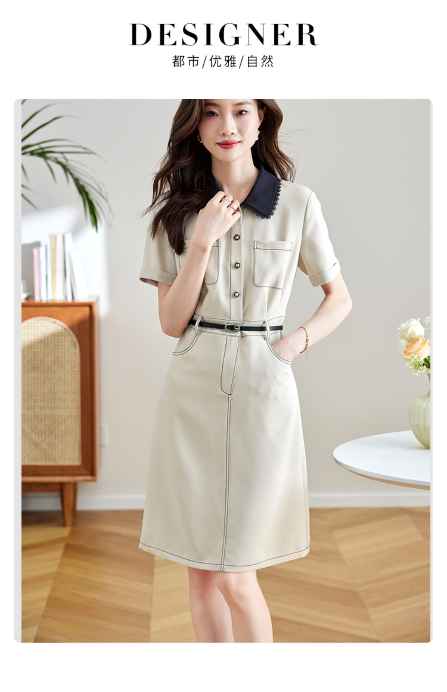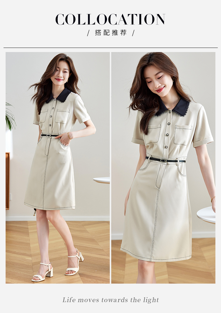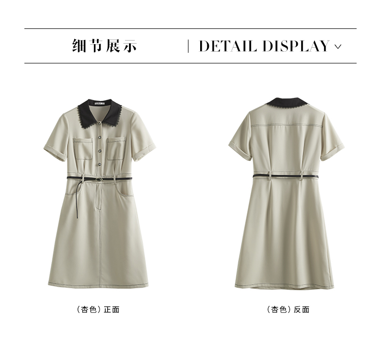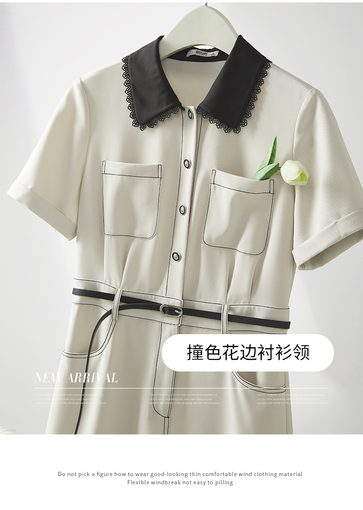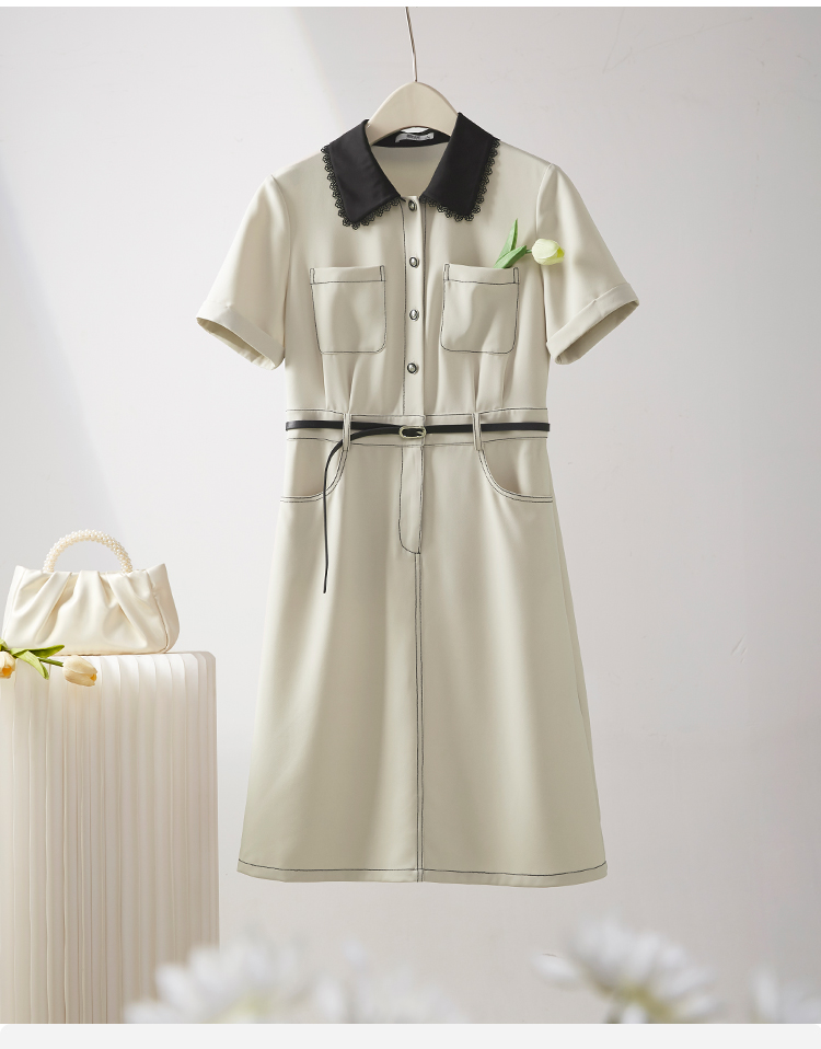 【专属特价】熙世界2025夏新款复古休闲工装小香风撞色花边衬衫领连衣裙子女