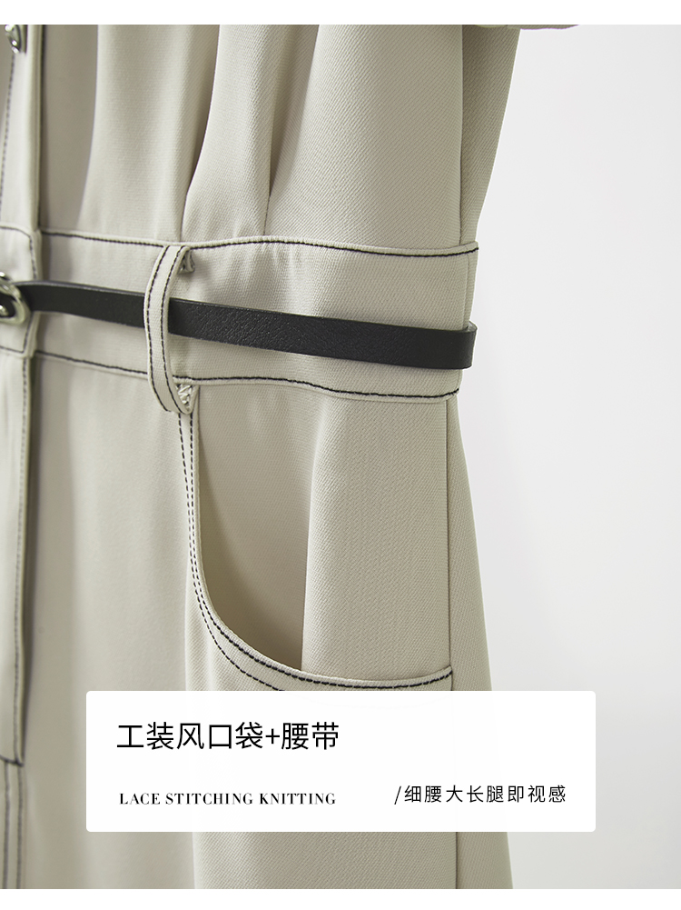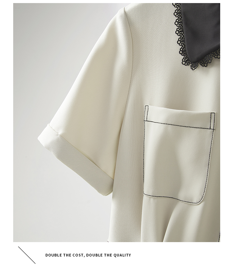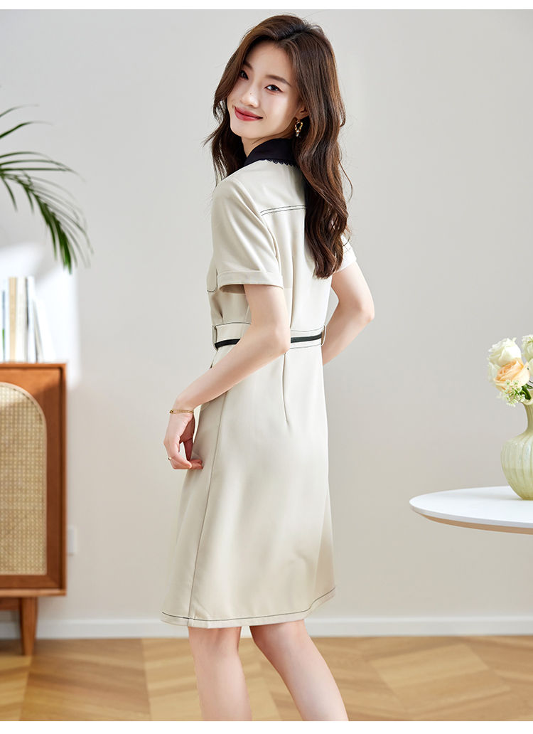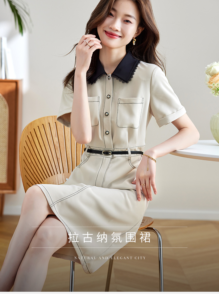 【专属特价】熙世界2025夏新款复古休闲工装小香风撞色花边衬衫领连衣裙子女