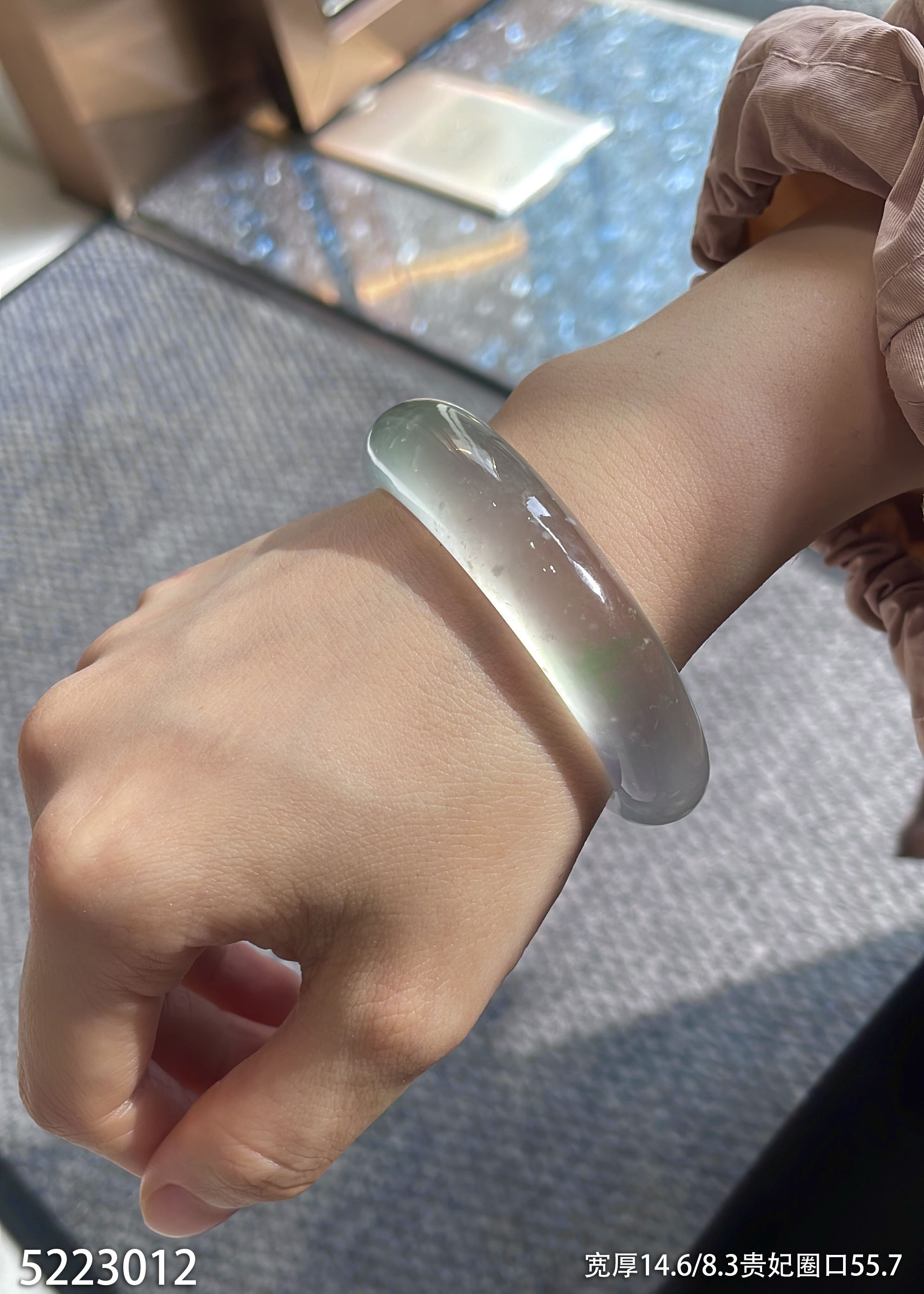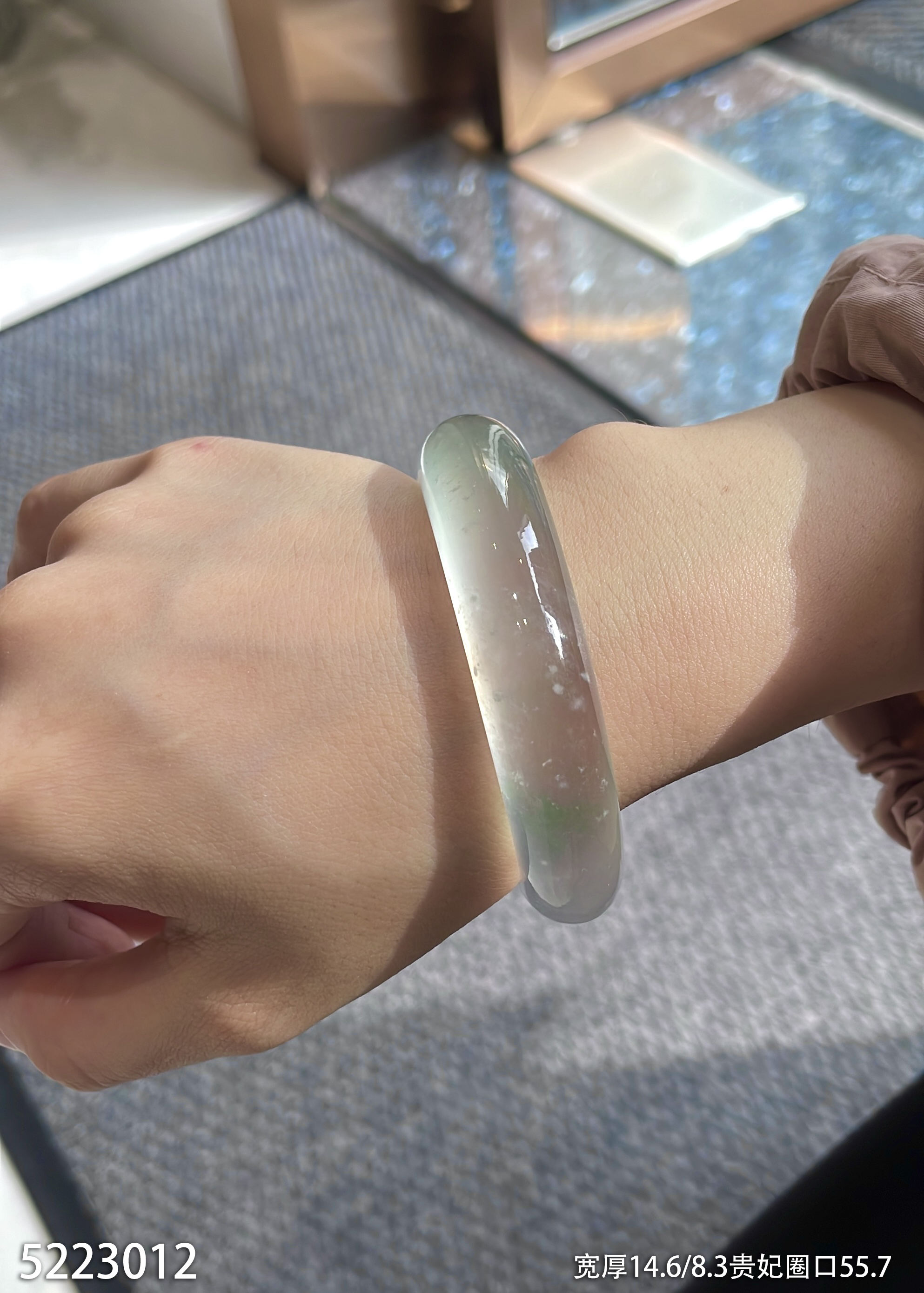 玻璃种飘翠贵妃镯【5223012】贵妃圈口55.7~具体价格微信咨询