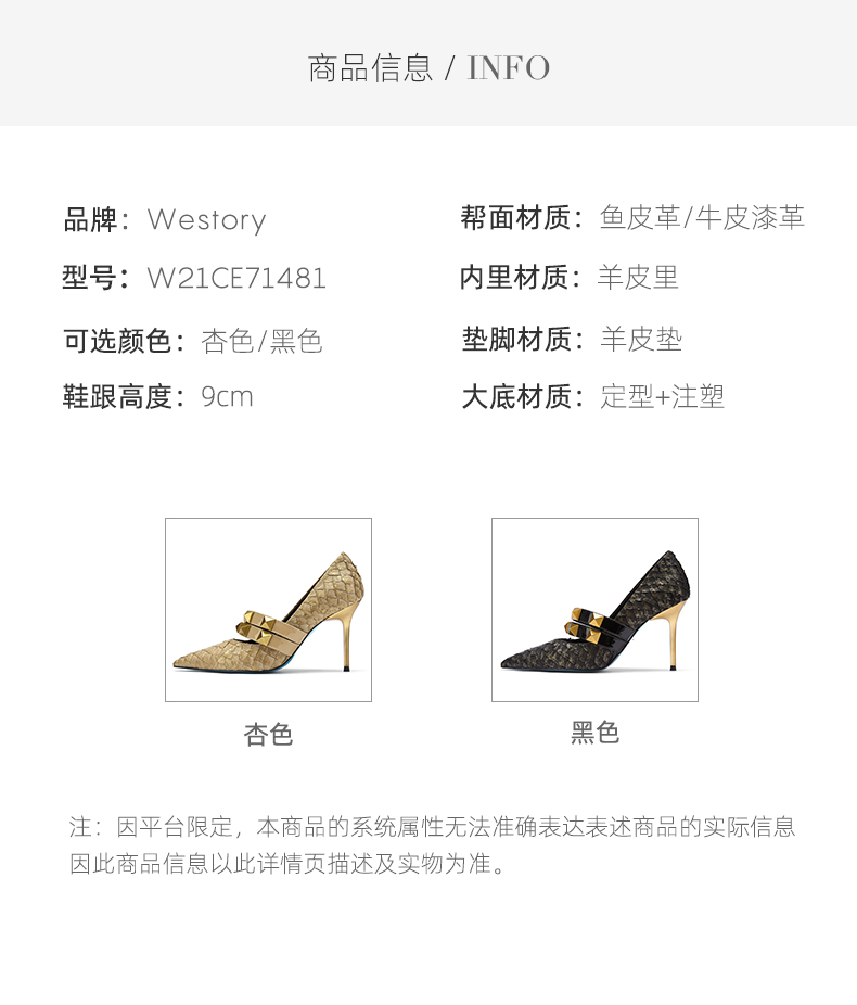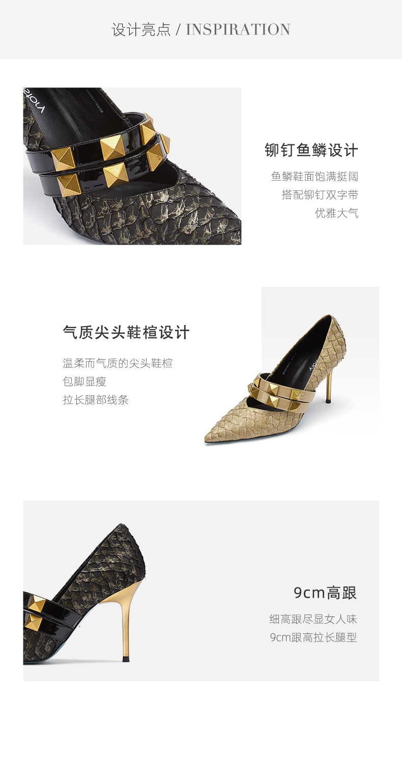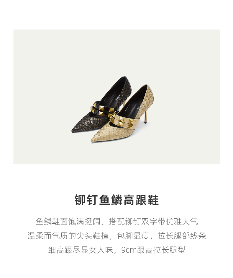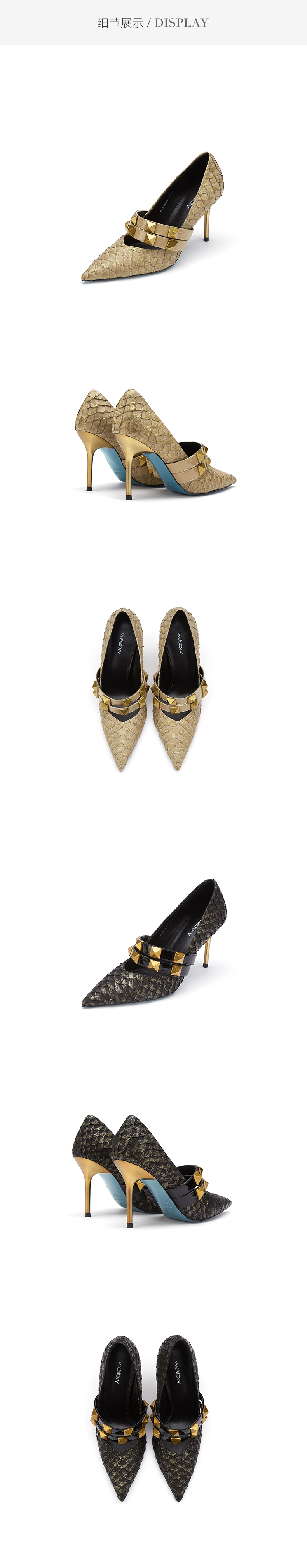 westory2021秋季新品气质铆钉鱼鳞尖头细跟高跟鞋W21CE71481
