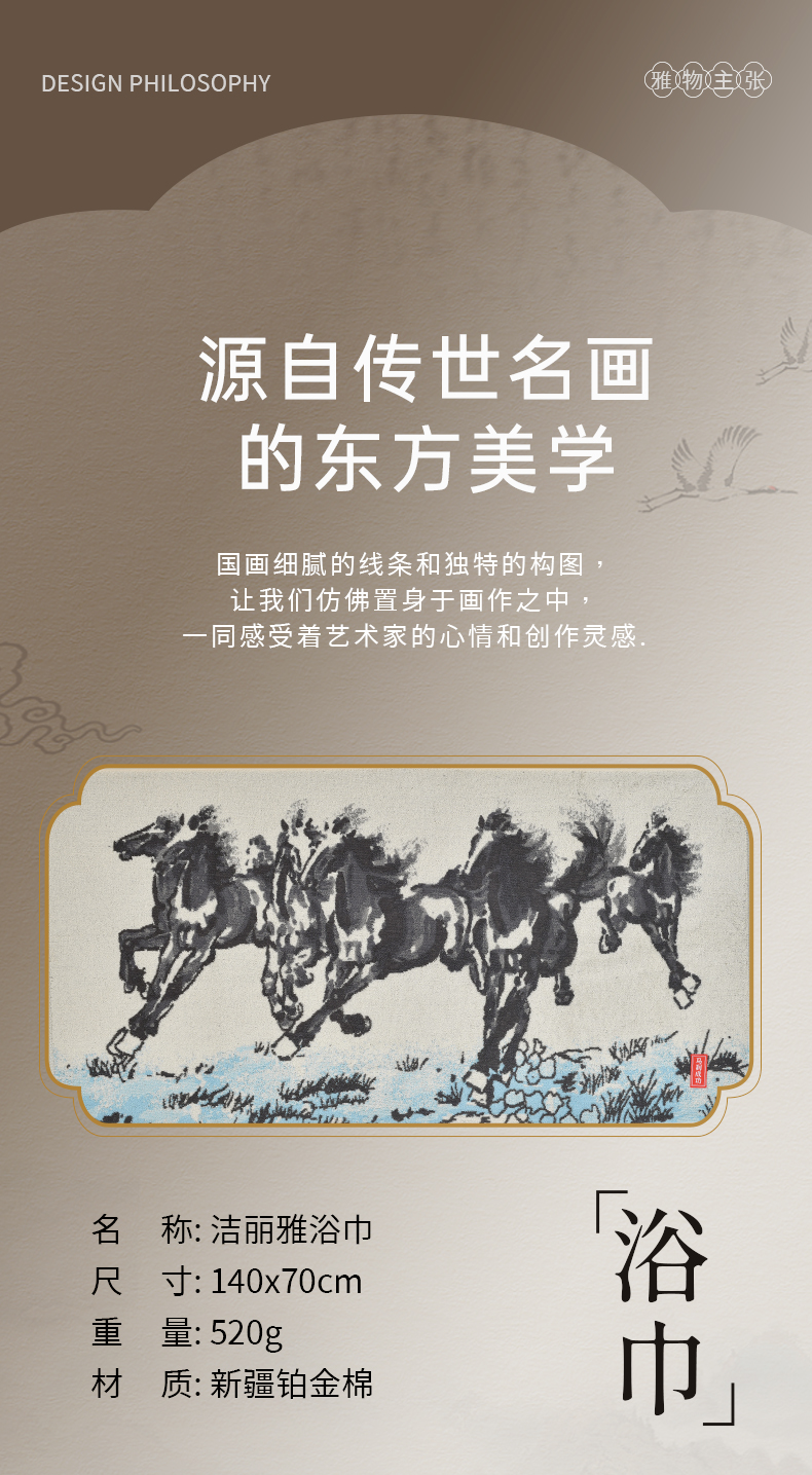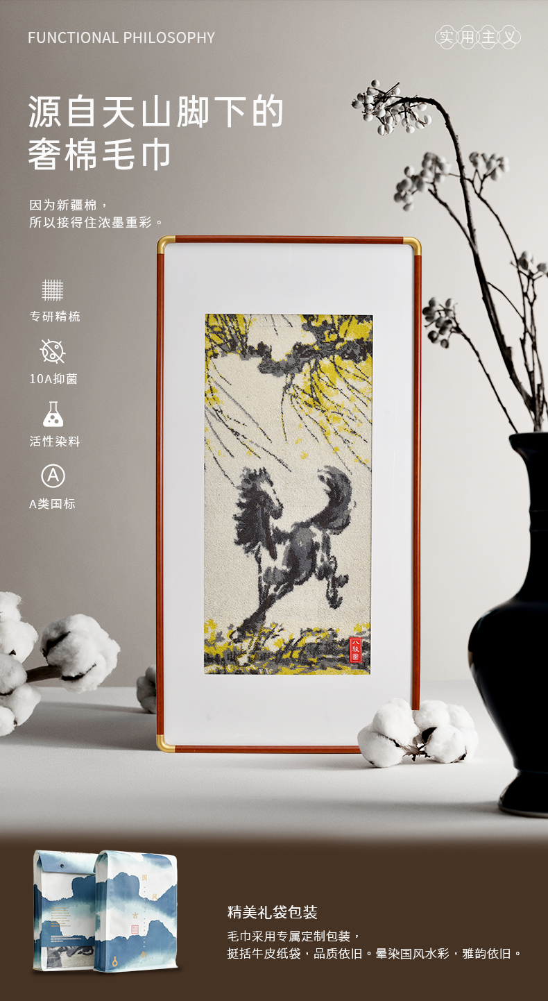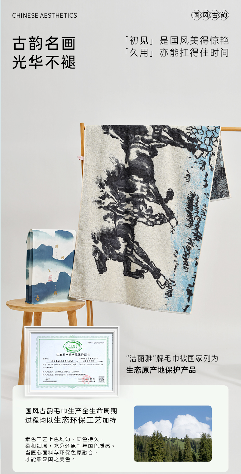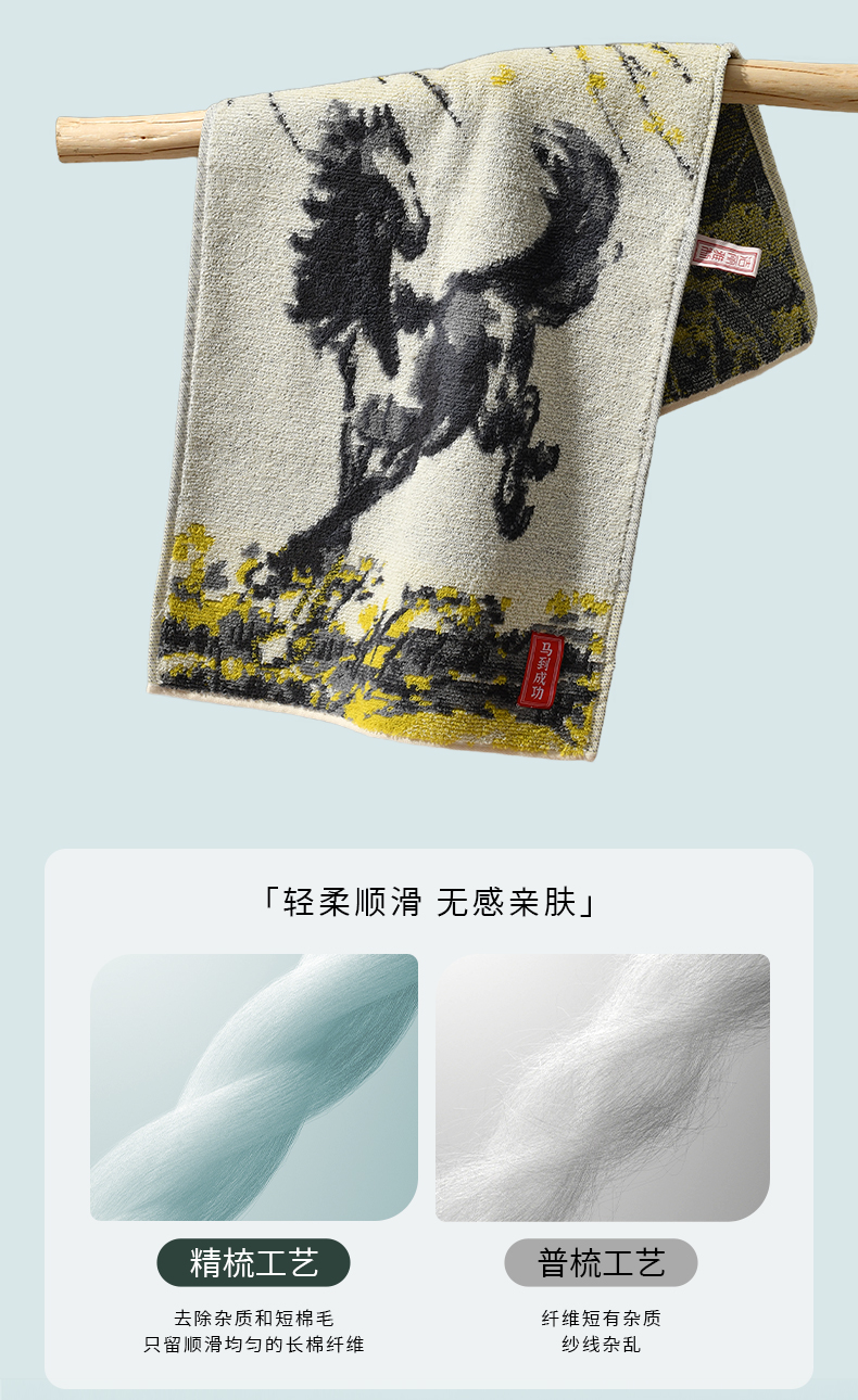 洁丽雅国风古韵马到成功纯棉毛巾浴巾2025男女家用洗脸厚面巾吸水
