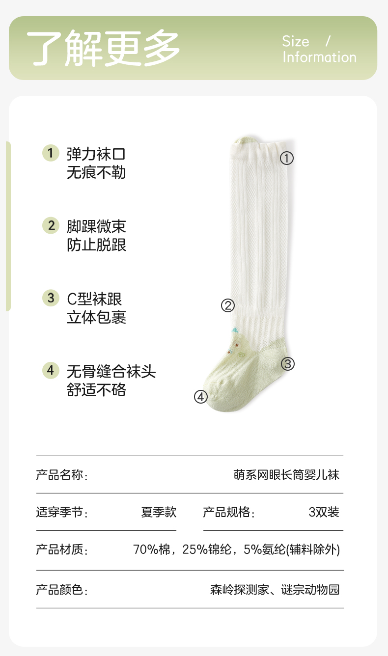【满200减100】宝宝夏季薄款网眼过膝不勒腿长筒防蚊袜