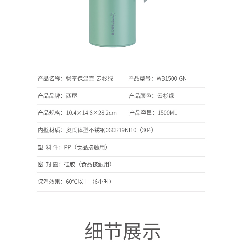 【分仓直发包邮】西屋畅享保温壶-云杉绿WB1500-GN
