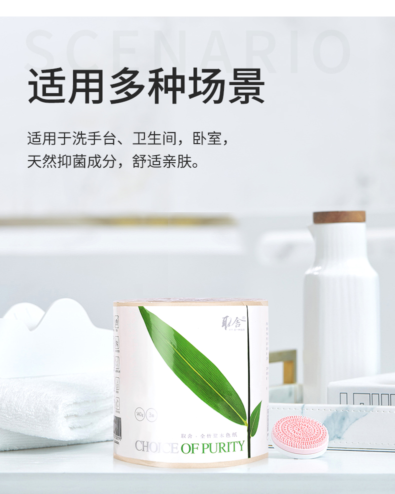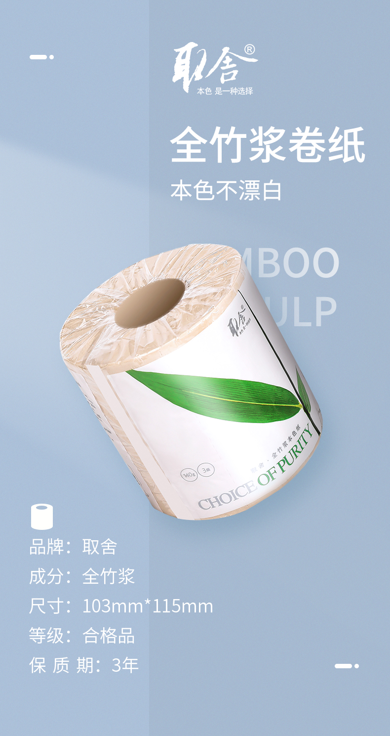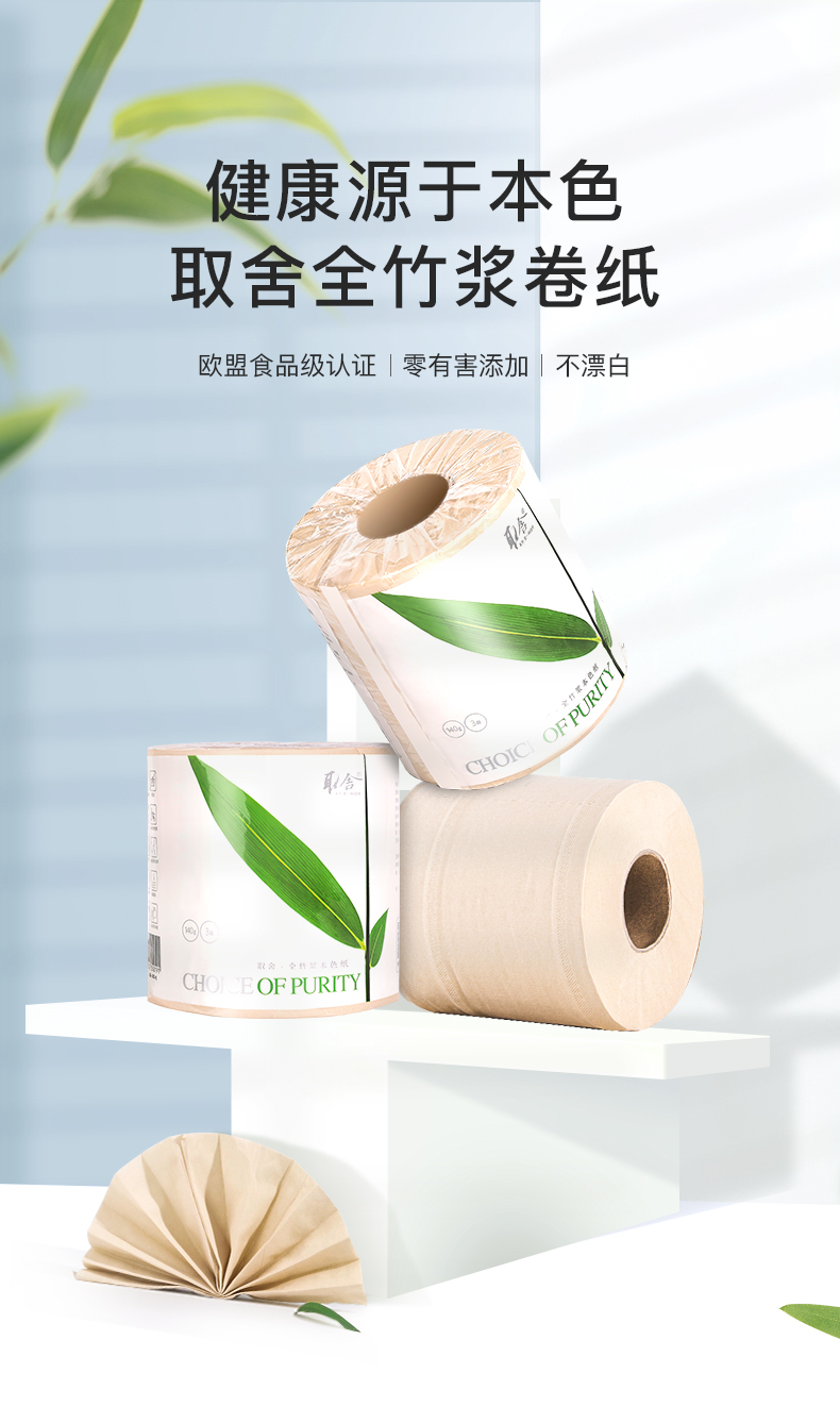 【臻实惠】取舍 本色卷纸婴儿纸巾不漂白竹纤维环保竹浆卫生纸3层140g*24卷