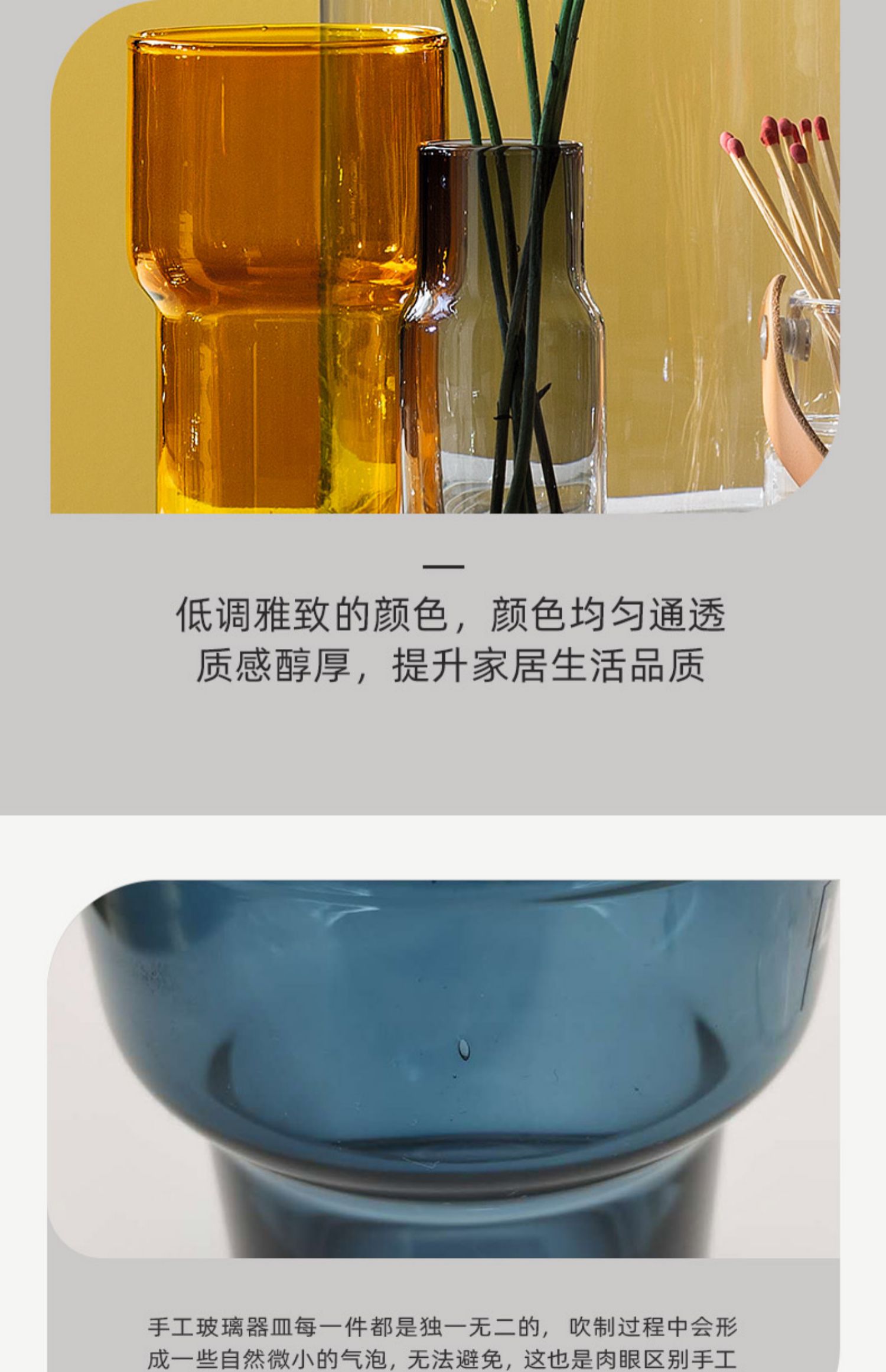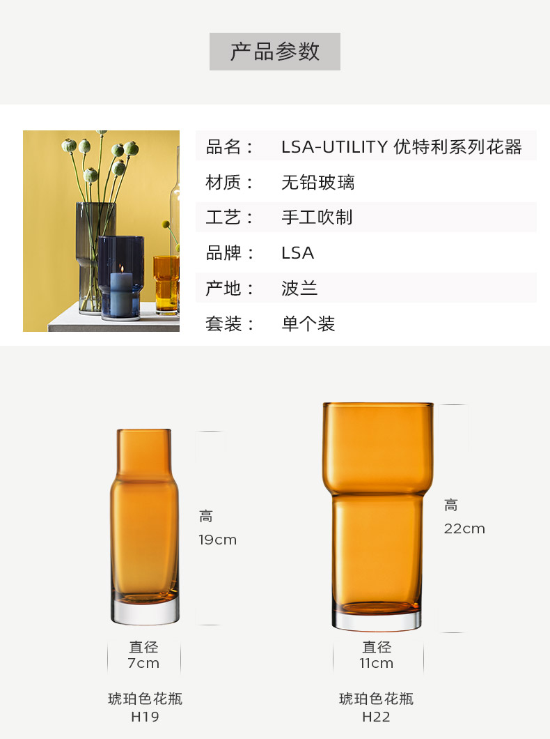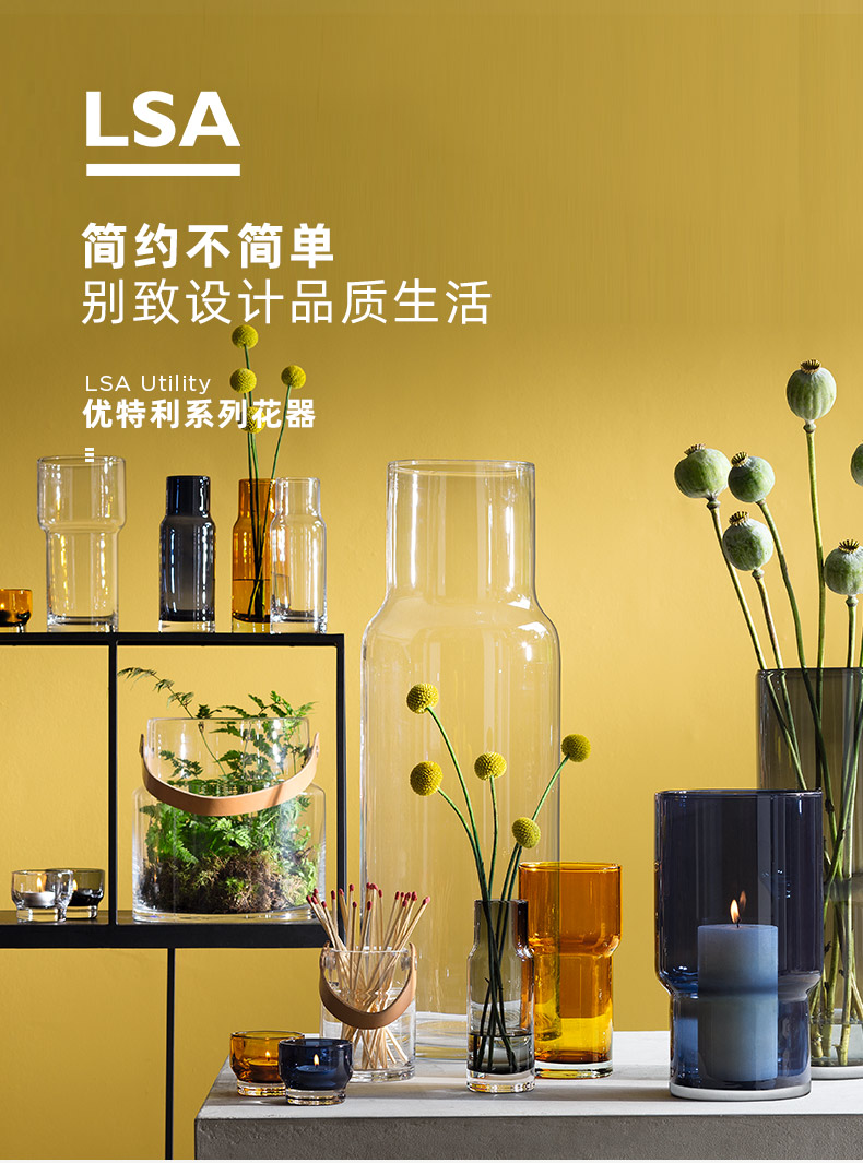 LSA Utility手工玻璃花瓶家用水培植物花瓶 创意大号透明简约插花花瓶