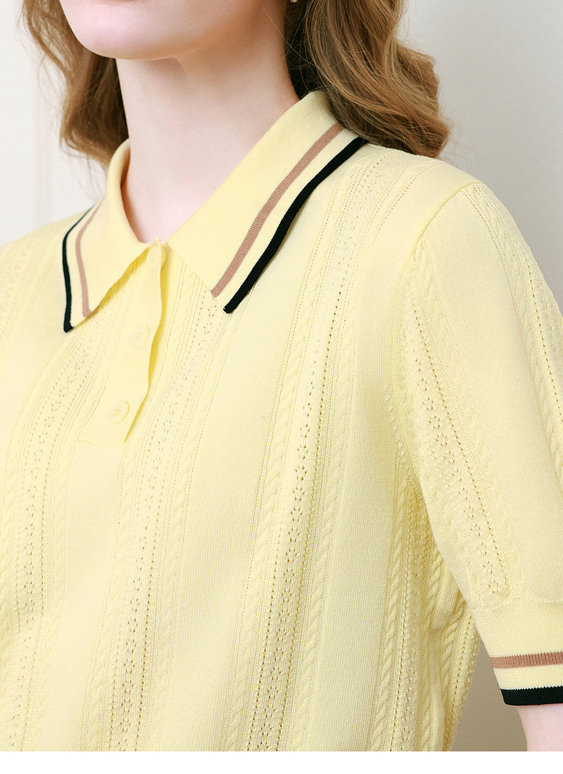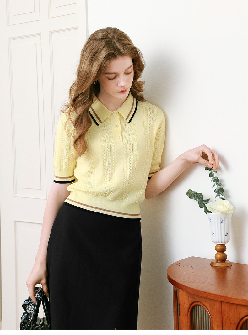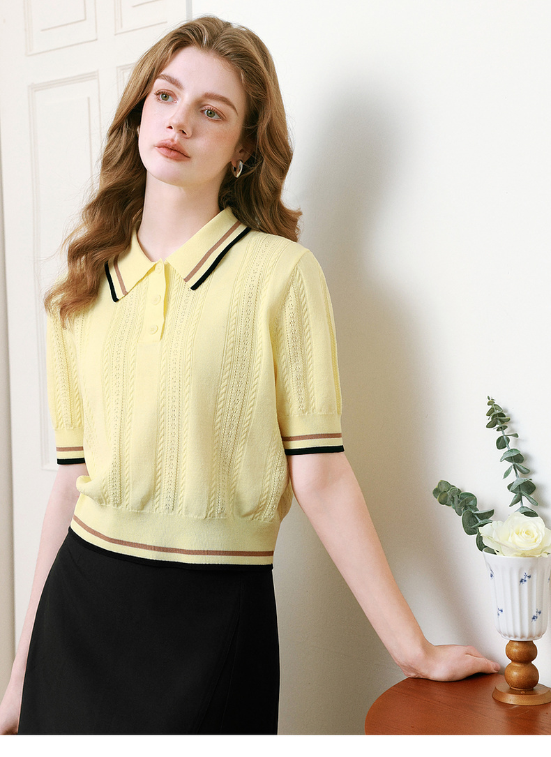 【商场同款】诗凡黎polo领撞色针织衫2025夏新款上衣女3G4130741