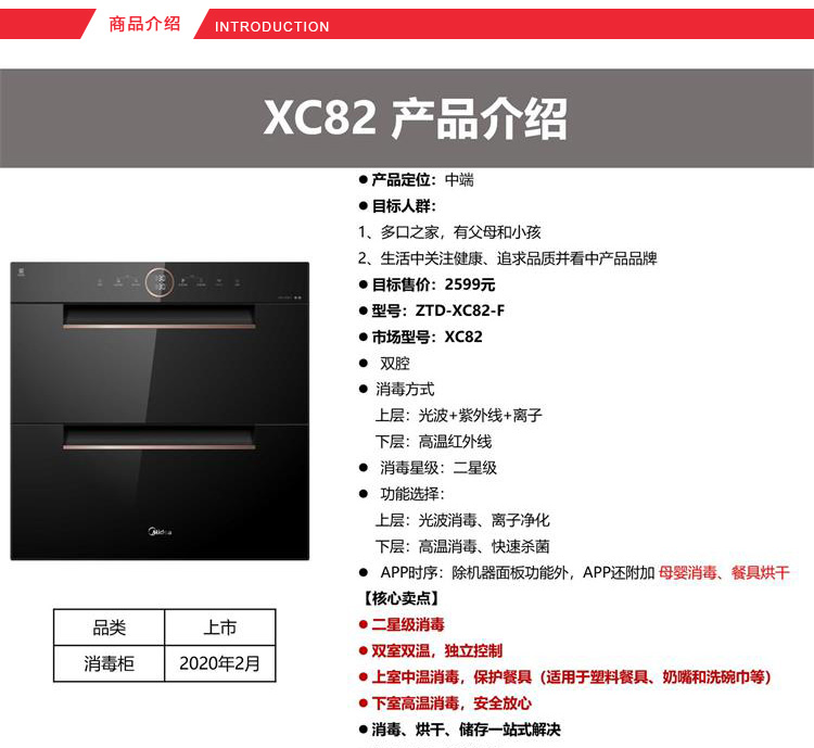 美的(Midea) ZTD-XC82-F 消毒柜 嵌入式 玻璃