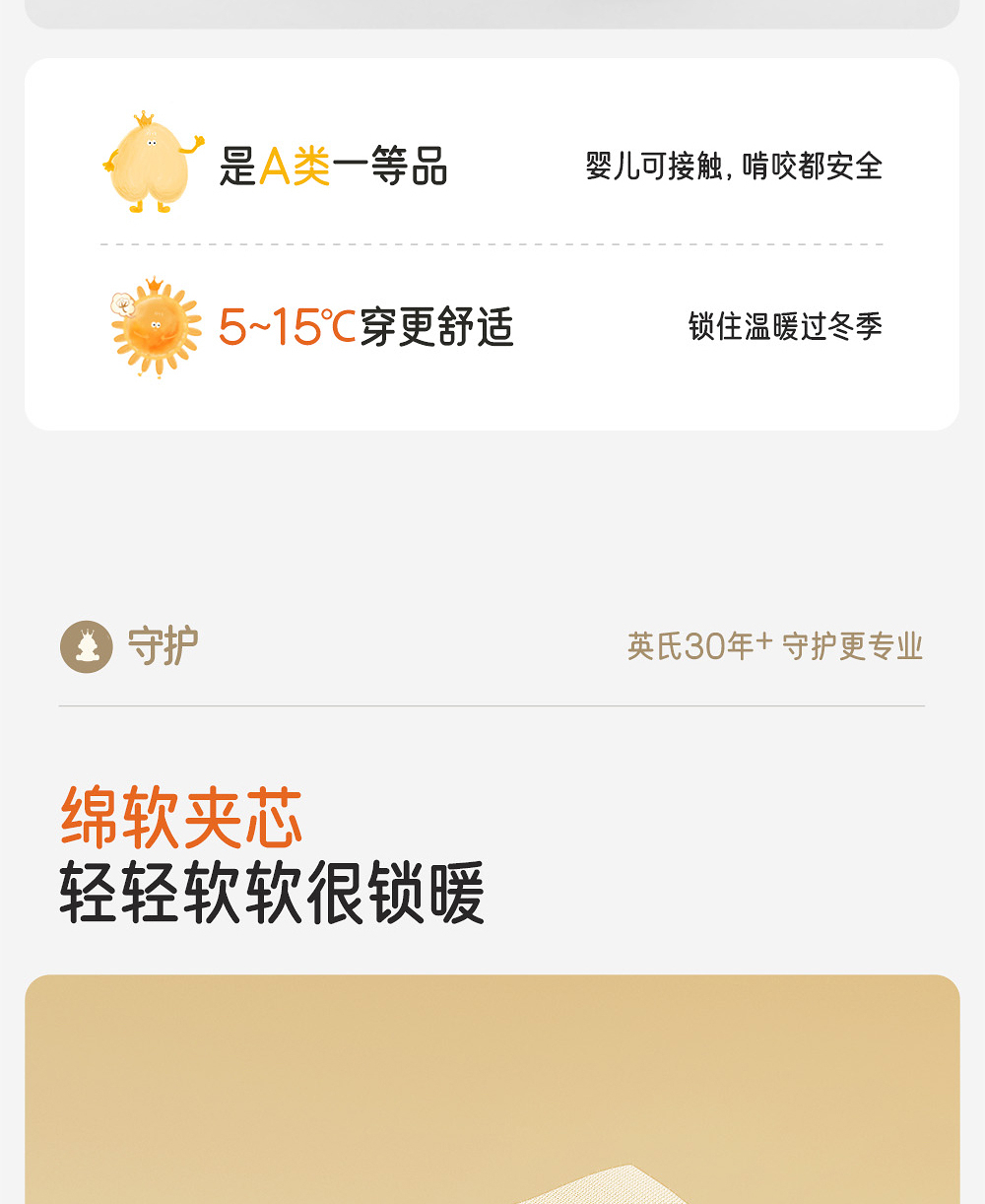 英氏婴儿哈衣连帽A类夹棉连体衣爬服冬季保暖新款YRHFJ4R038A