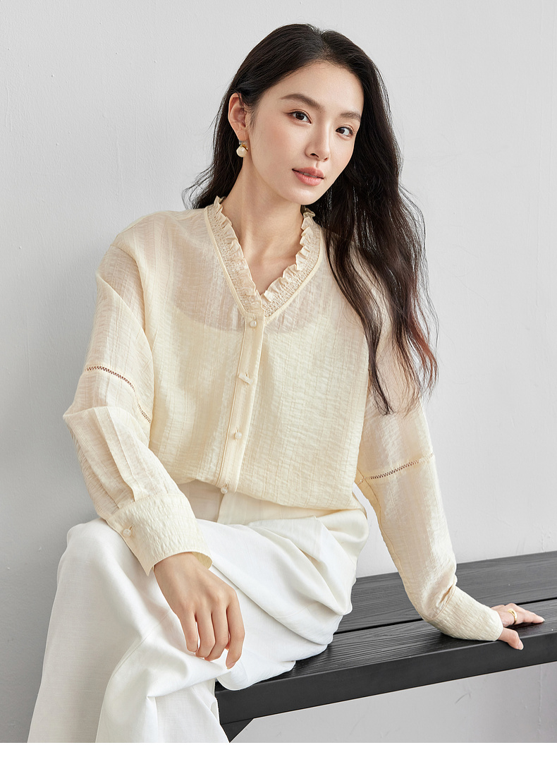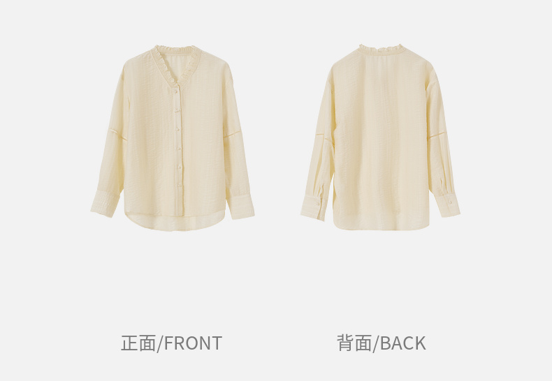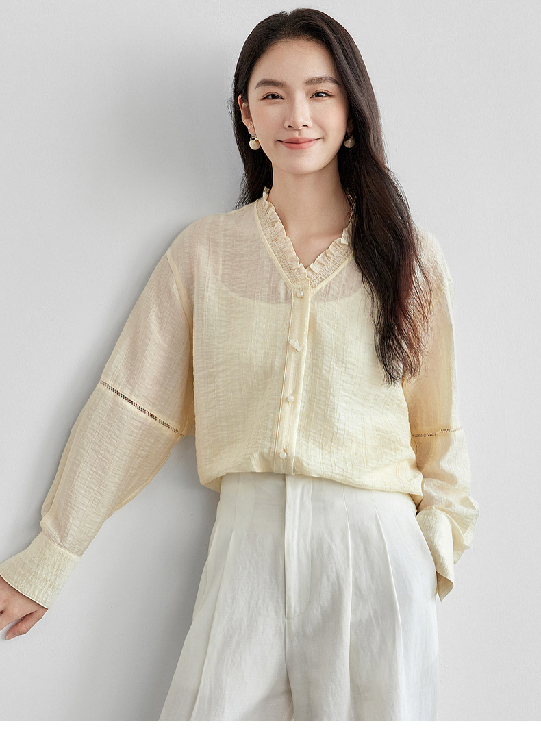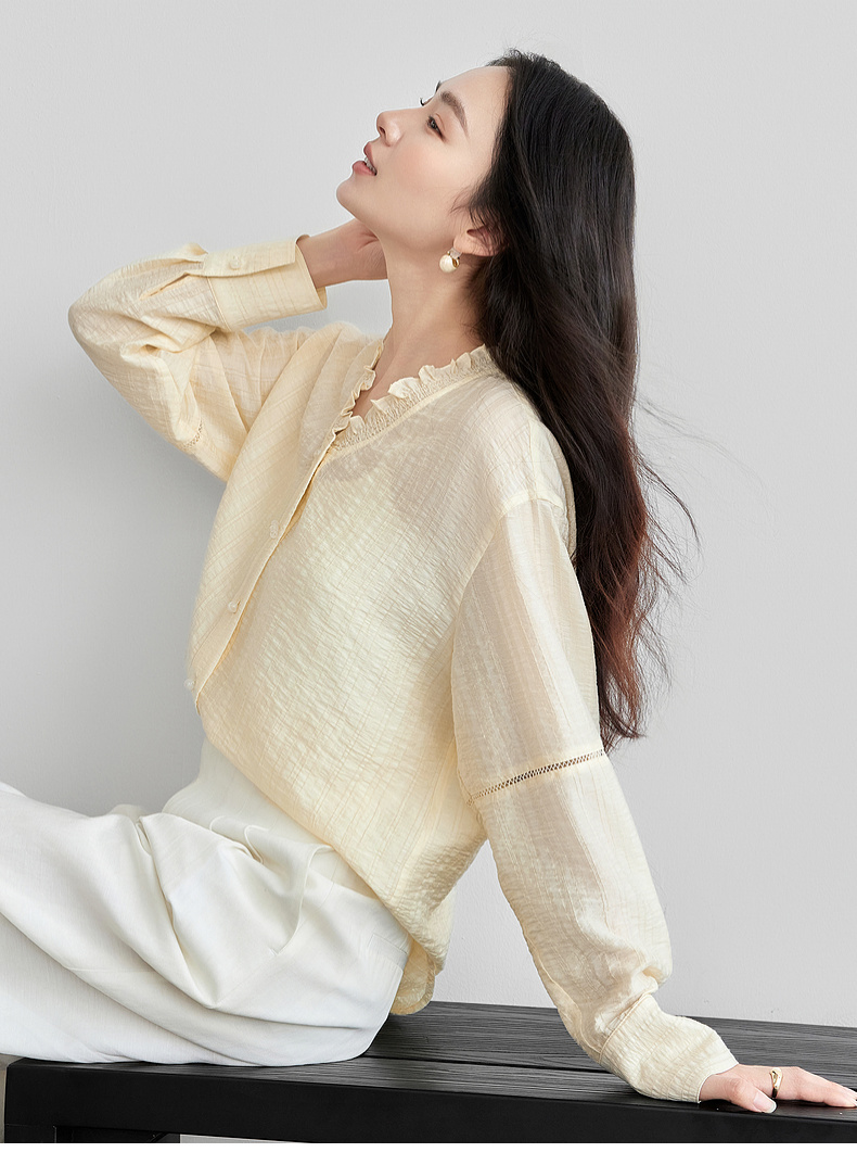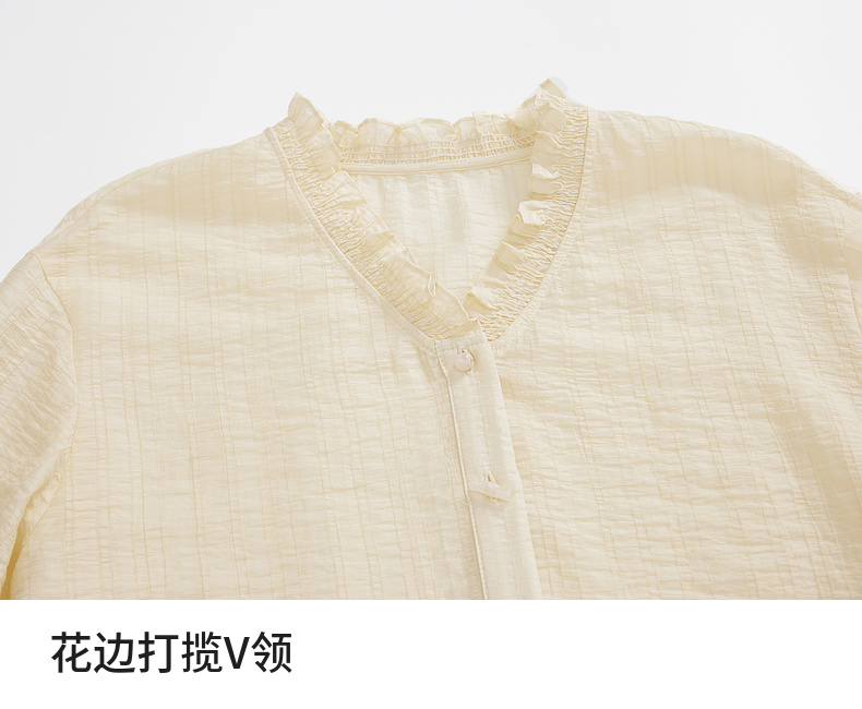 【内购】轻新中式新款新中式花边木耳领莱赛尔会呼吸轻量顺滑衬衫-151C57678