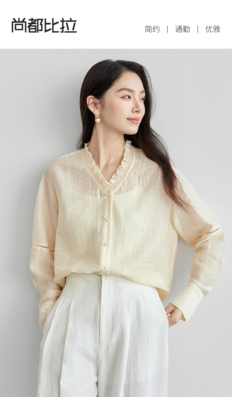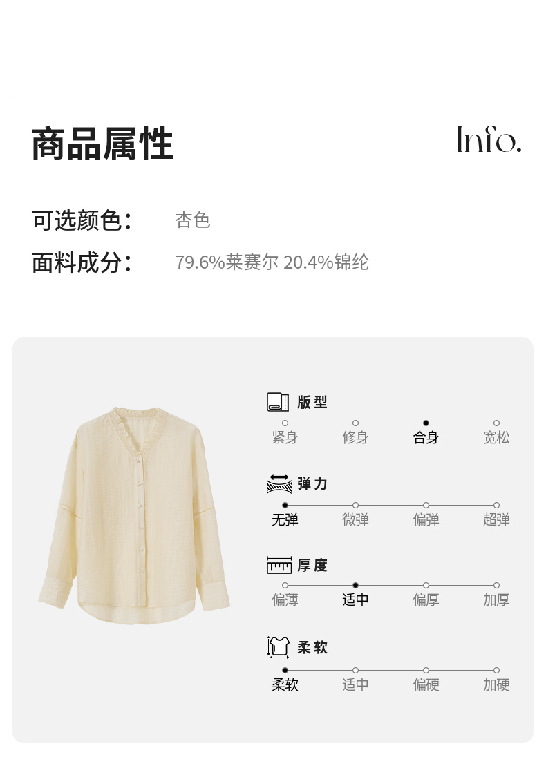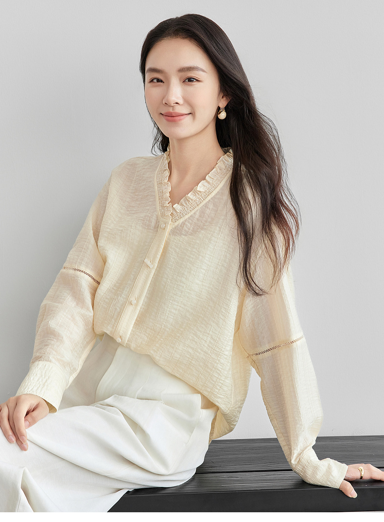 【内购】轻新中式新款新中式花边木耳领莱赛尔会呼吸轻量顺滑衬衫-151C57678