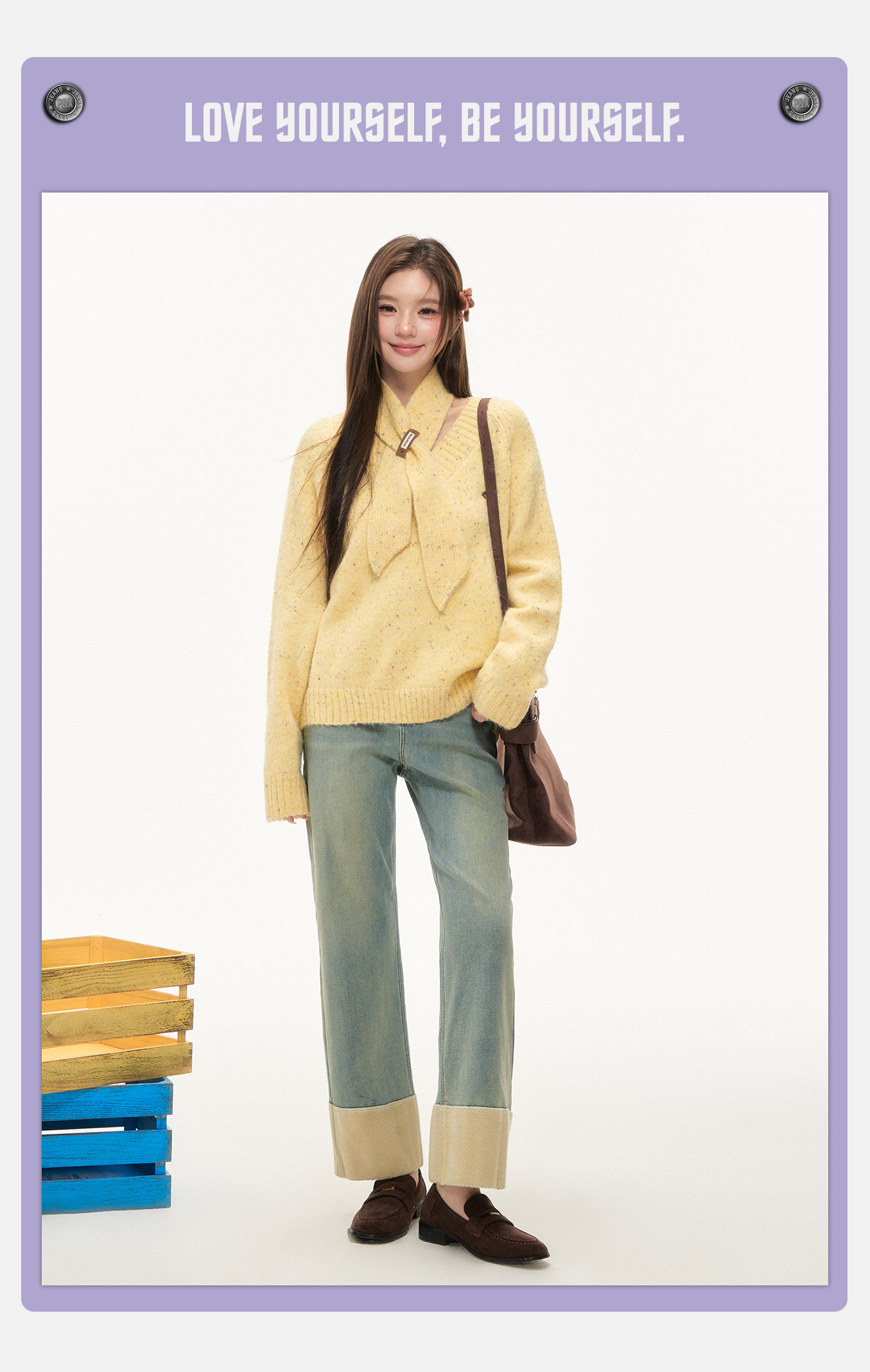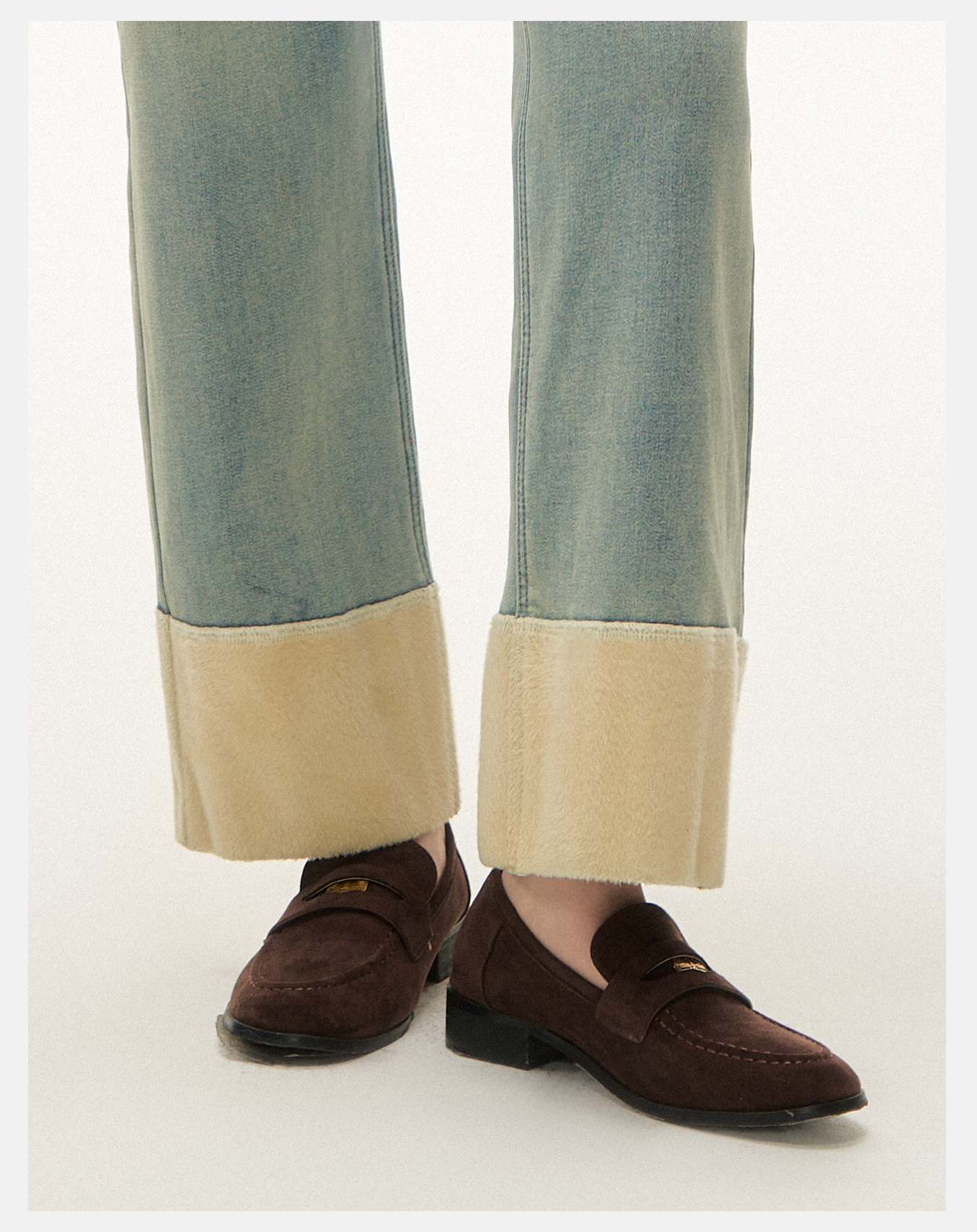 P&X设计师女装2025冬季复古裤子直筒牛仔长裤裤825410165 蓝色
