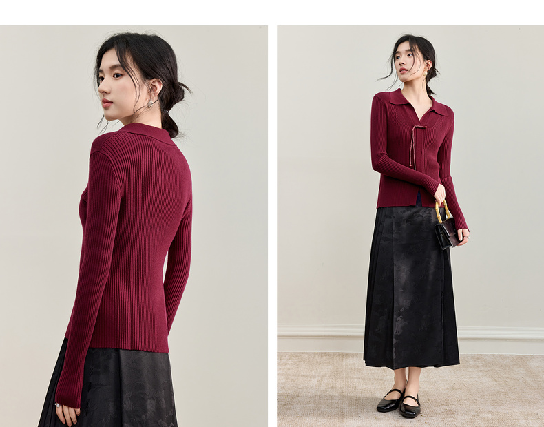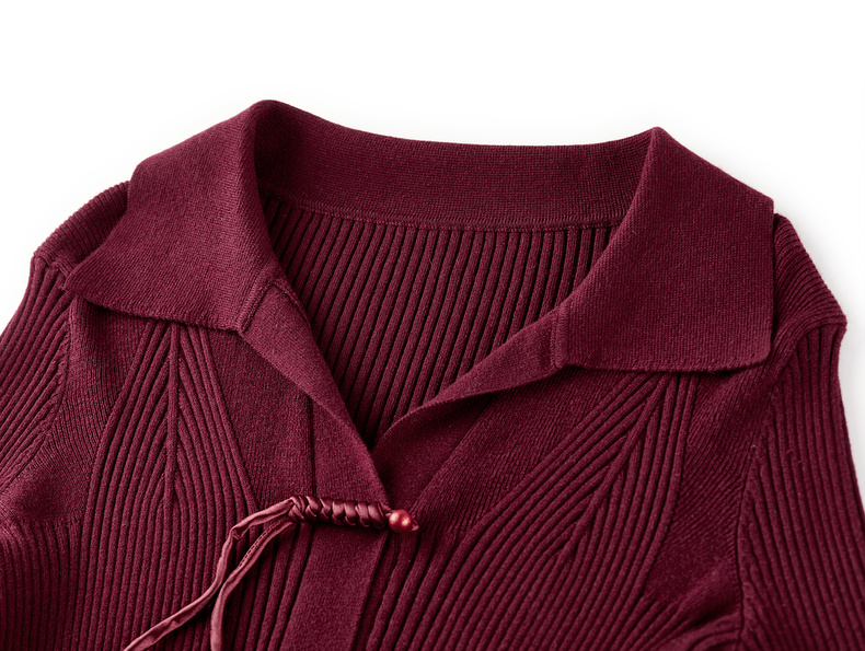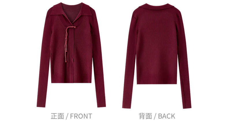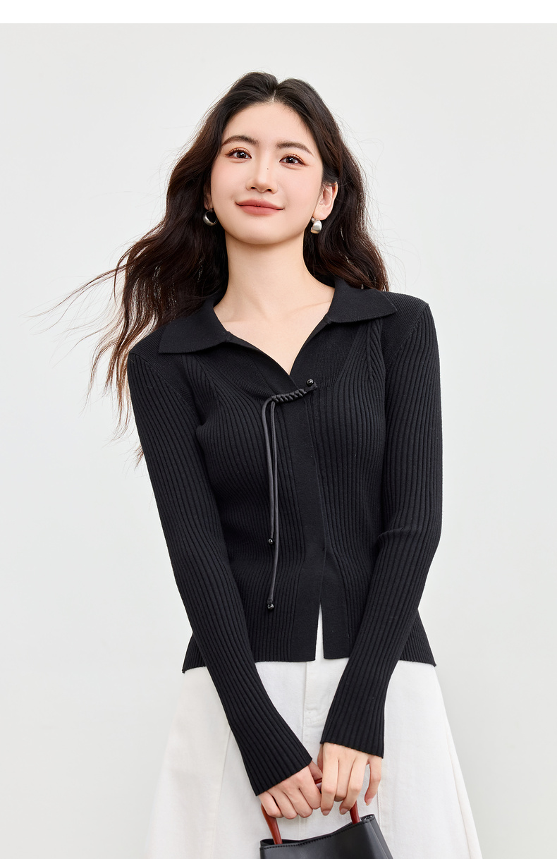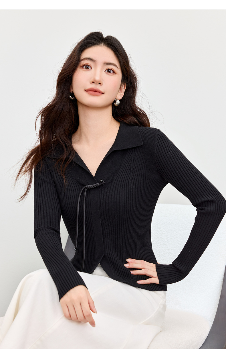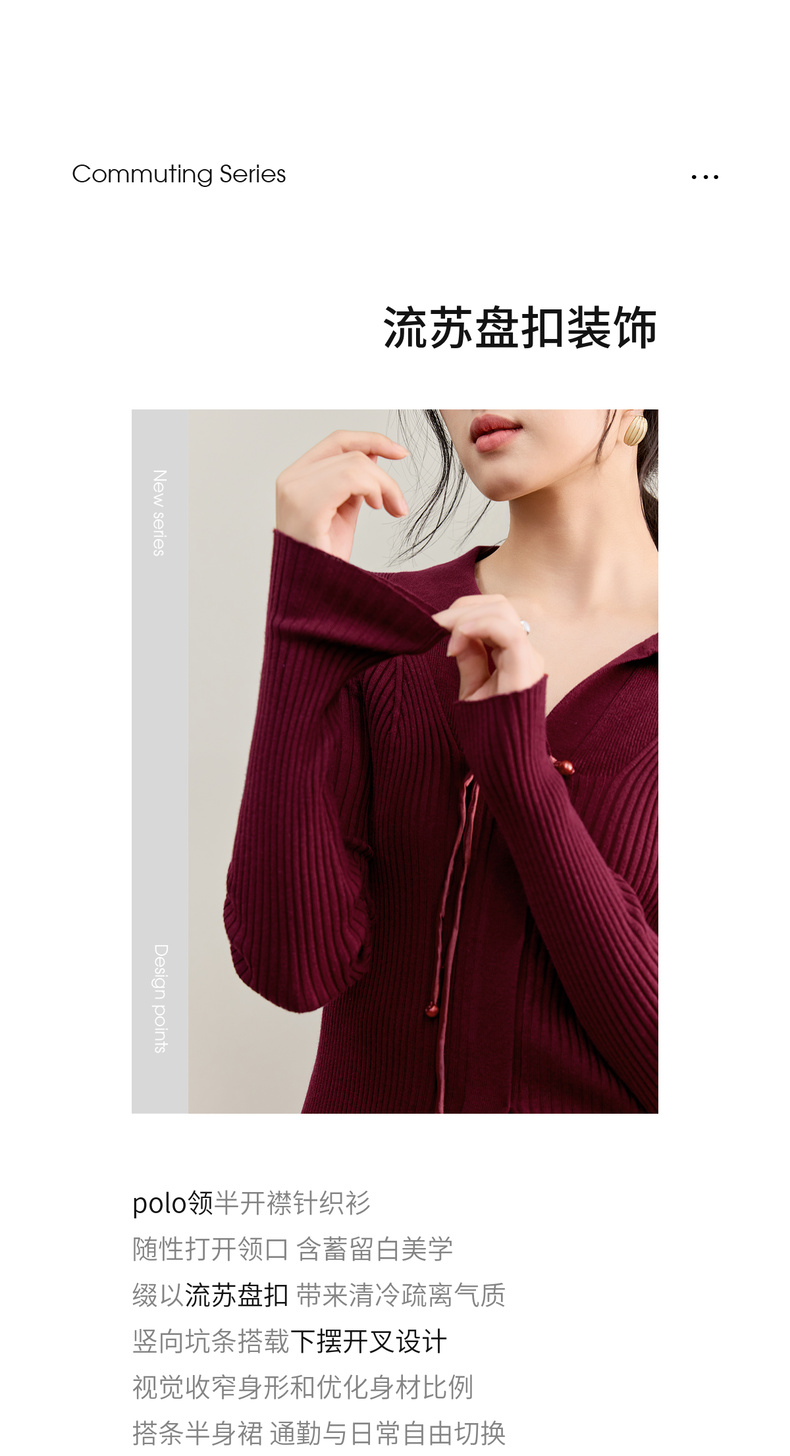 【内购】【云柔触感】通勤国风流苏盘扣polo领半开襟假门襟修身坑条针织衫-W53HL2356