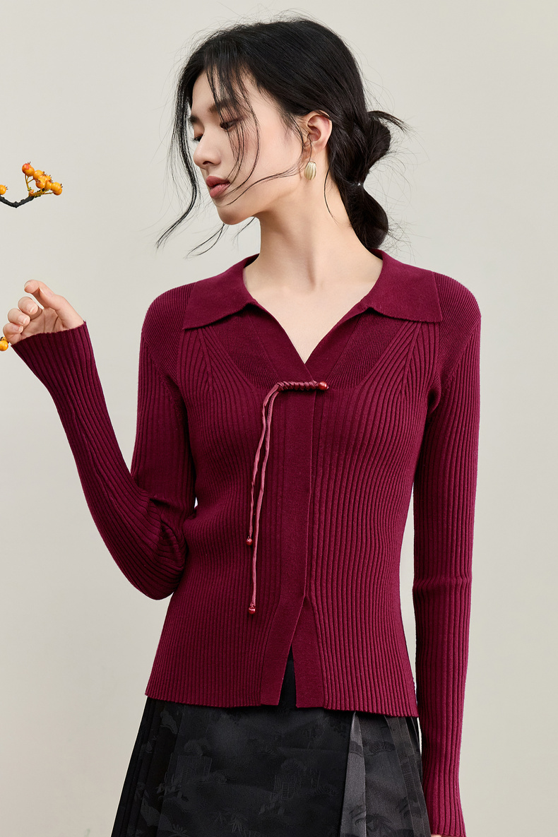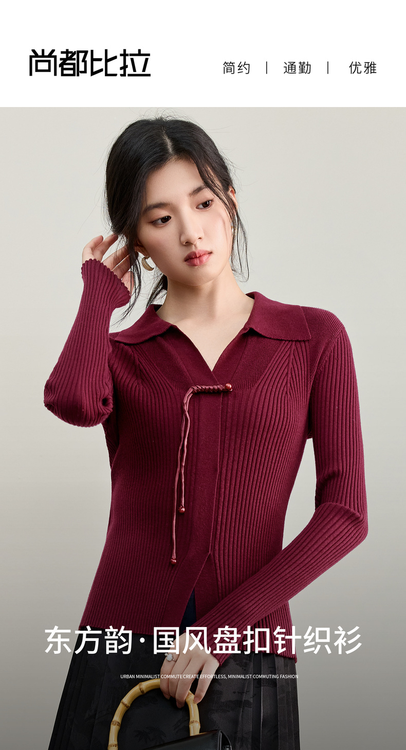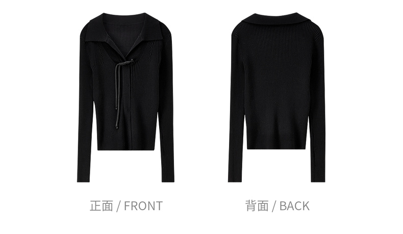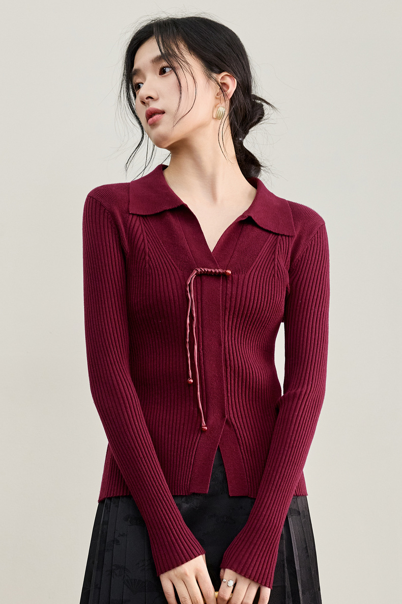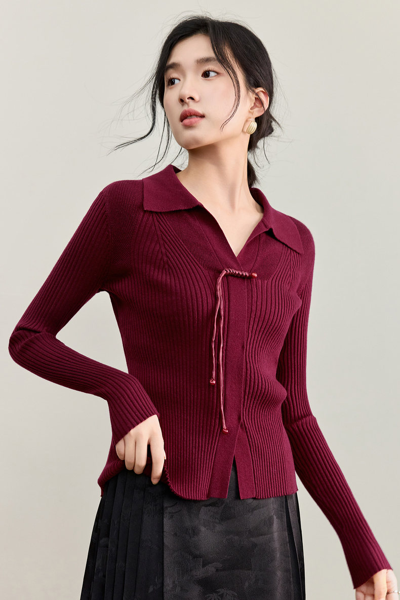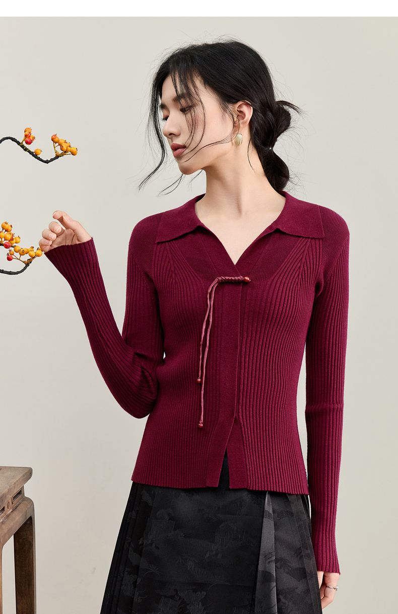 【内购】【云柔触感】通勤国风流苏盘扣polo领半开襟假门襟修身坑条针织衫-W53HL2356