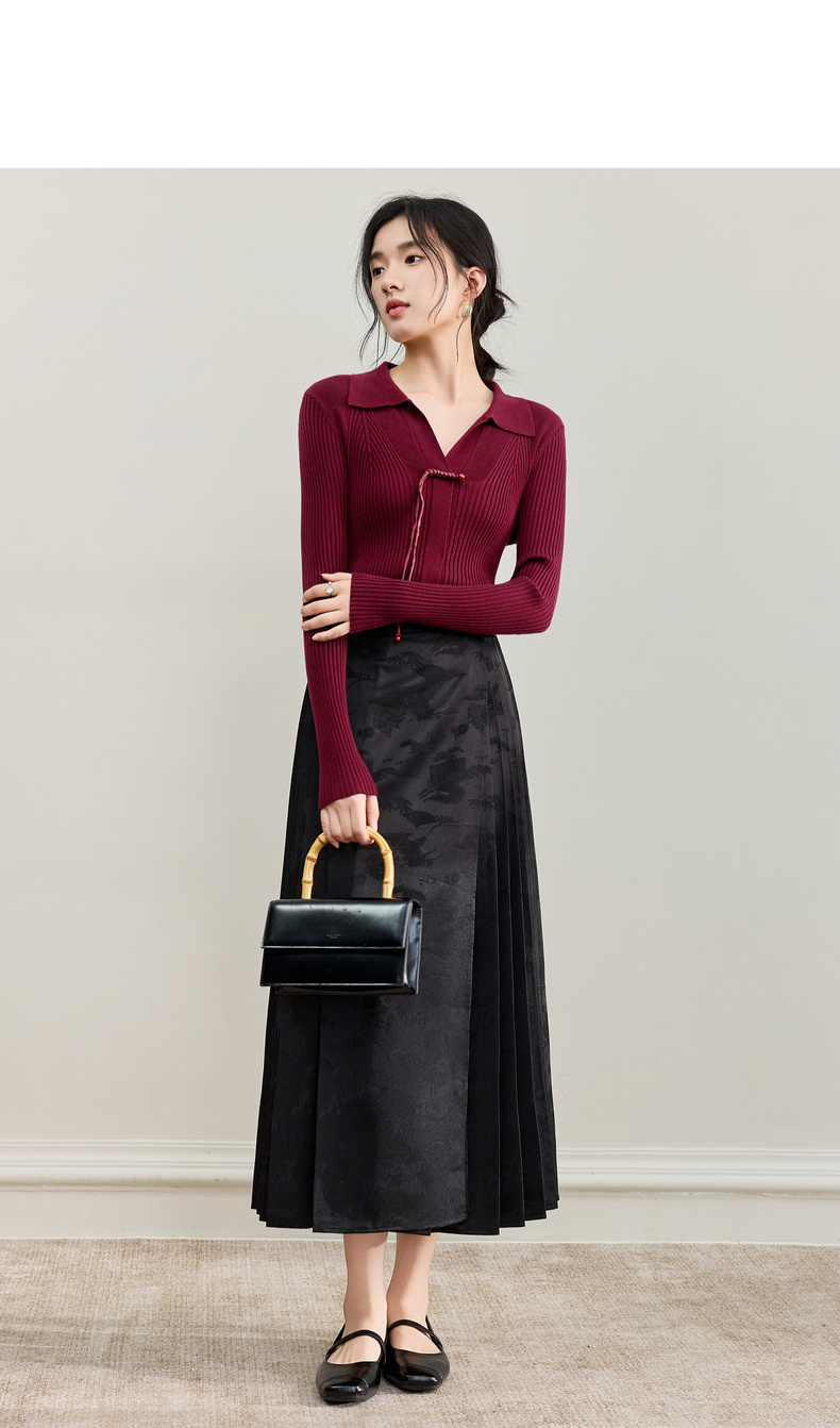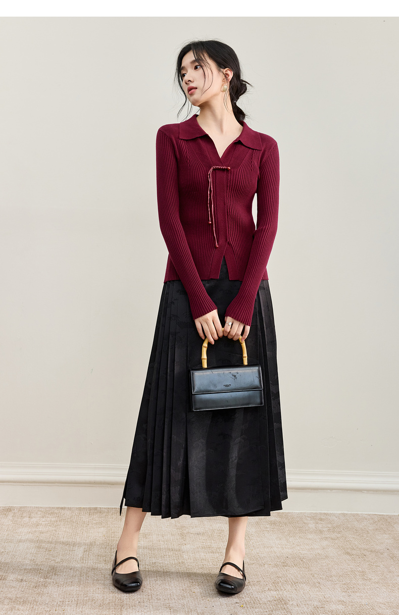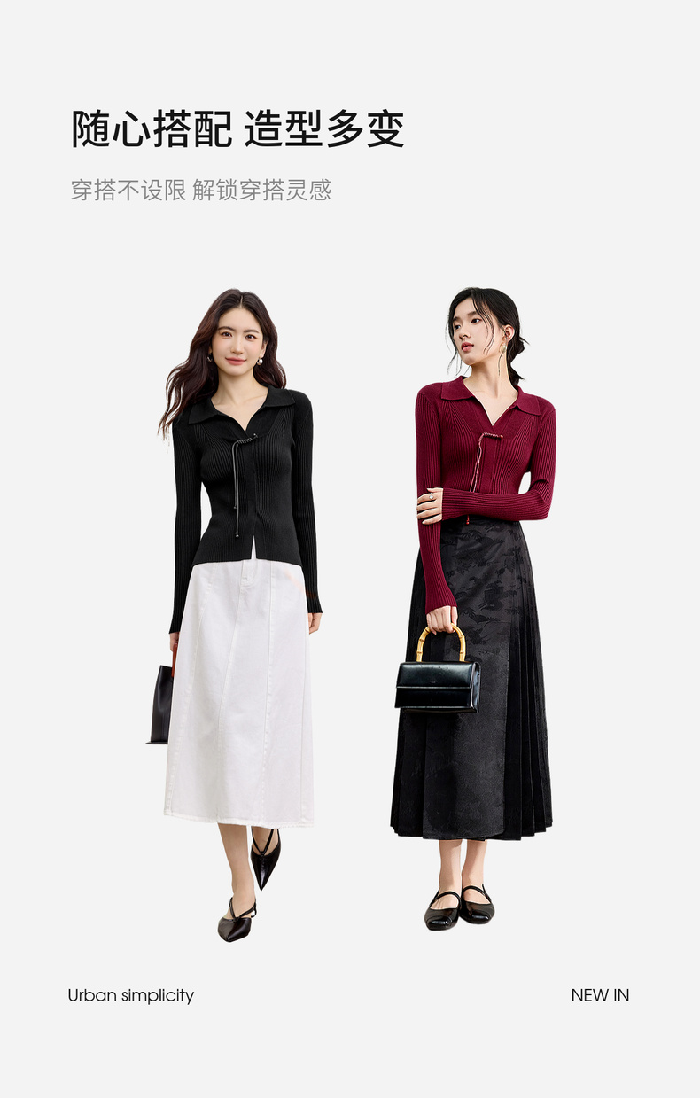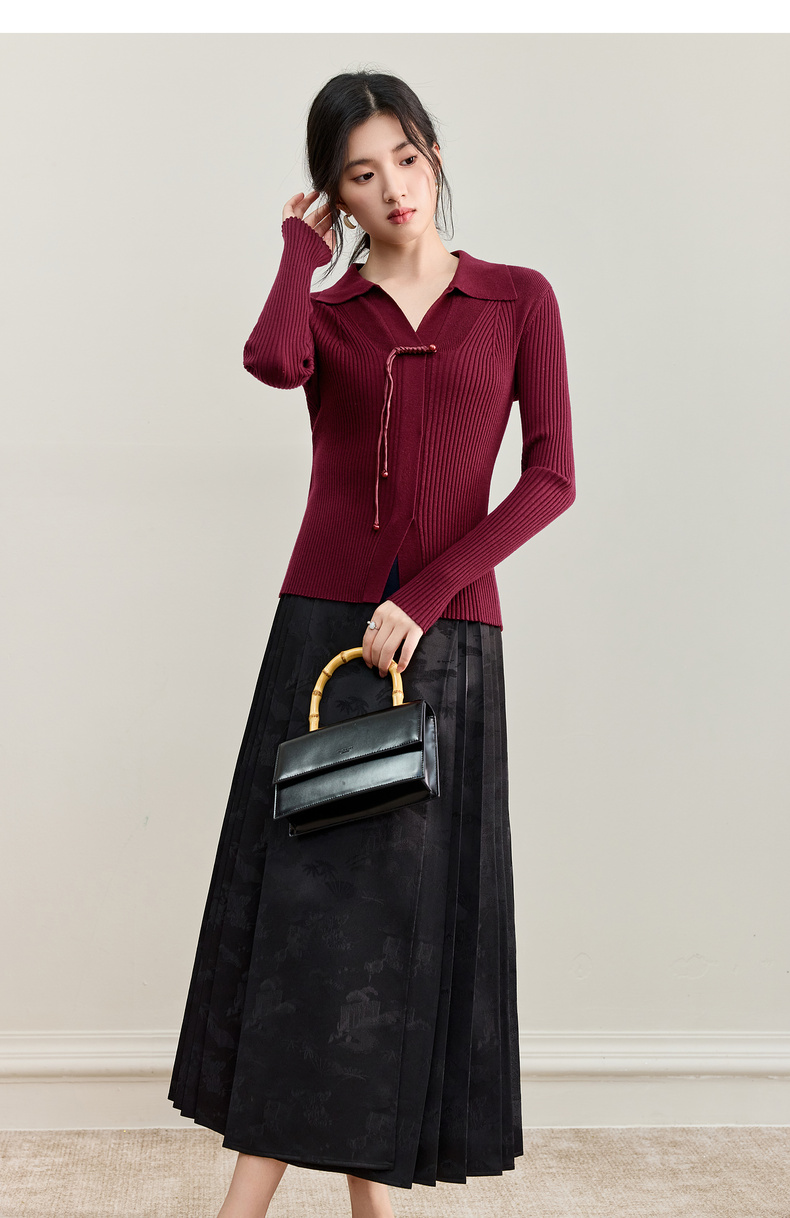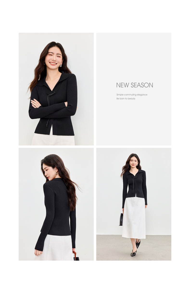 【内购】【云柔触感】通勤国风流苏盘扣polo领半开襟假门襟修身坑条针织衫-W53HL2356