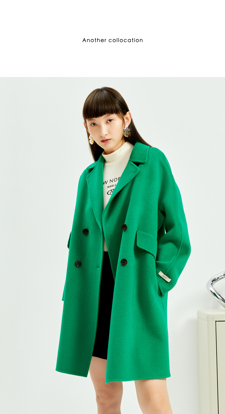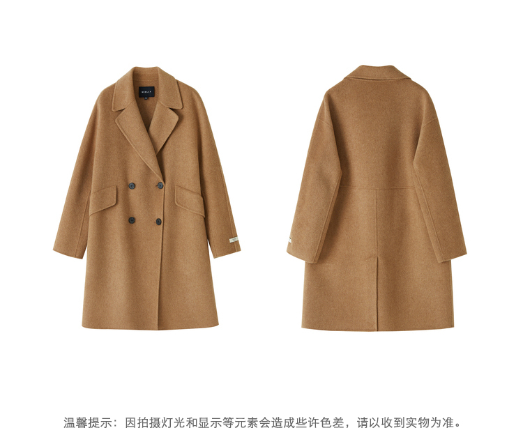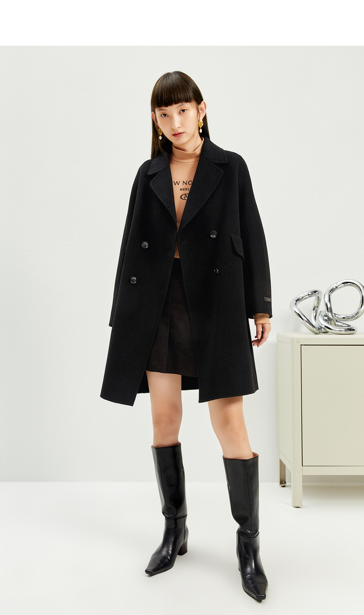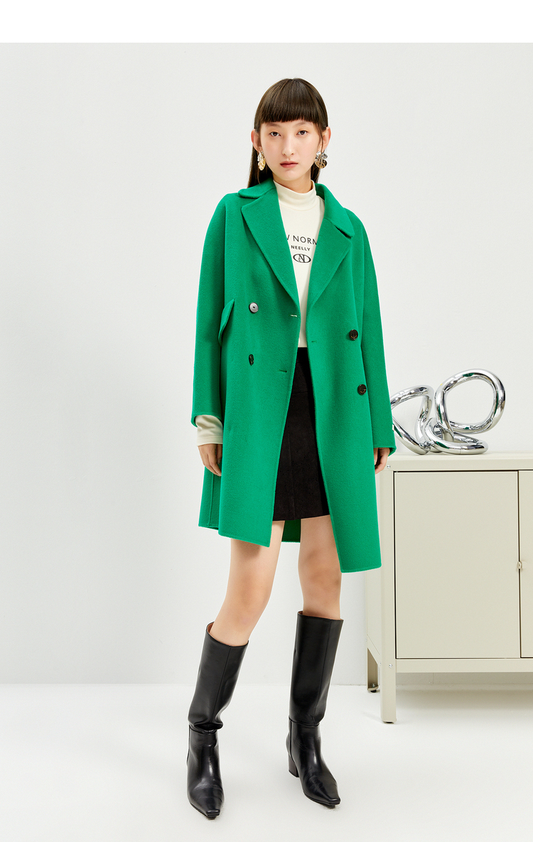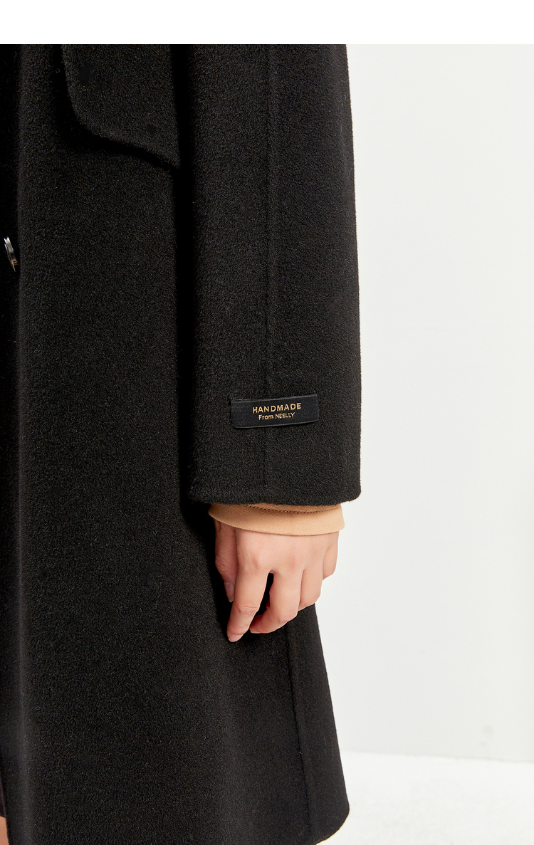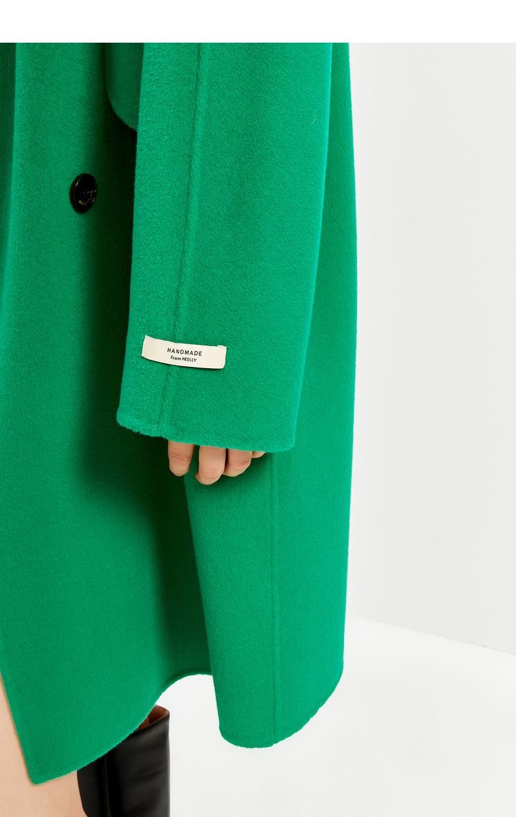 NEELLY纳俪商场同款外套女2021年新款双面呢大衣羊毛双排扣中长款