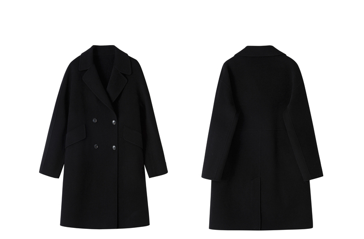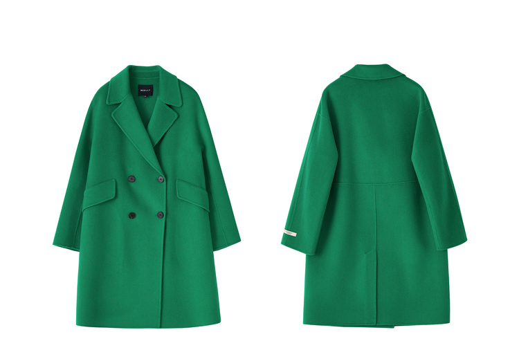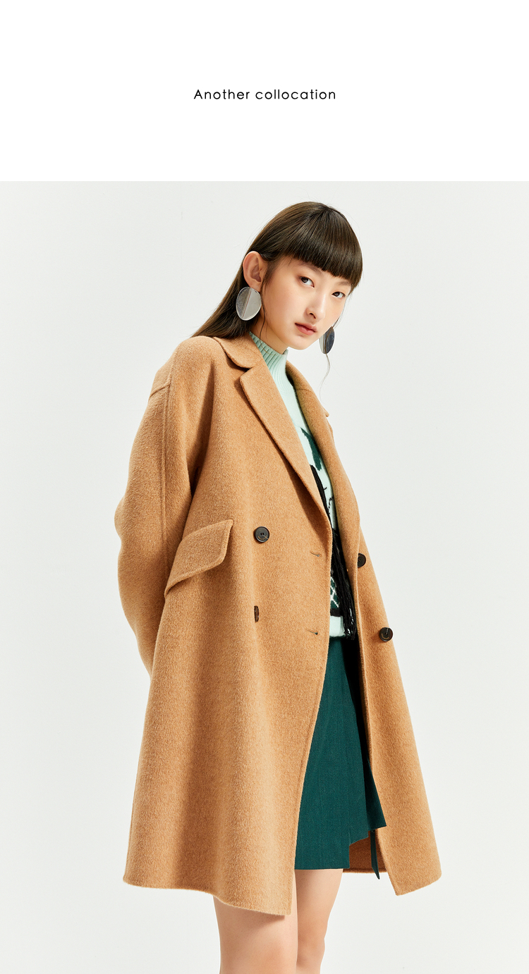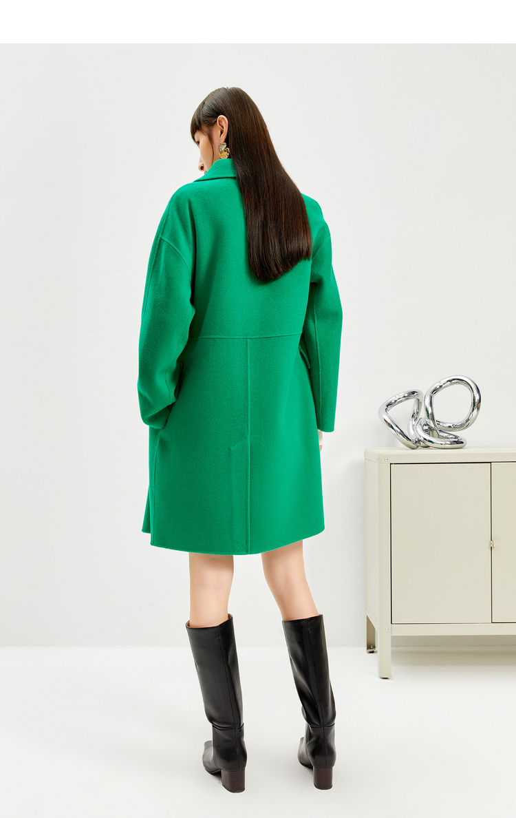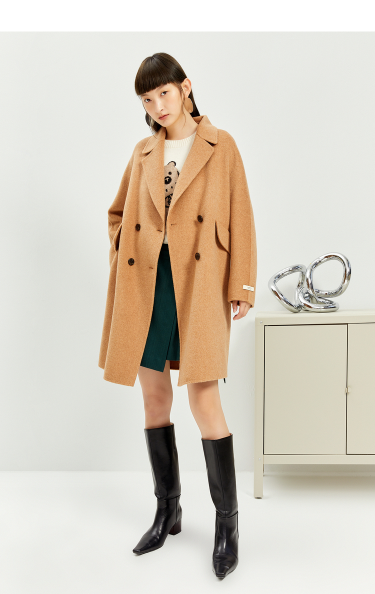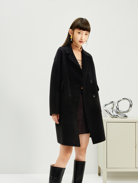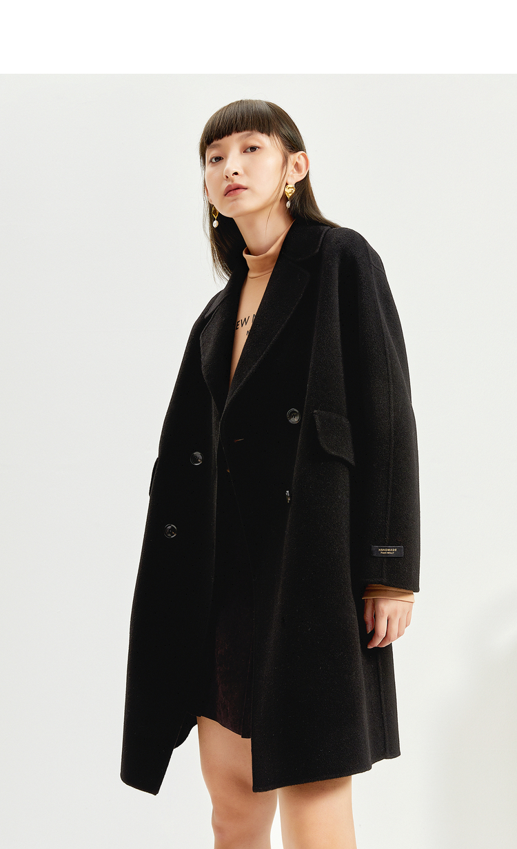 NEELLY纳俪商场同款外套女2021年新款双面呢大衣羊毛双排扣中长款
