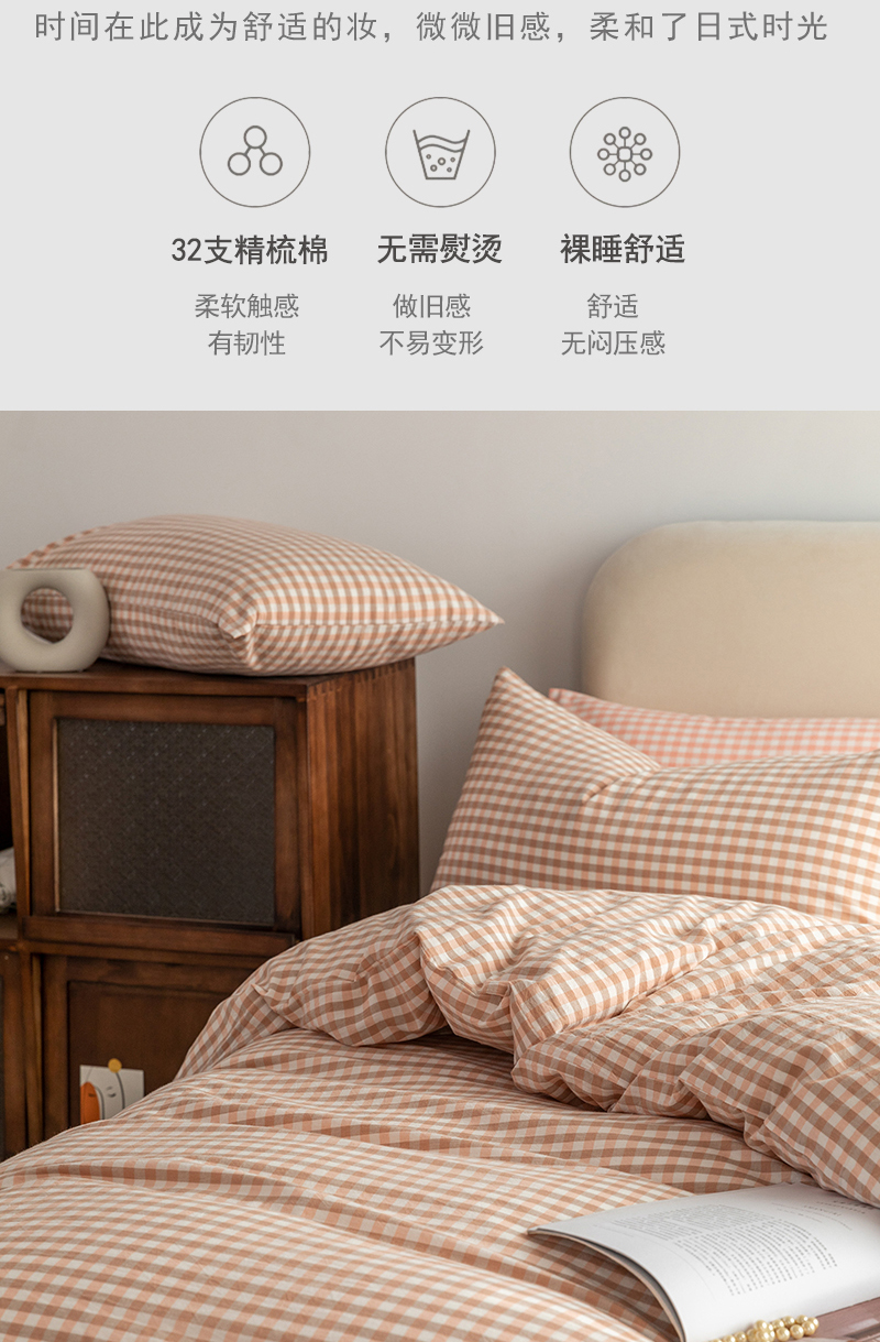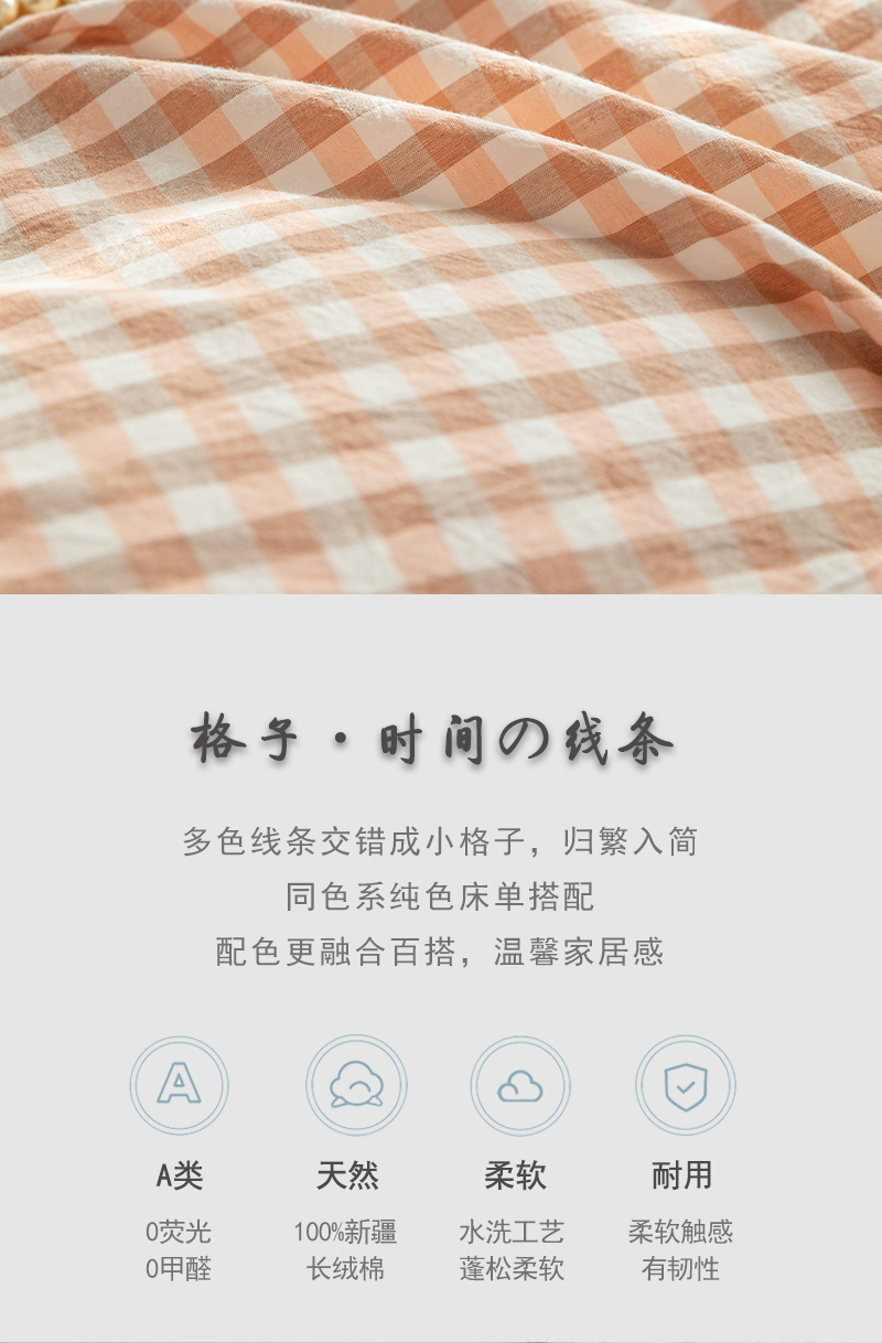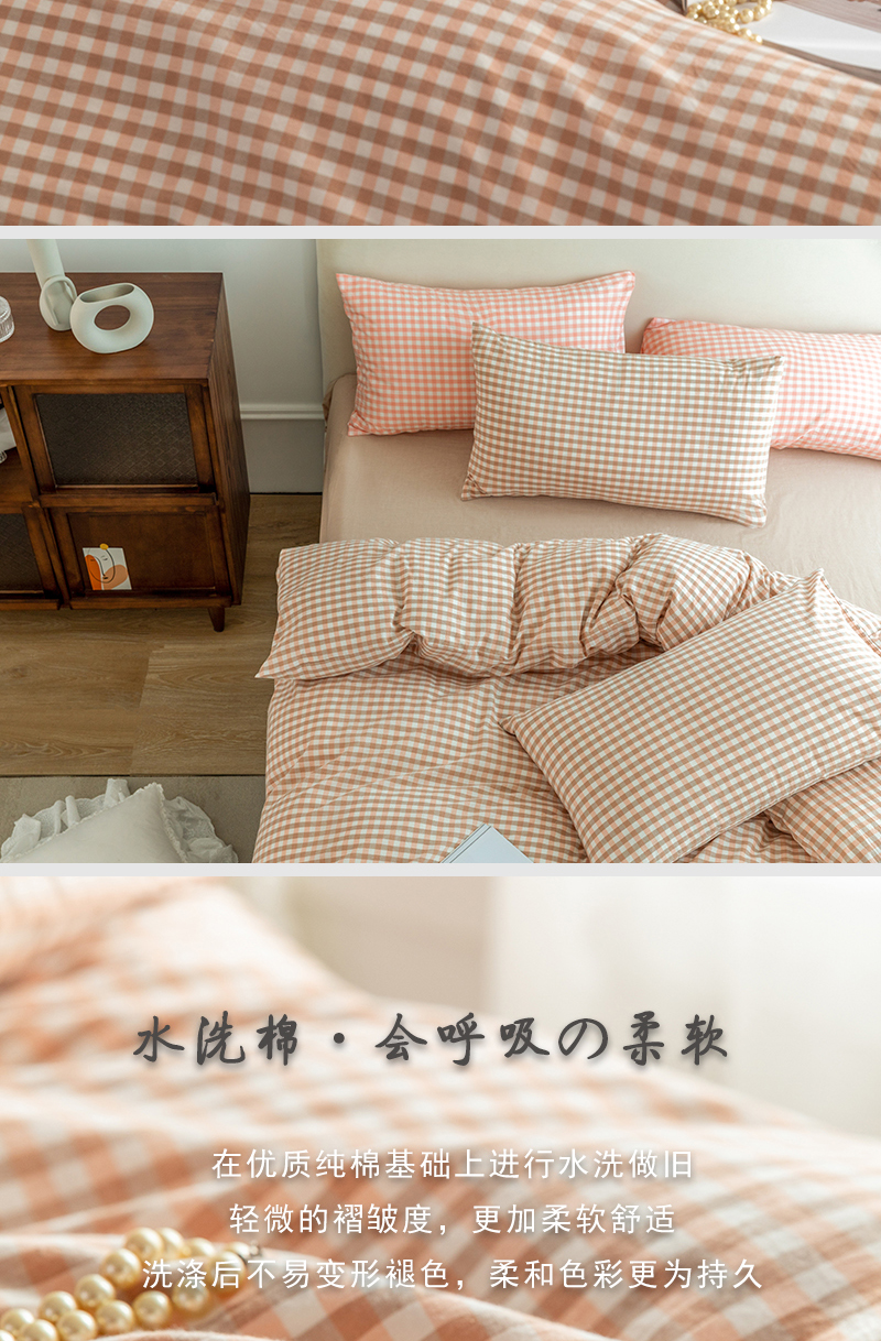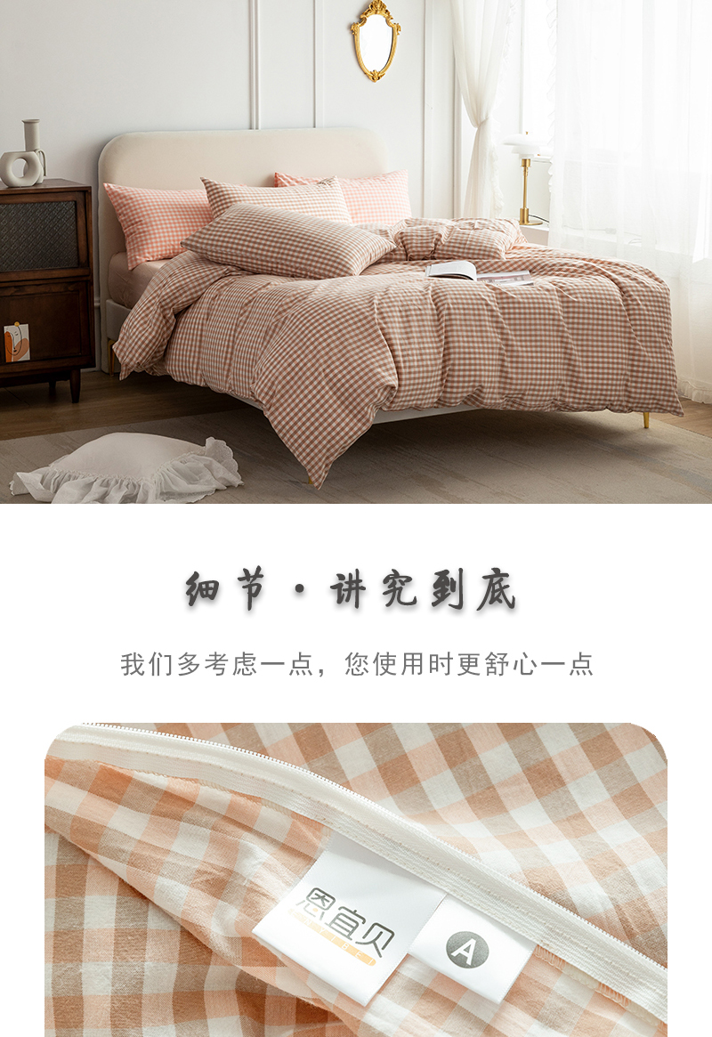 【品名】【恩宜贝】方格系列水洗棉四件套